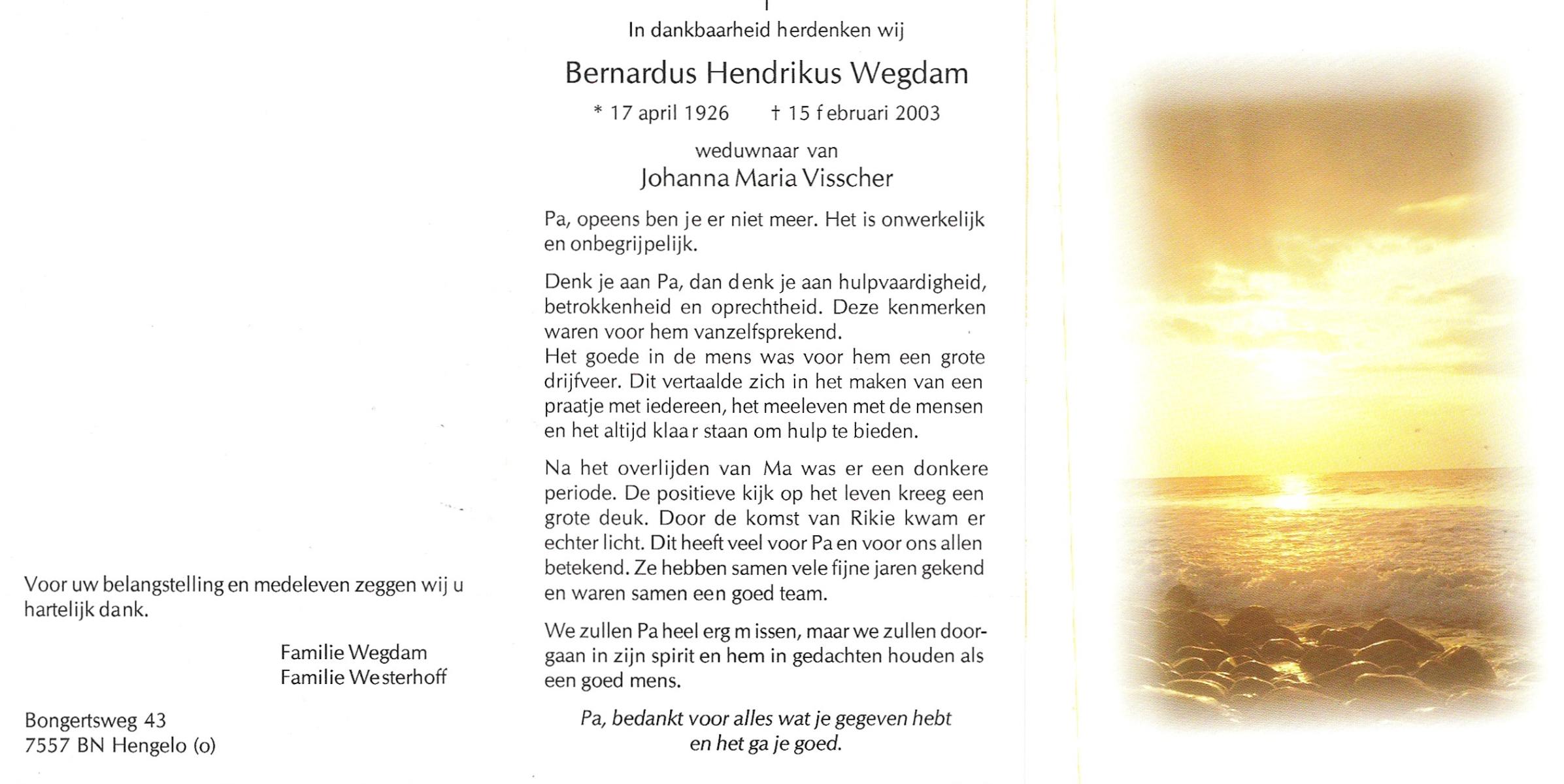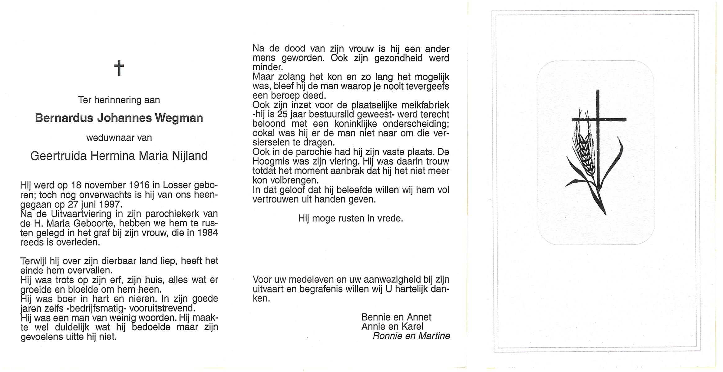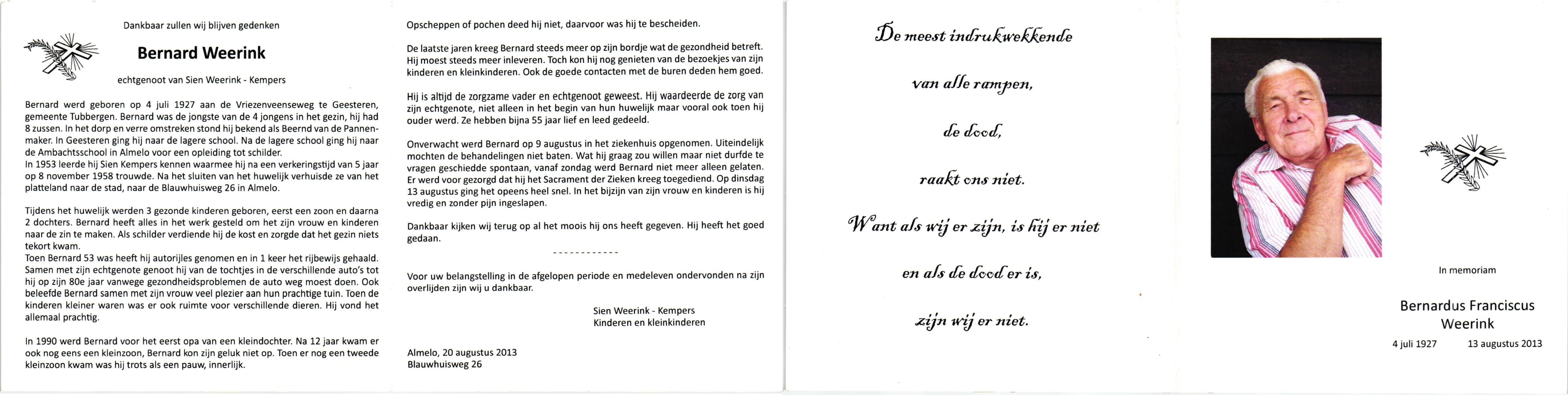 WAANDERS, Bernard, geboren op 11-12-1915 te Delden, Ambt, overleden op 29-12-1998 op 83-jarige leeftijd, begraven op 2-1-1999 te Hengevelde.