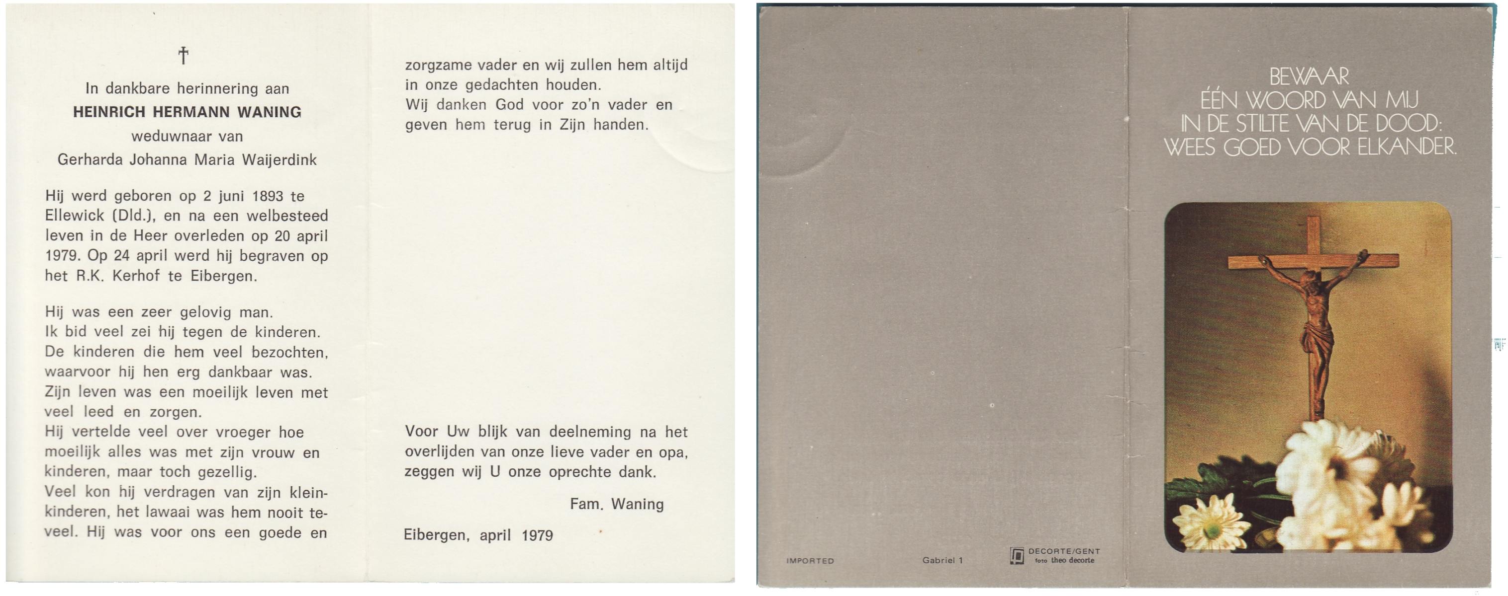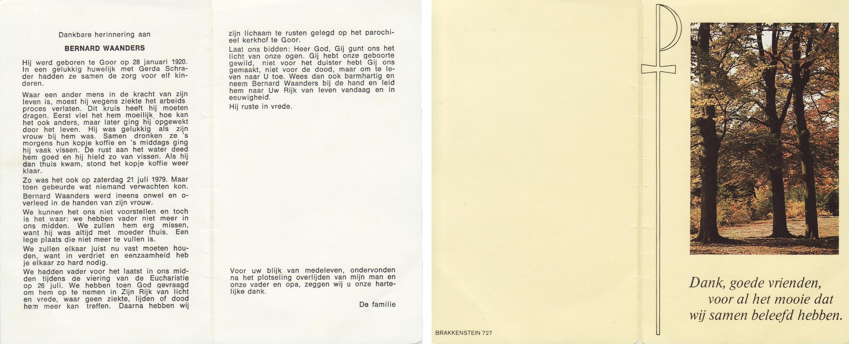WAANDERS, Bernard, geboren op 28-1-1920 te Goor, overleden op 21-7-1979 op 59-jarige leeftijd, begraven op 26-7-1979 te Goor.