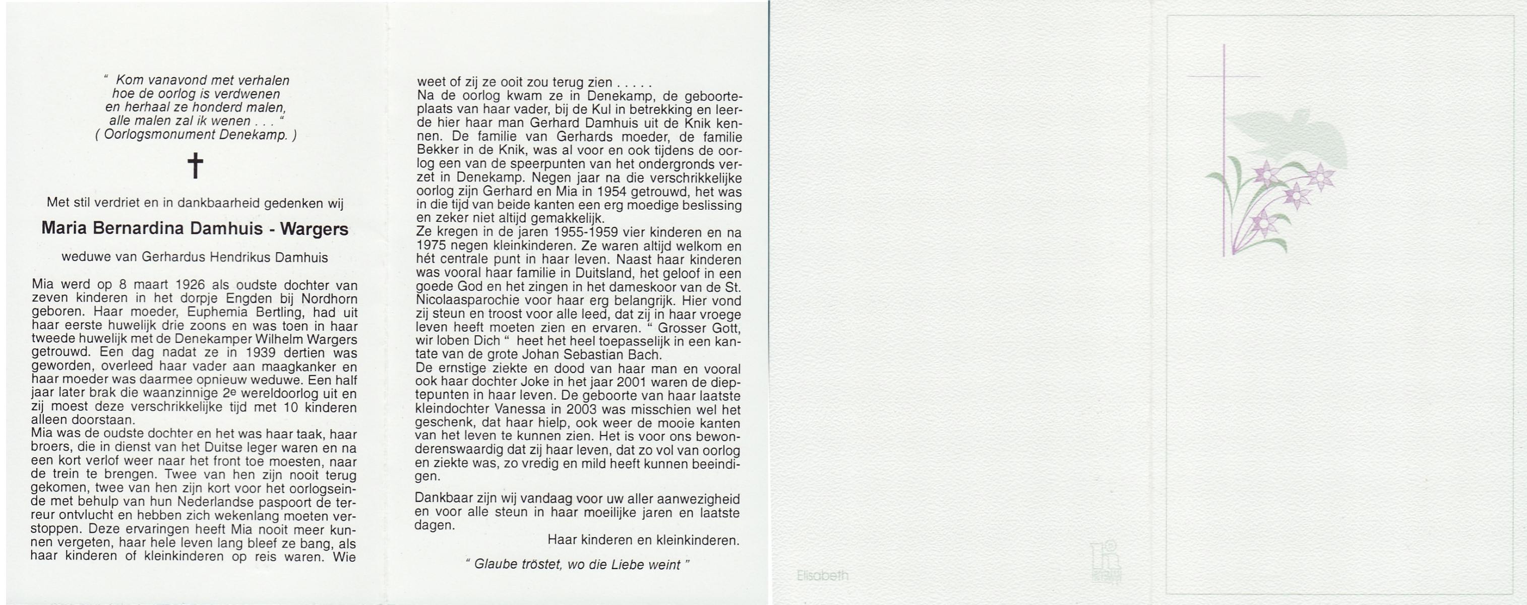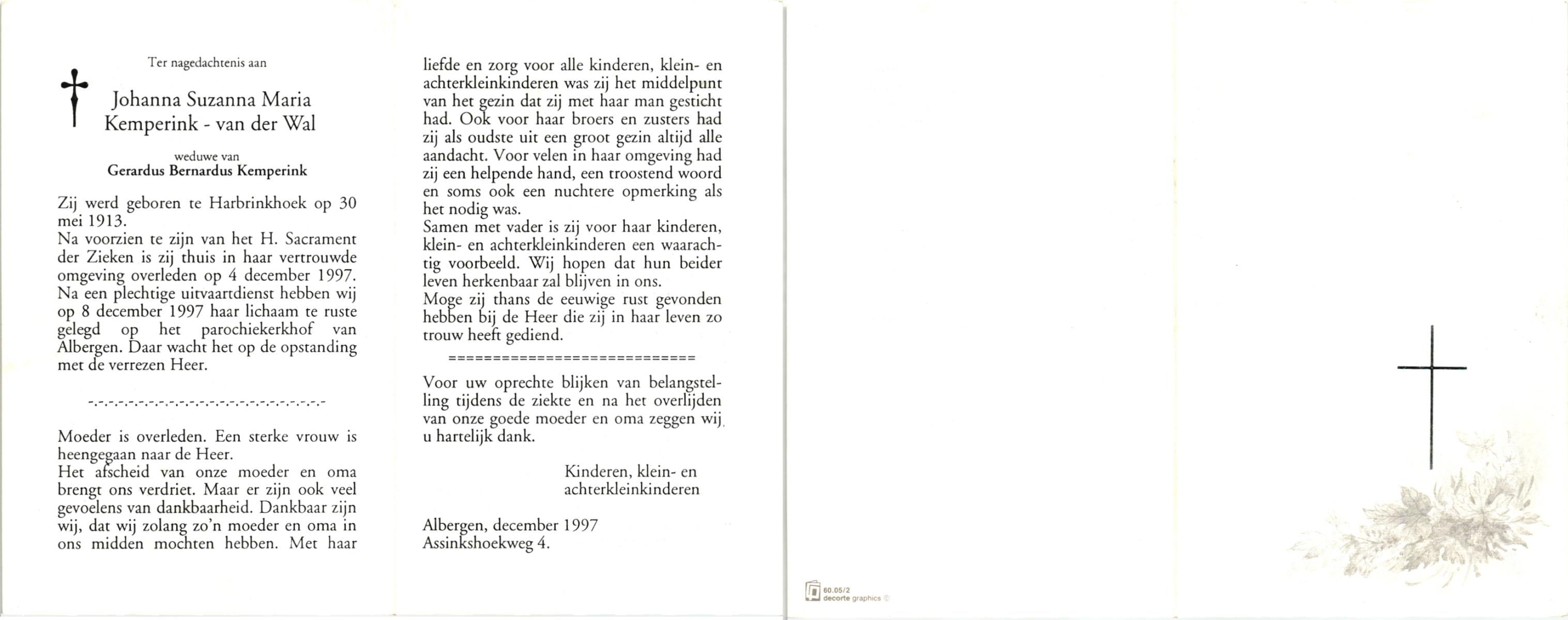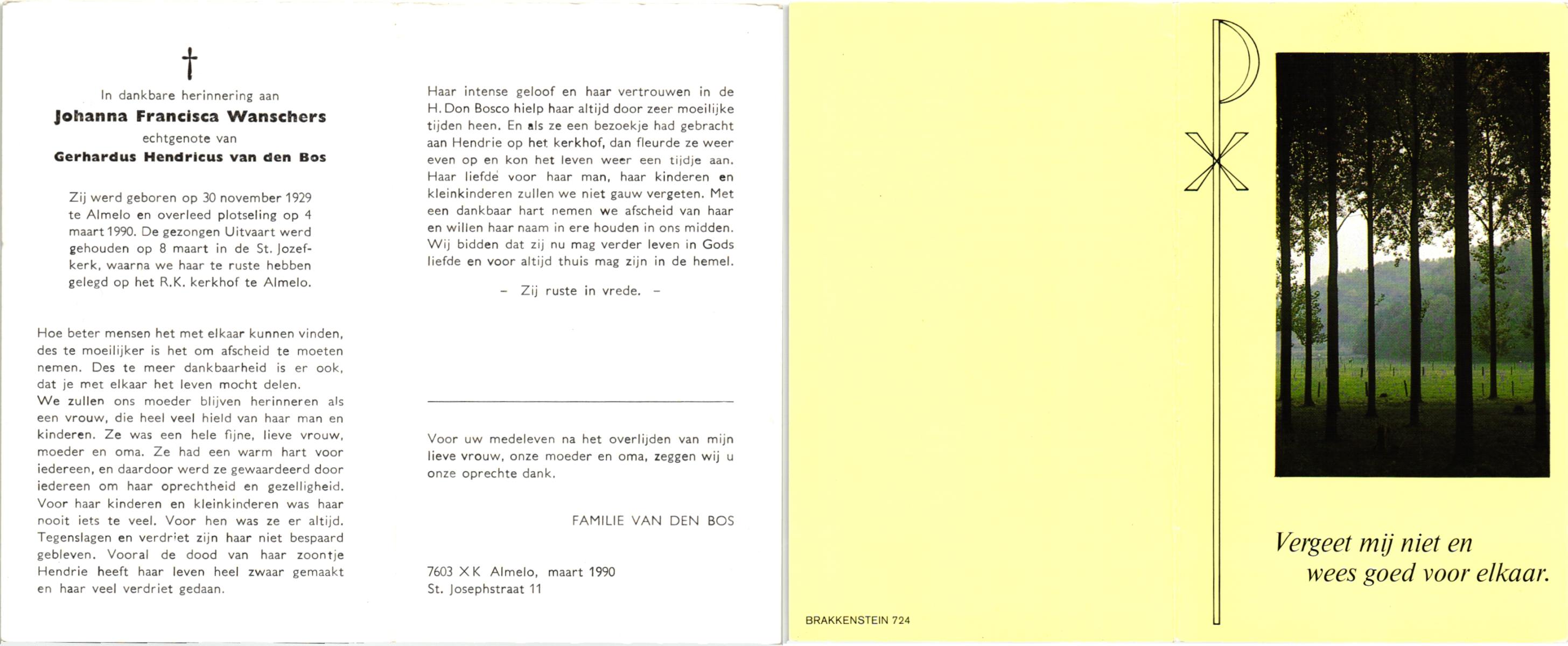 WAANDERS, Bernarda Johanna, geboren op 16-3-1911 te Enschede, overleden op 29-3-1998 op 87-jarige leeftijd, gecremeerd op 2-4-1998 te Usselo.