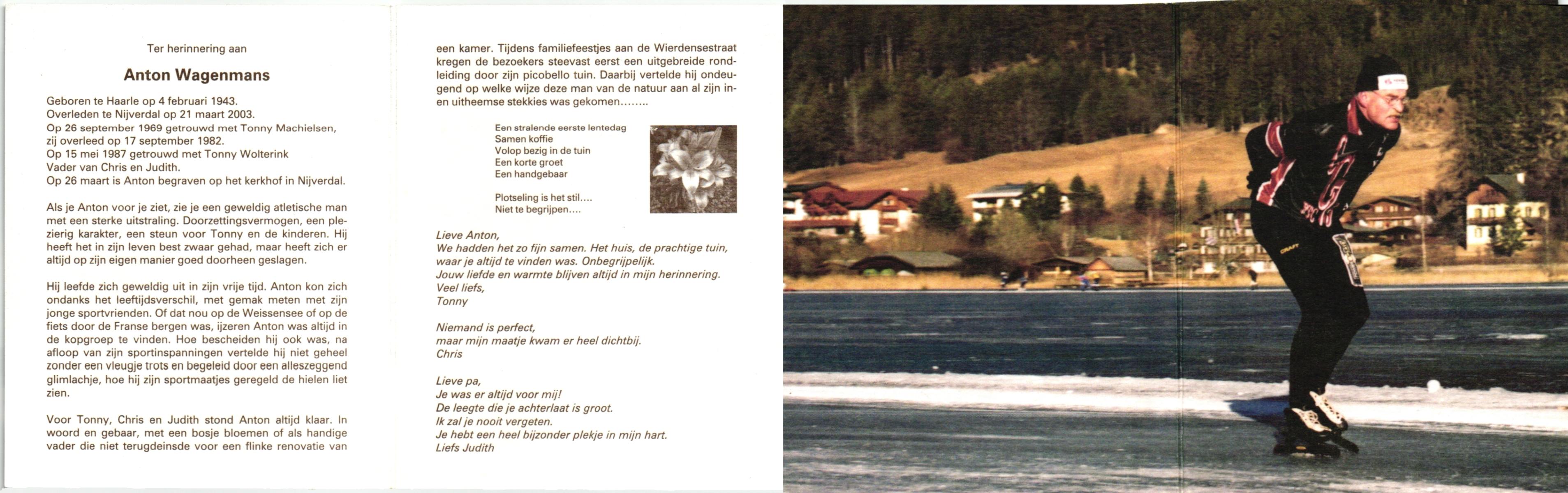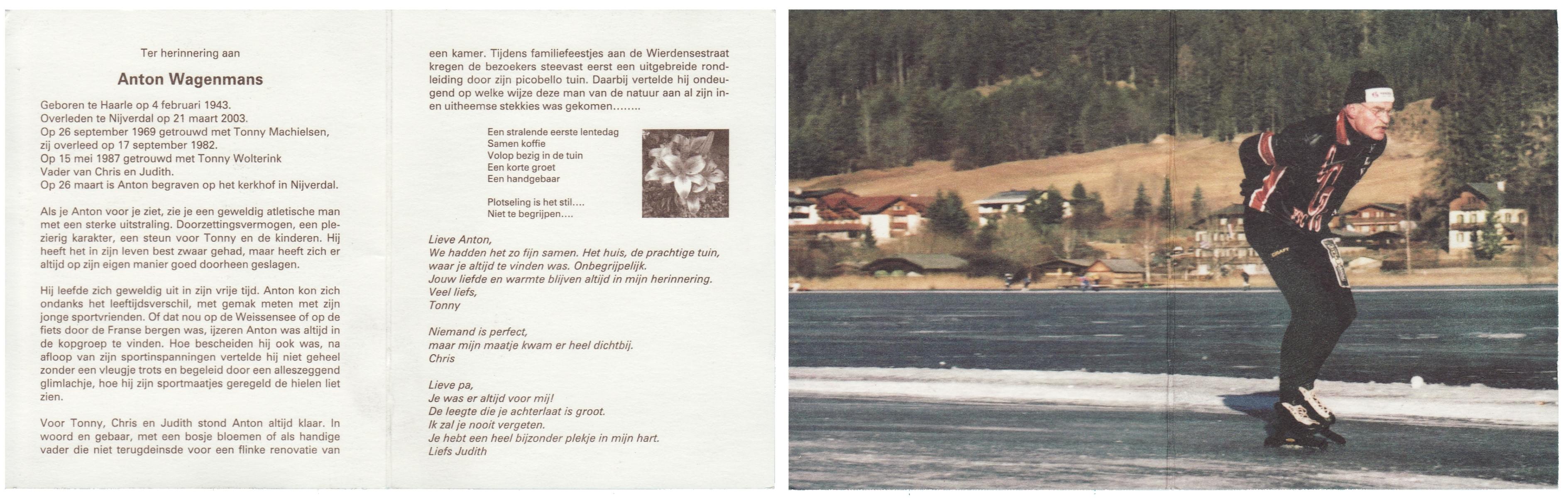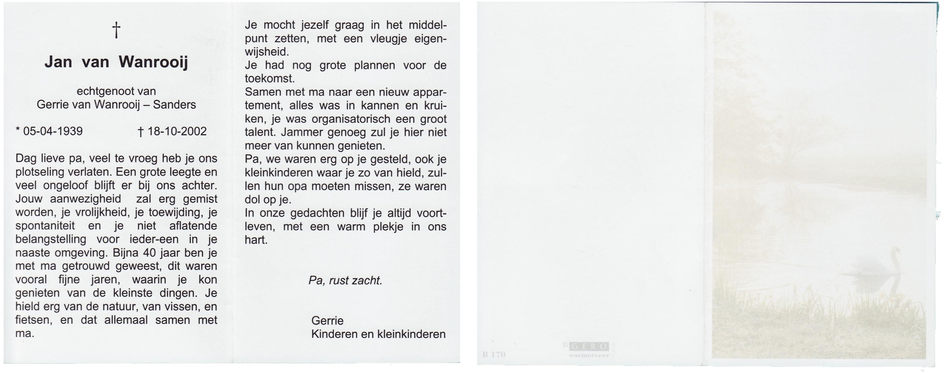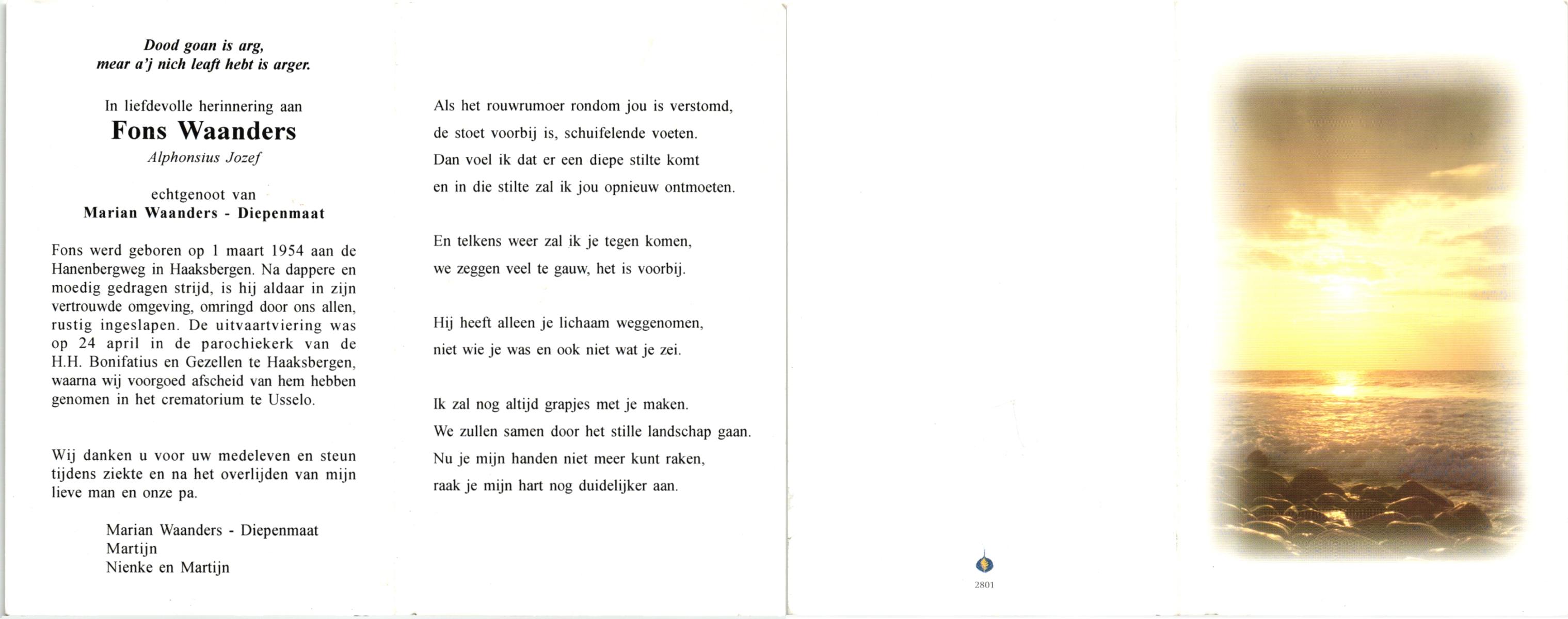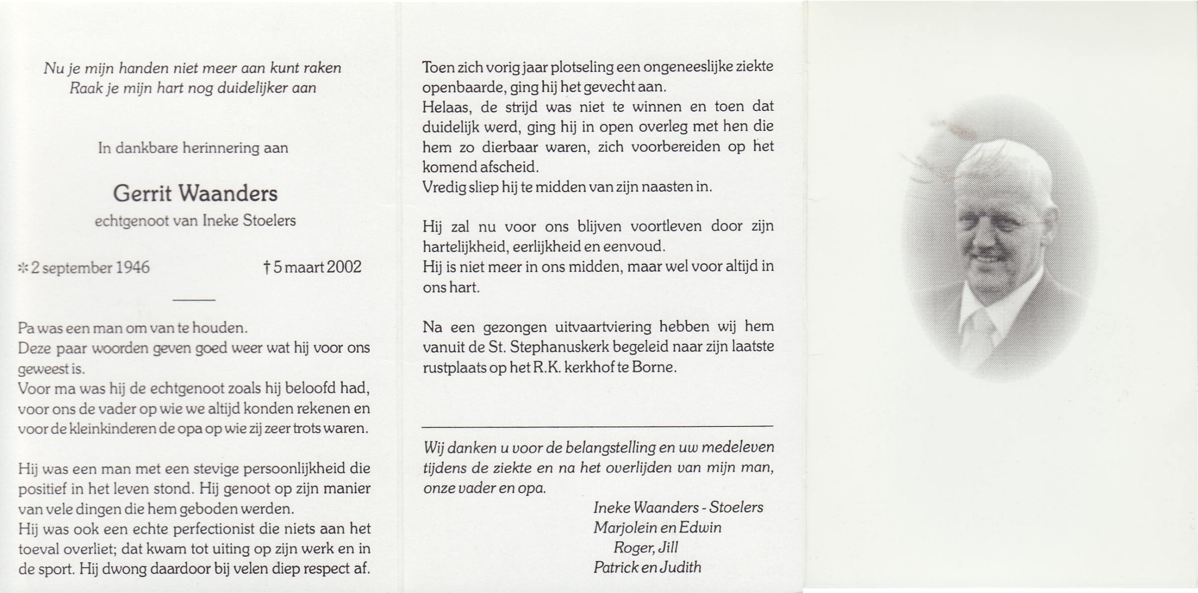 WAANDERS, Gerrit, geboren op 2-9-1946, overleden op 5-3-2002 op 55-jarige leeftijd.