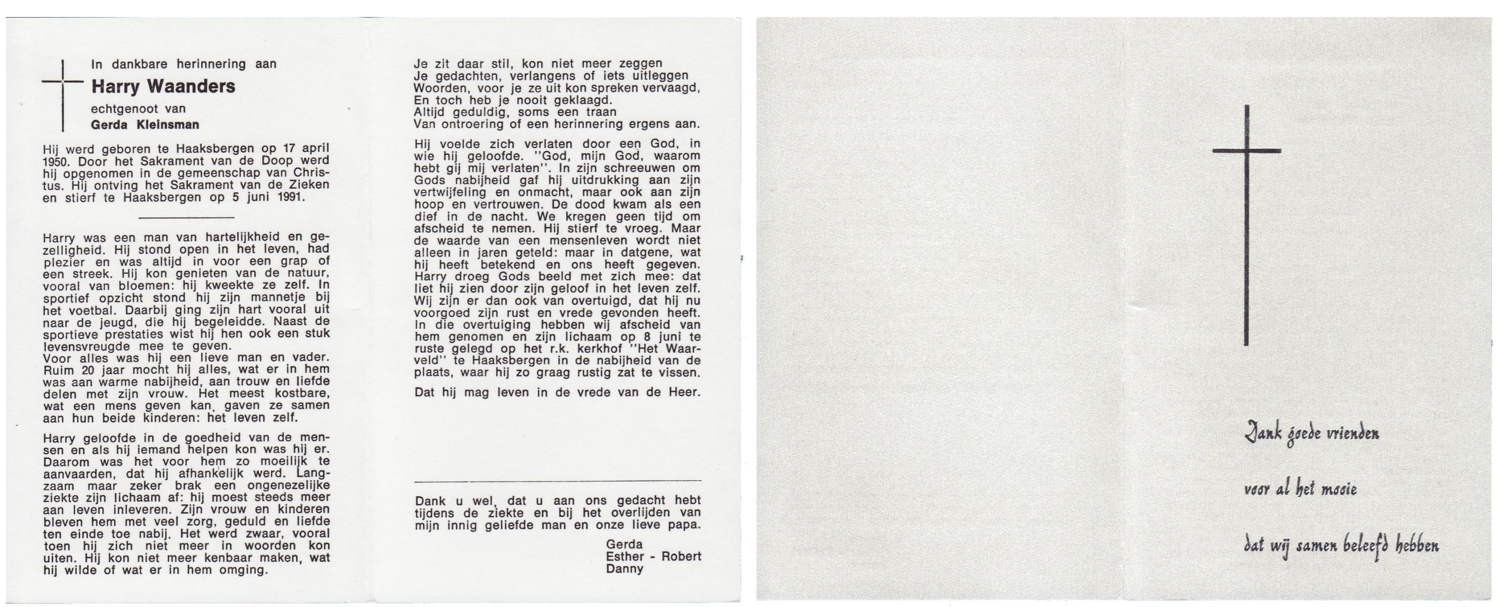 WAANDERS, Harry, geboren op 17-4-1950 te Haaksbergen, overleden op 5-6-1991 te Haaksbergen op 41-jarige leeftijd, begraven op 8-6-1991 te Haaksbergen.
