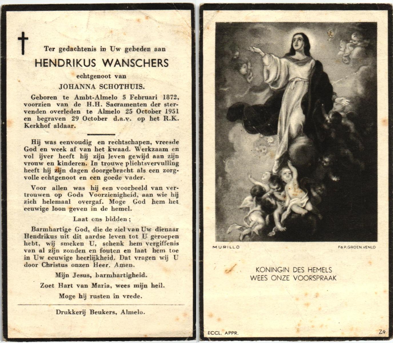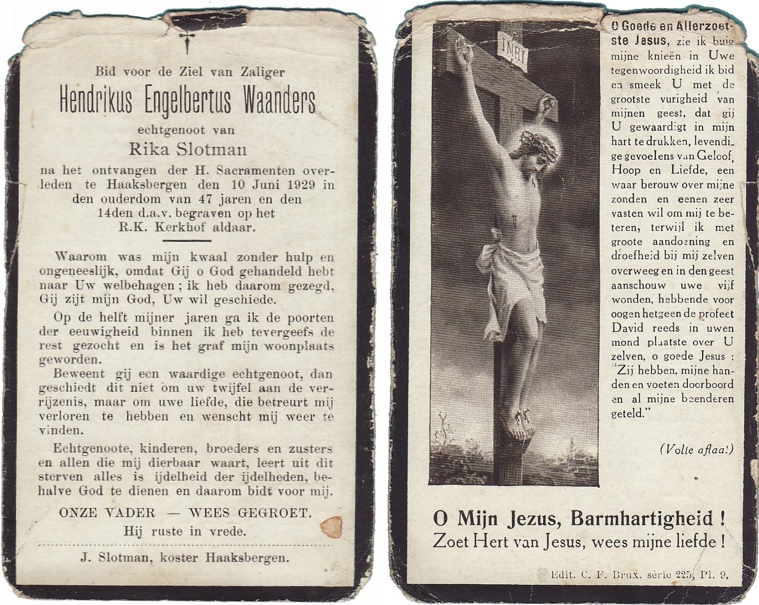 WAANDERS, Hendrikus Engelbertus, overleden op 10-6-1929 te Haaksbergen op 47-jarige leeftijd, begraven op 14-6-1929 te Haaksbergen.