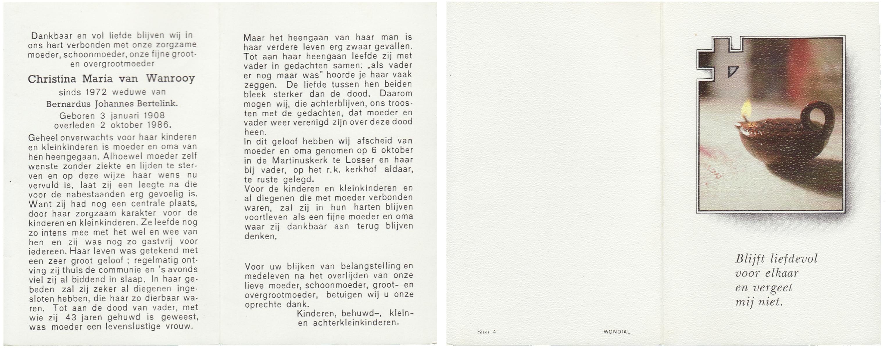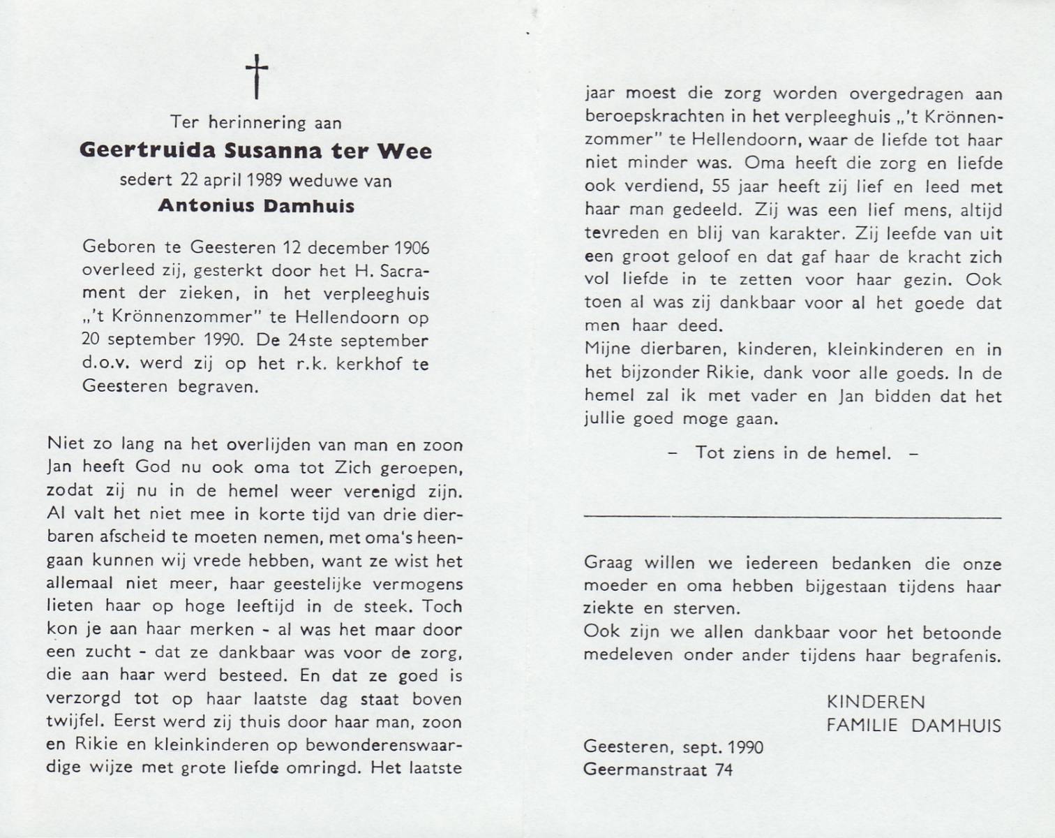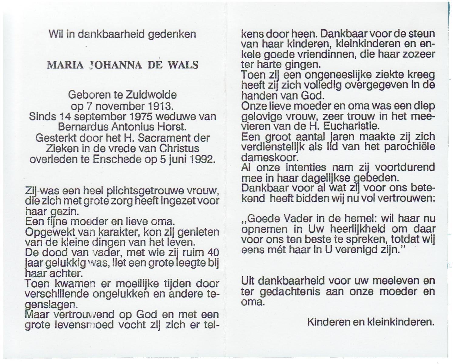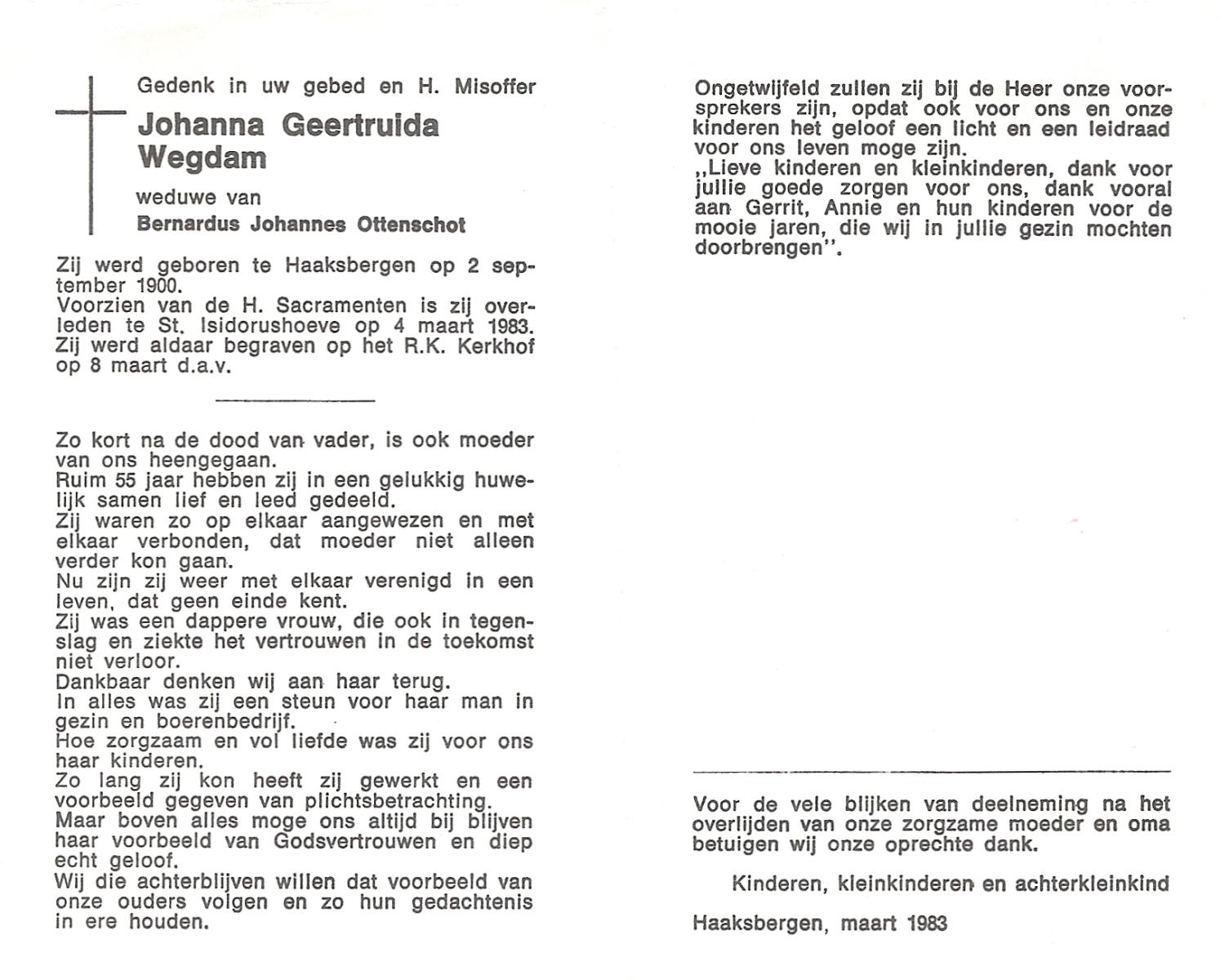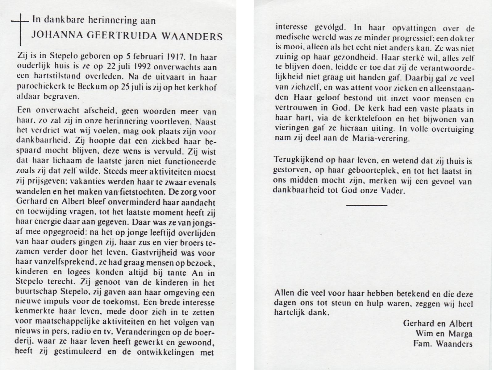 WAANDERS, Johanna Geertruida, geboren op 5-2-1917 te Stepelo, overleden op 22-7-1992 op 75-jarige leeftijd, begraven op 25-7-1992 te Beckum.