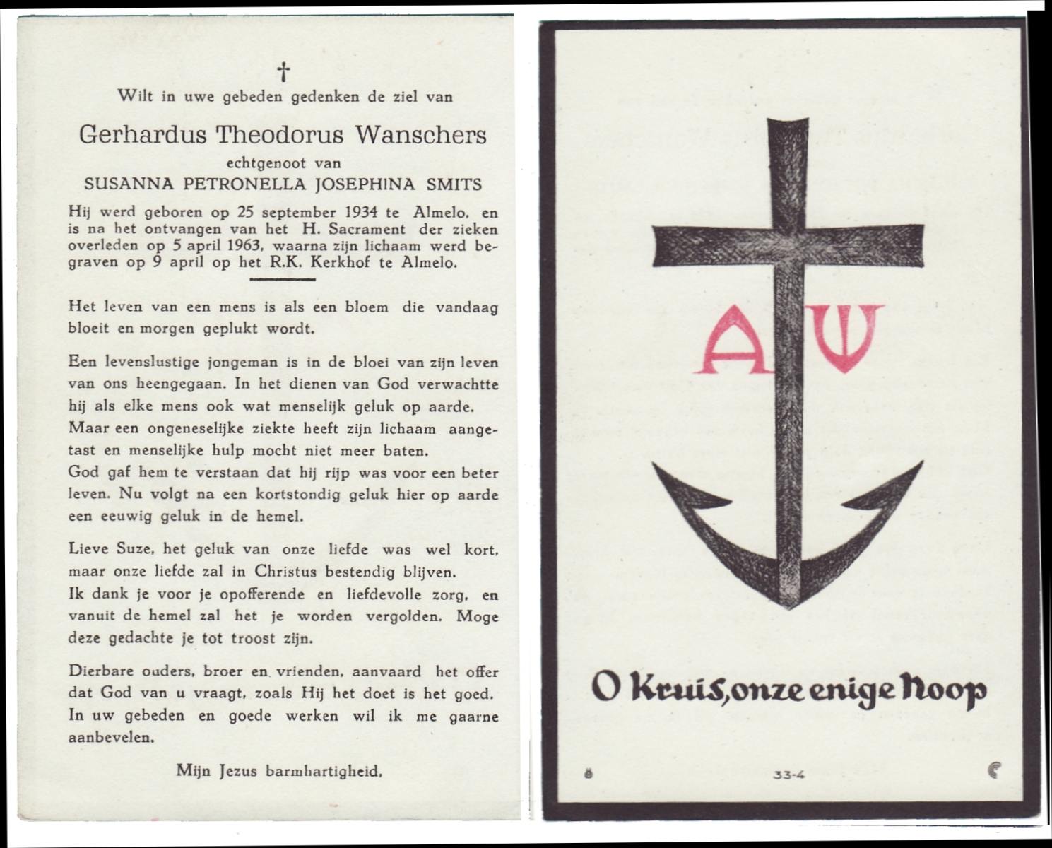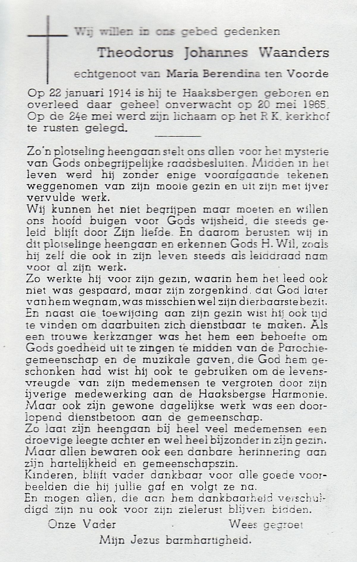 WAANDERS, Theodorus Johannes, geboren op 22-1-1914 te Haaksbergen, overleden op 20-5-1965 te Haaksbergen op 51-jarige leeftijd, begraven op 24-5-1965 te Haaksbergen.
