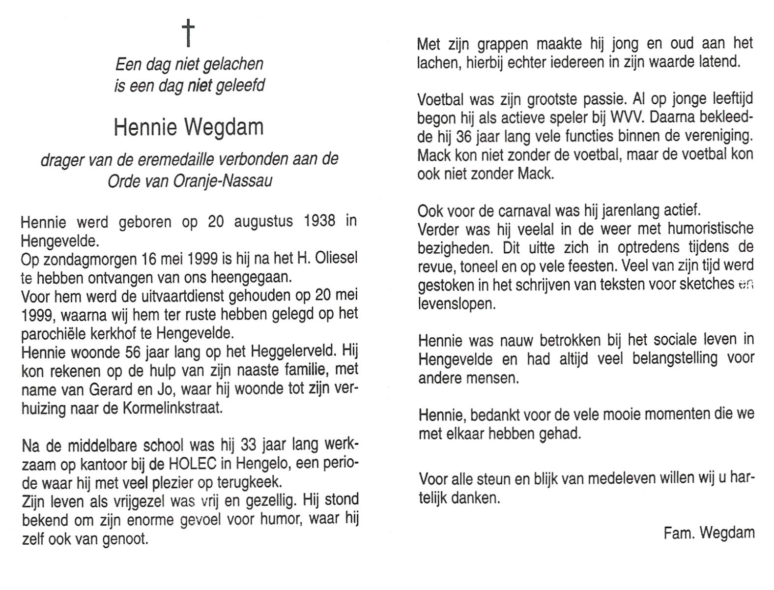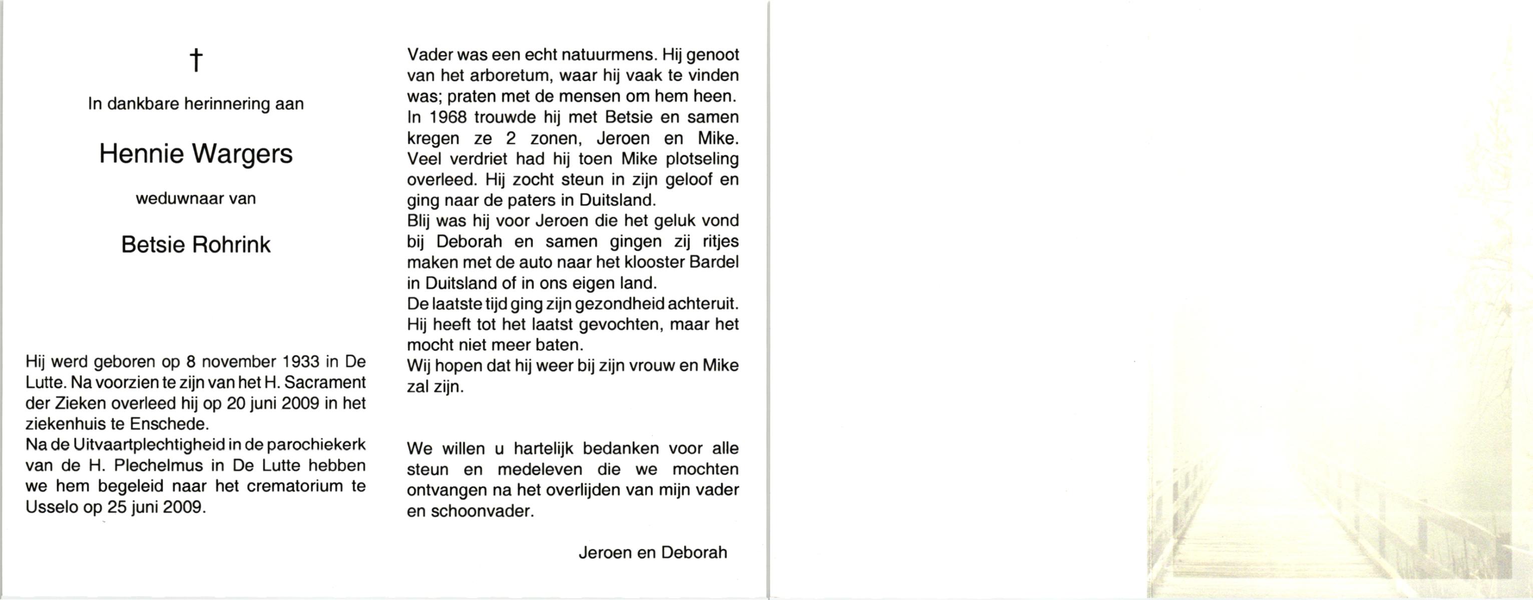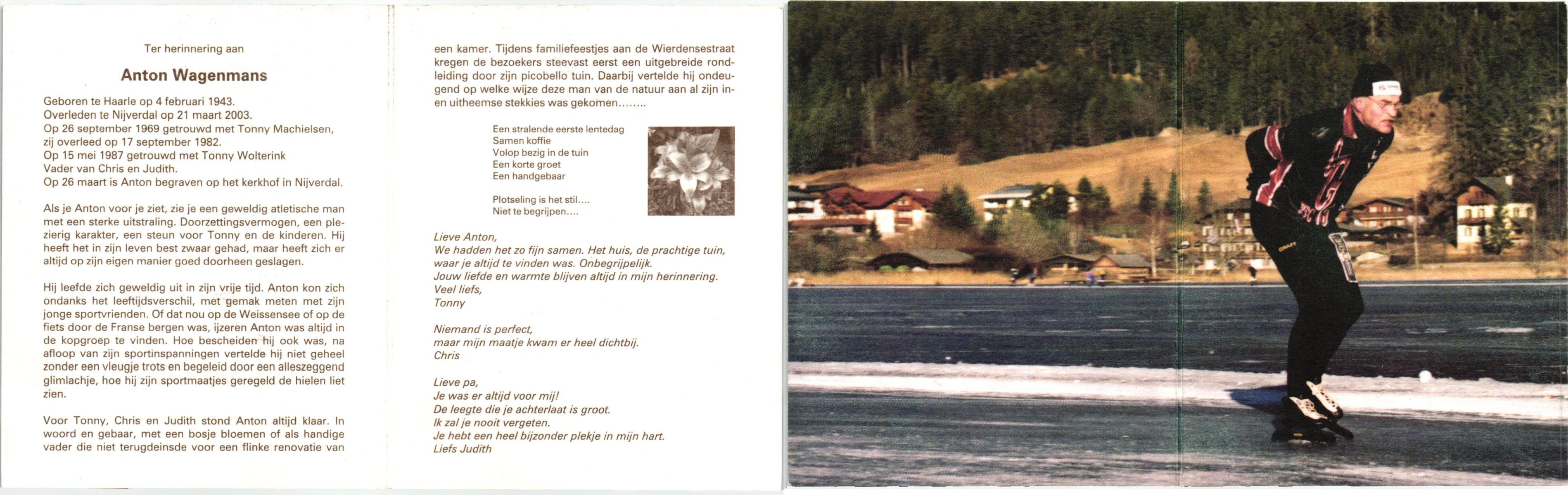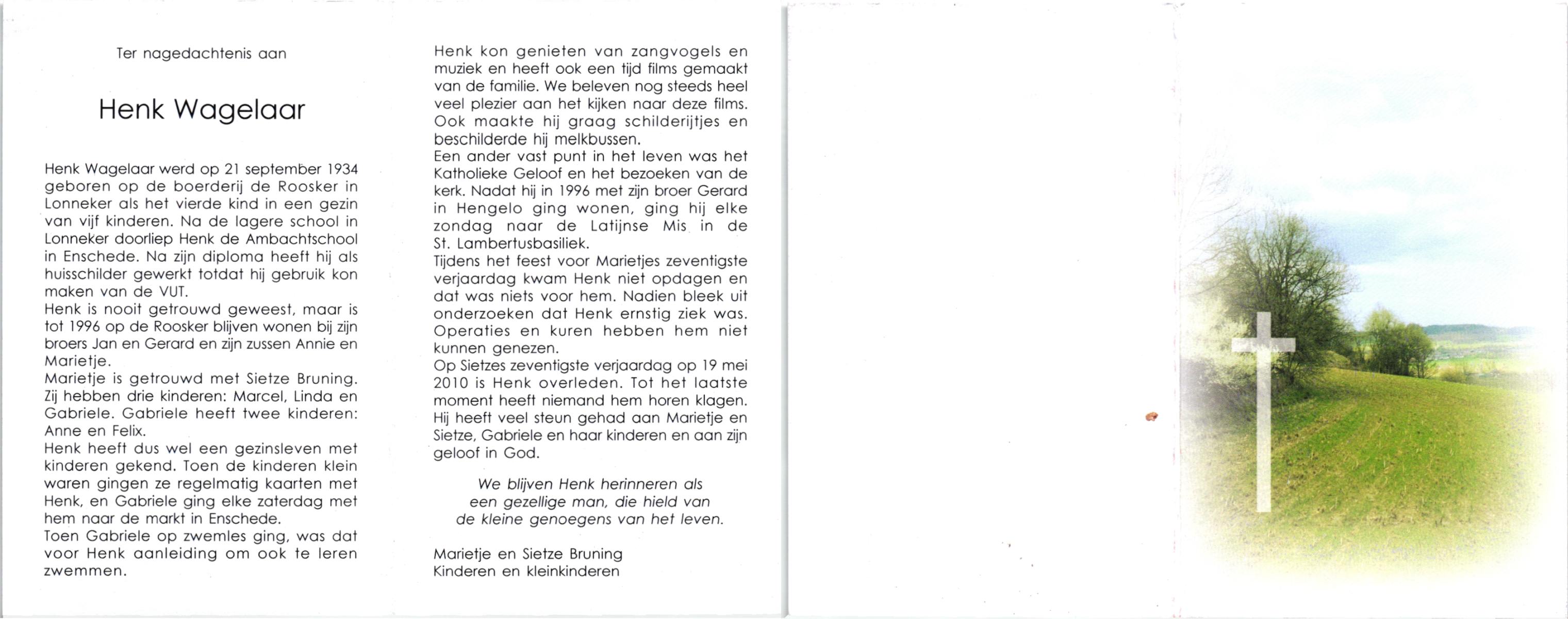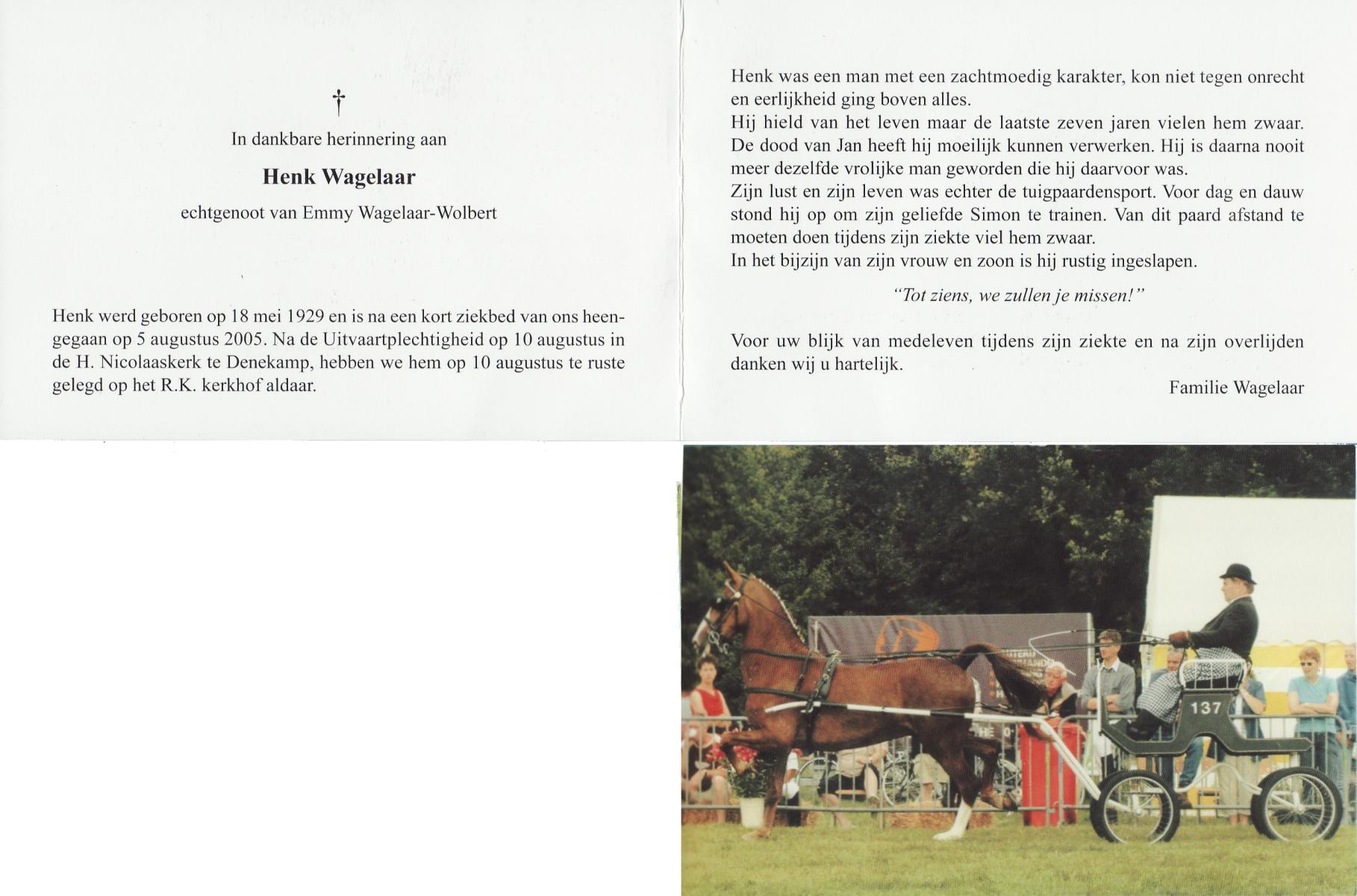 WAGELAAR, Henk, geboren op 18-5-1929, overleden op 5-8-2005 op 76-jarige leeftijd, begraven op 10-8-2005 te Denekamp.