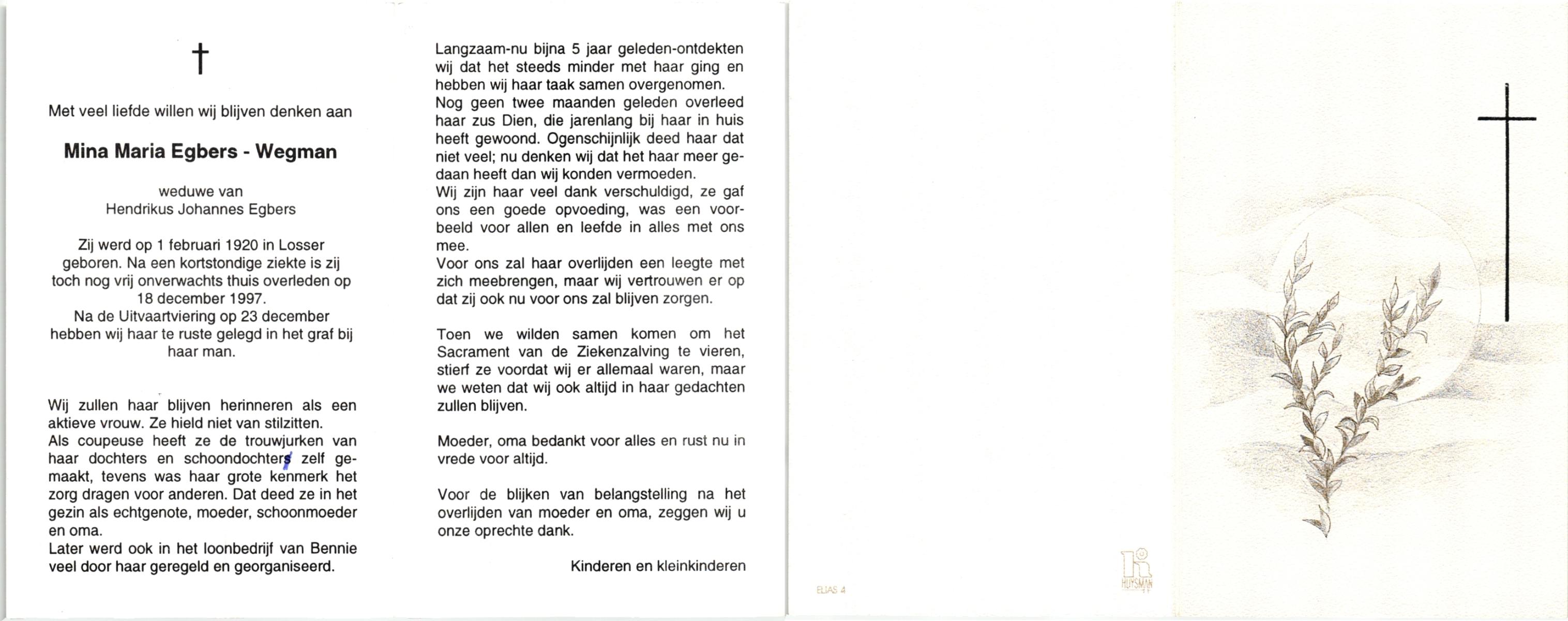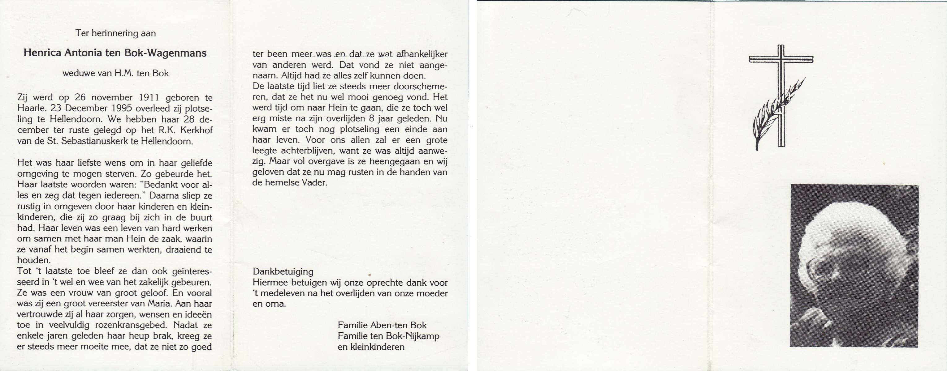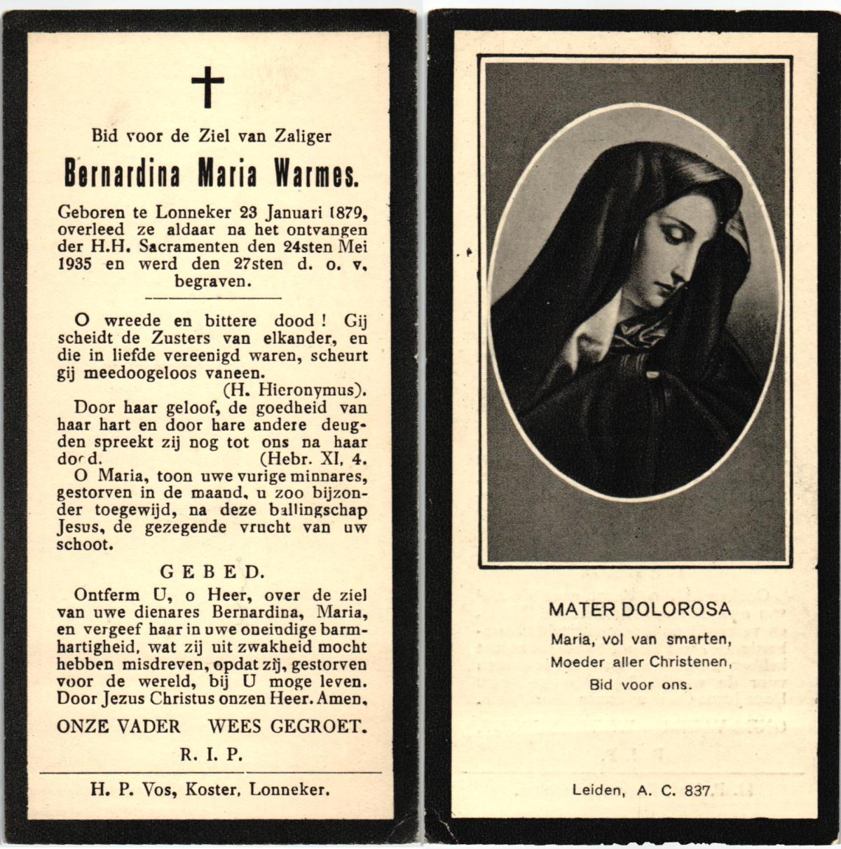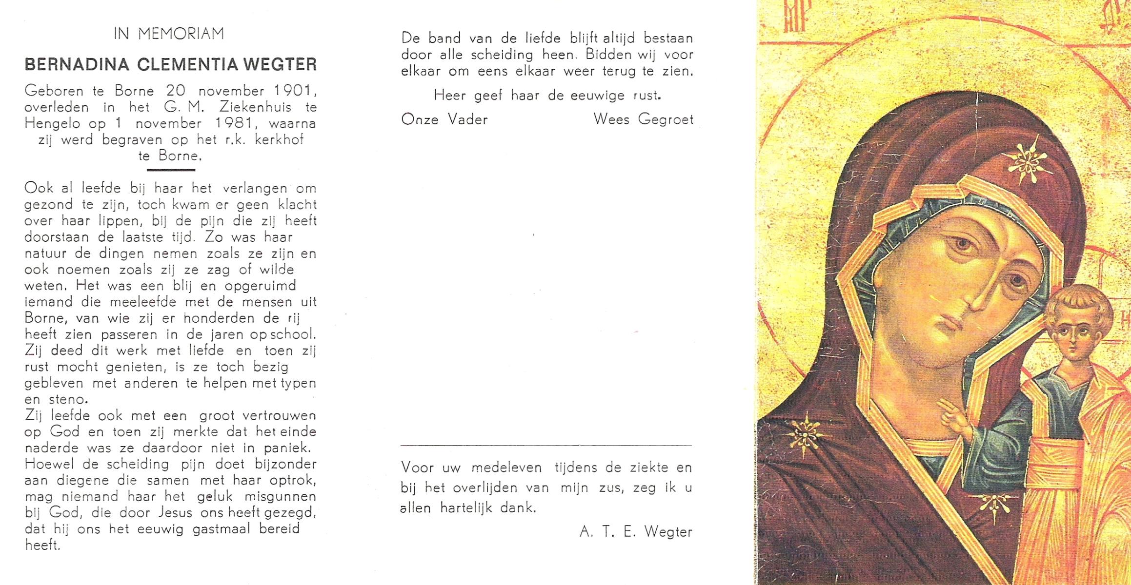 WELMAN, Berendina Aleida, geboren op 26-09-1891 te Lonneker, overleden op 23-2-1966 te Losser op 74-jarige leeftijd, begraven op 26-2-1966 te Lonneker.