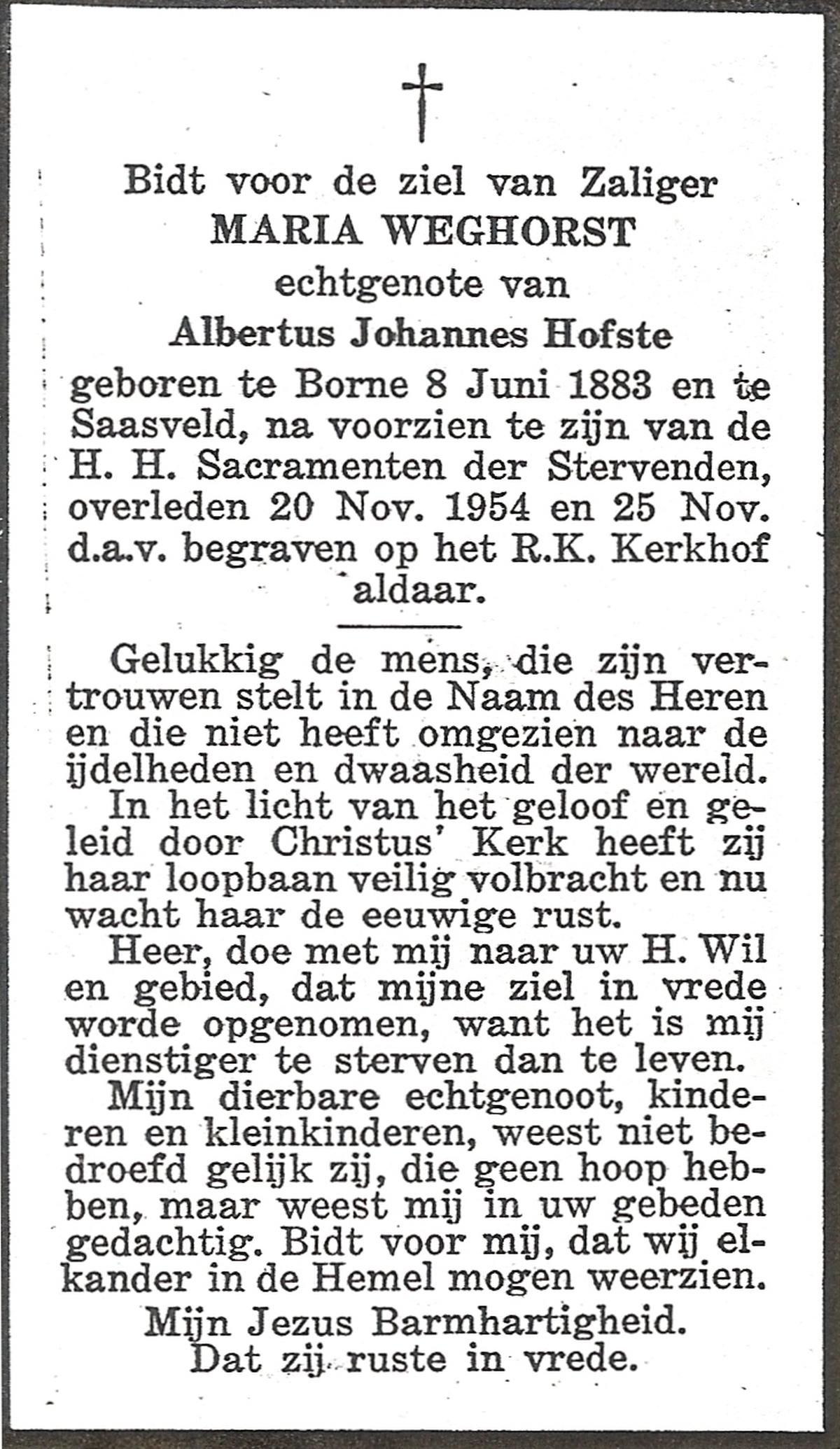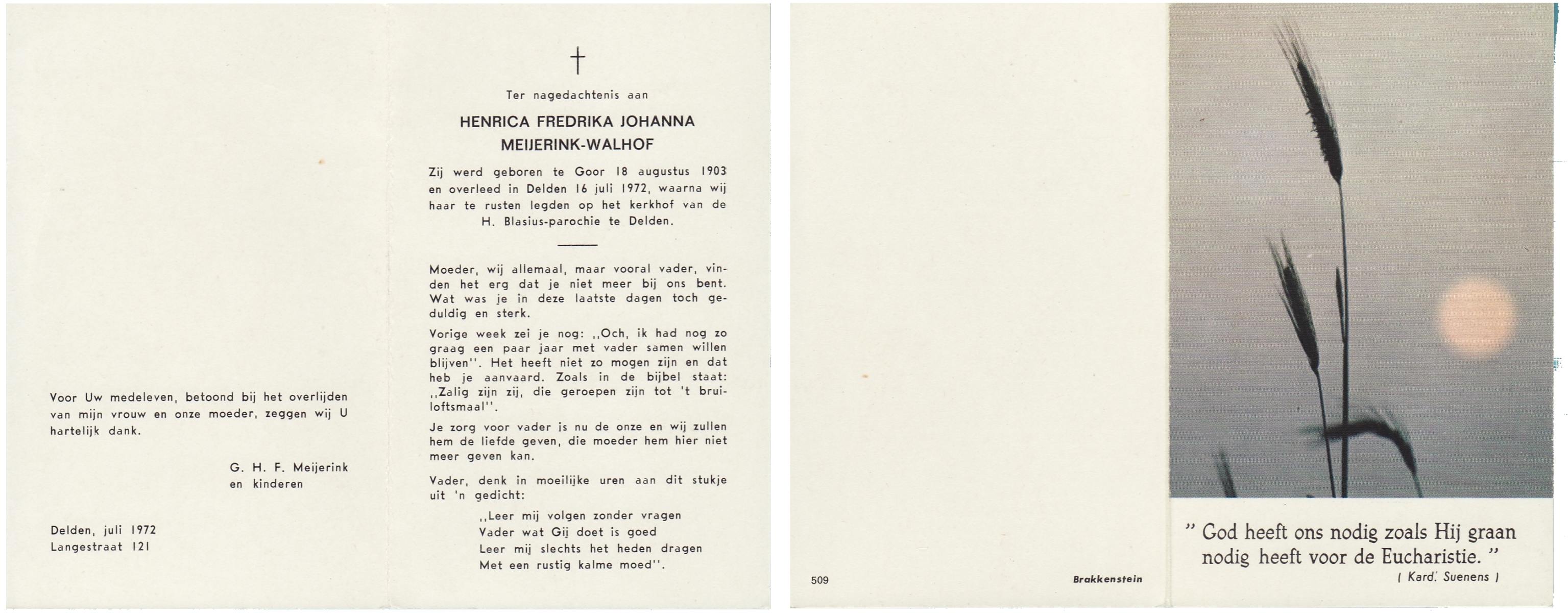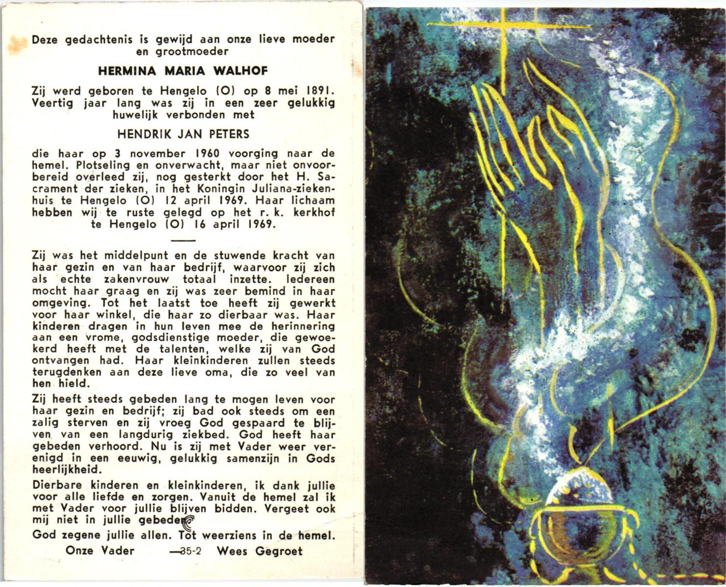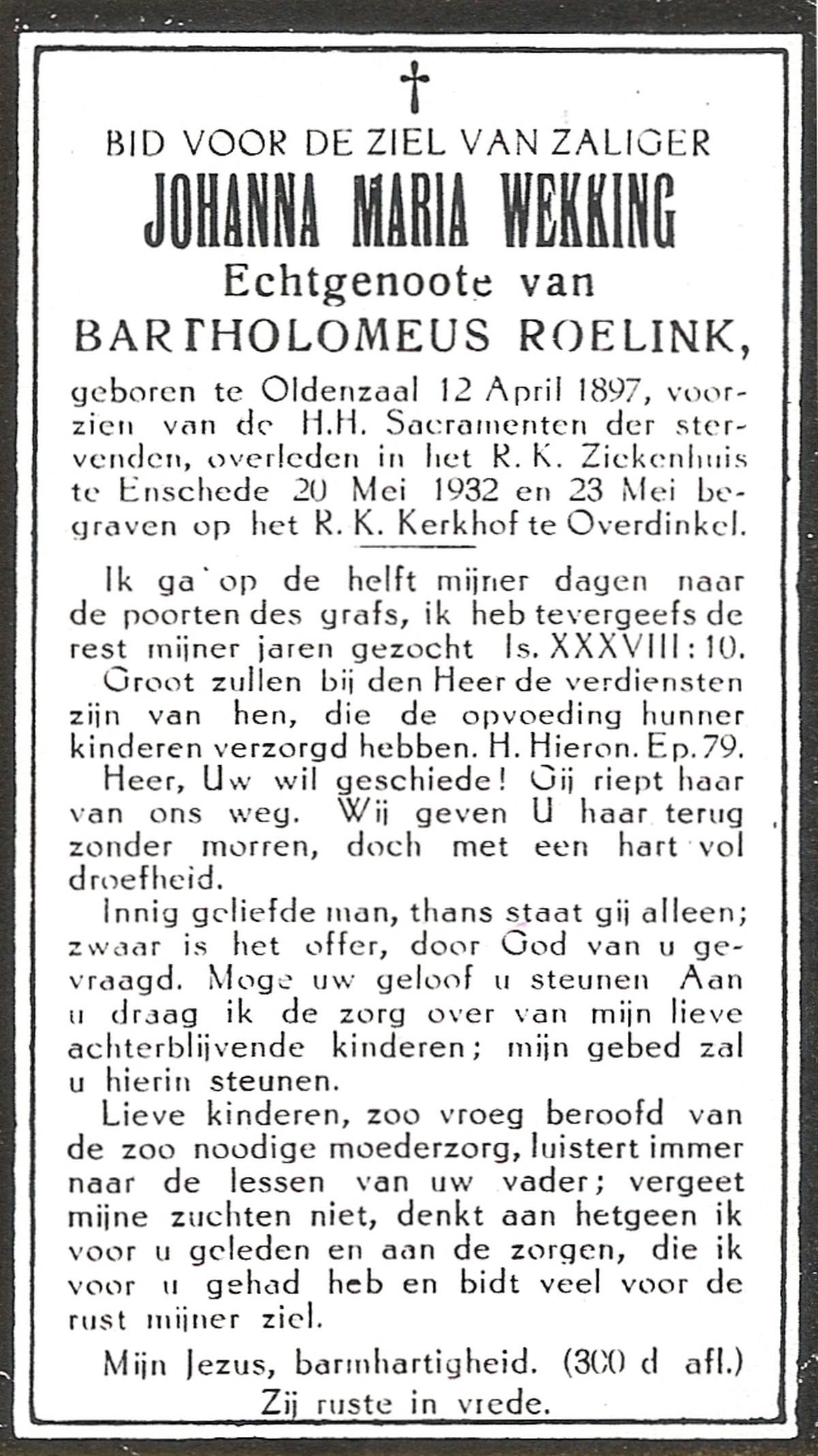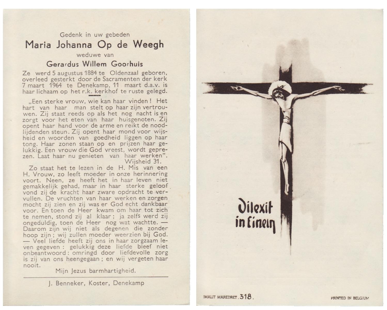 WELHUIS, Johanna Maria, geboren op 01-05-1885 te De Lutte, overleden op 2-3-1961 te De Lutte op 75-jarige leeftijd, begraven op 7-3-1961 te De Lutte.