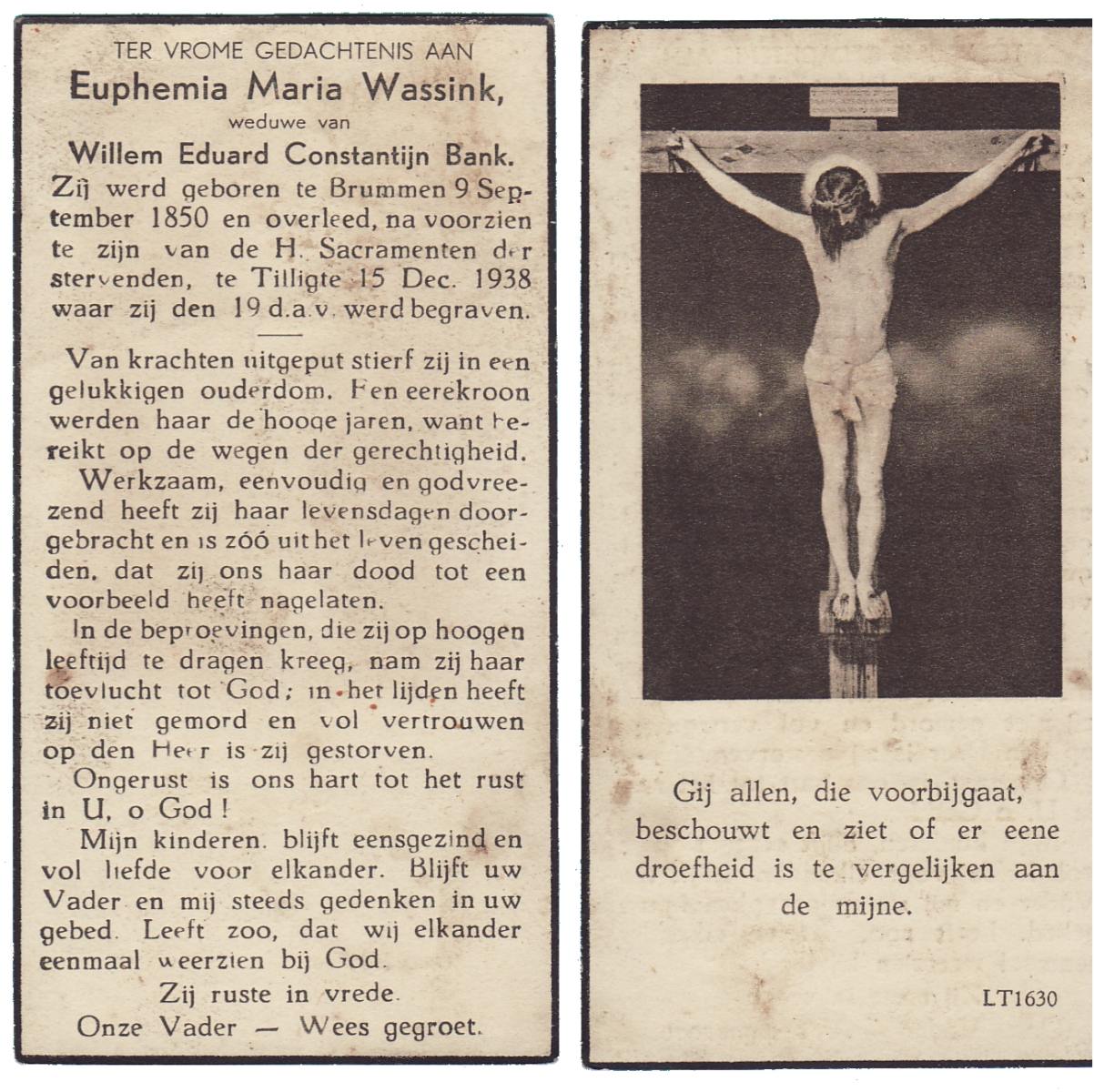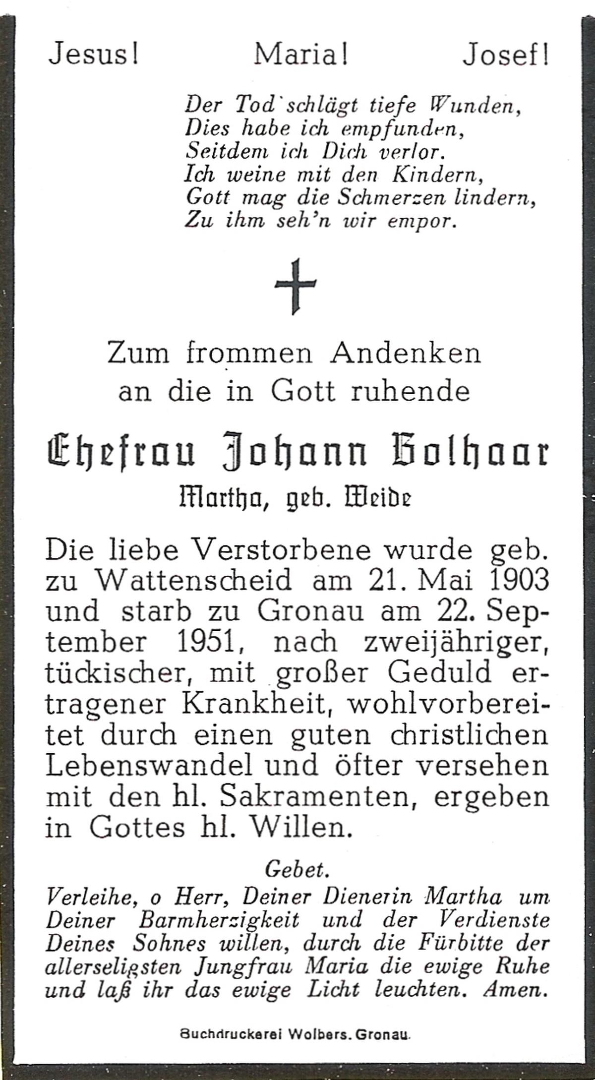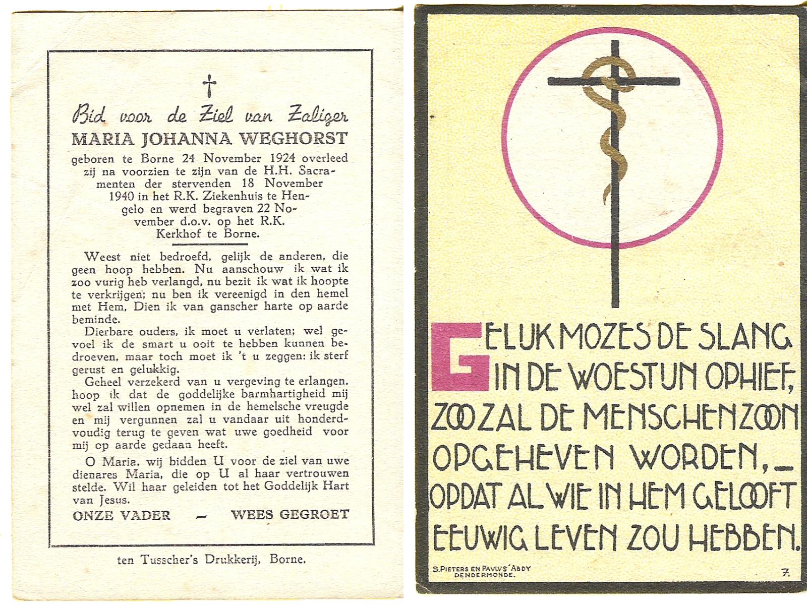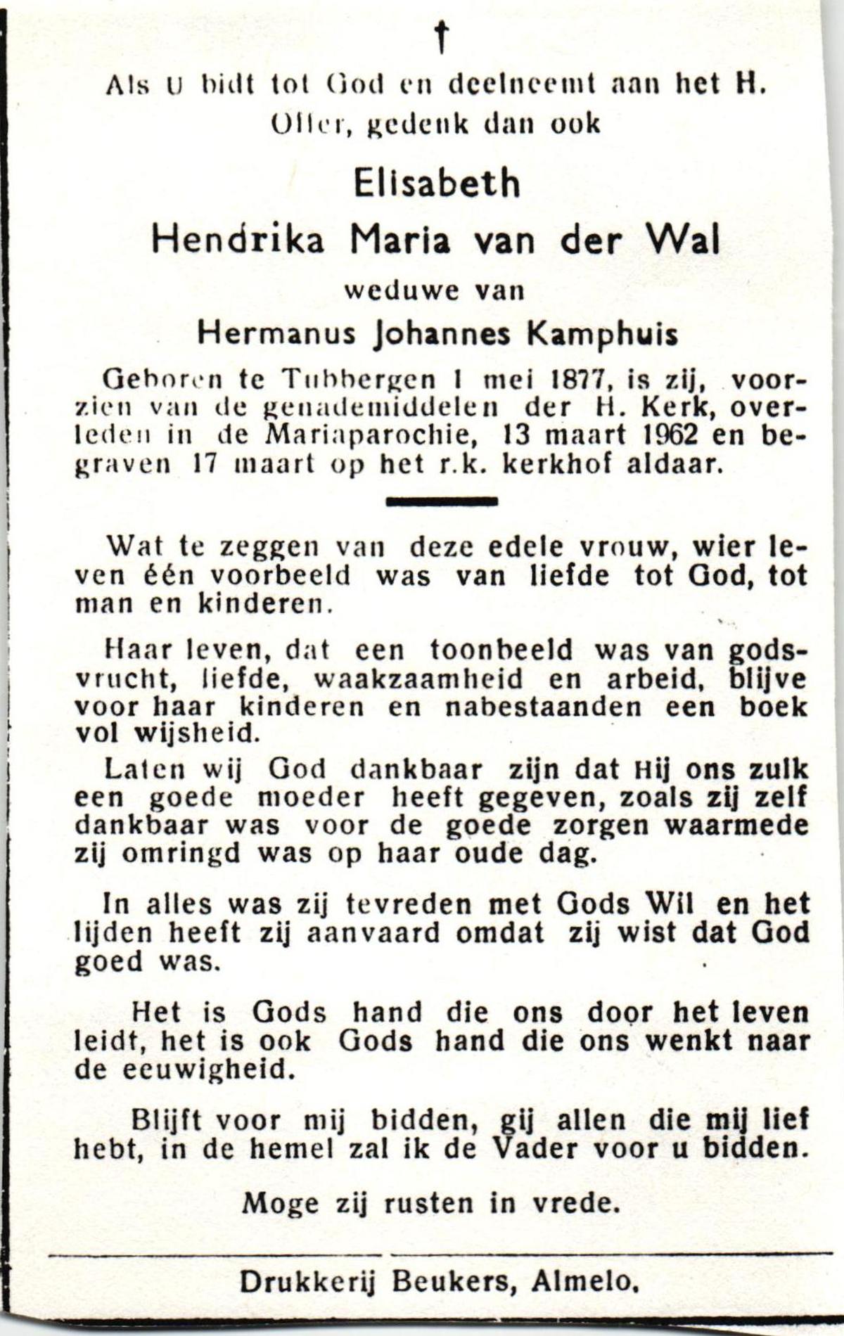 WELHUIS, Johanna Maria, geboren op 01-05-1885 te De Lutte, overleden op 2-3-1961 te De Lutte op 75-jarige leeftijd, begraven op 7-3-1961 te De Lutte.
