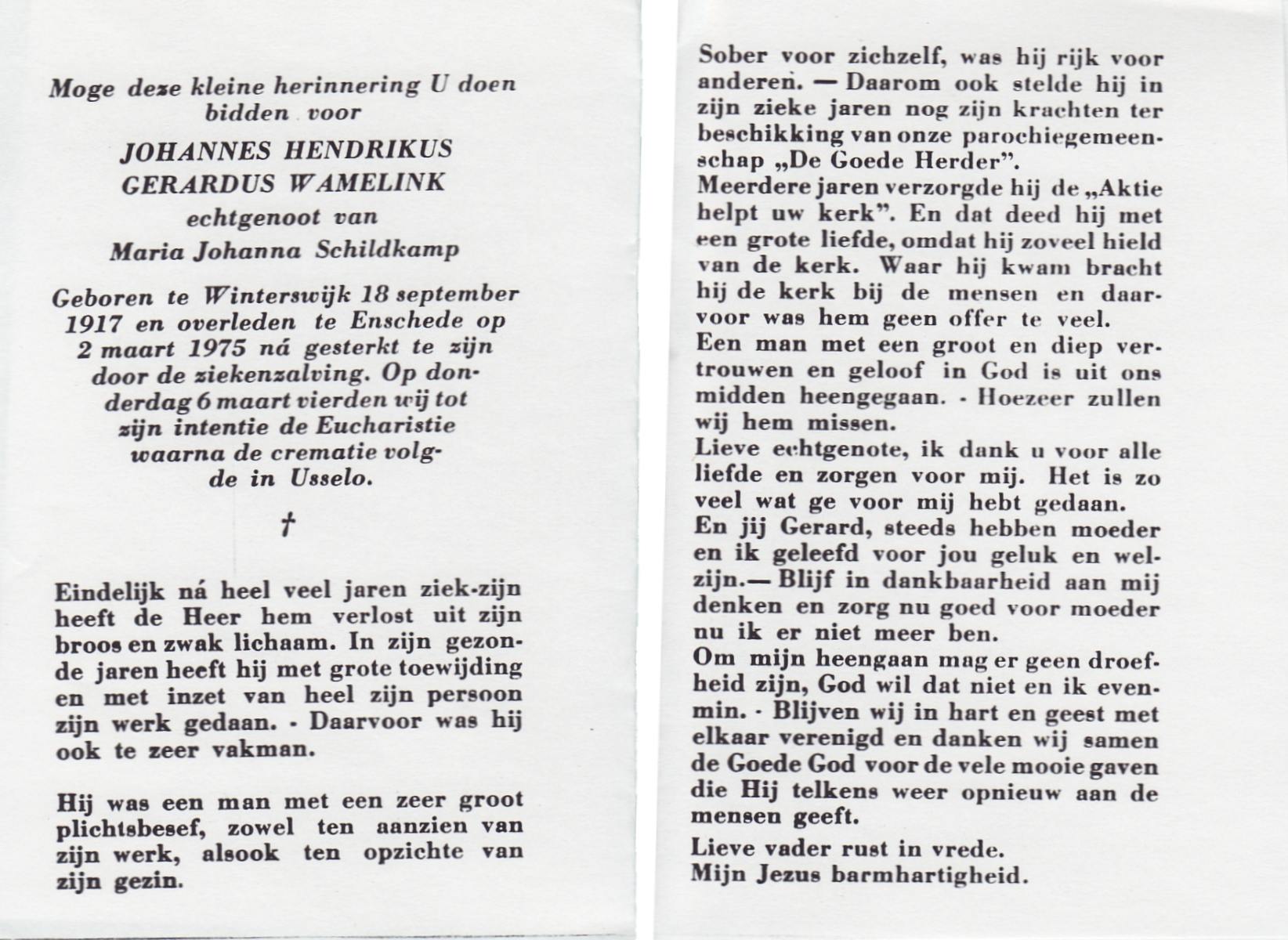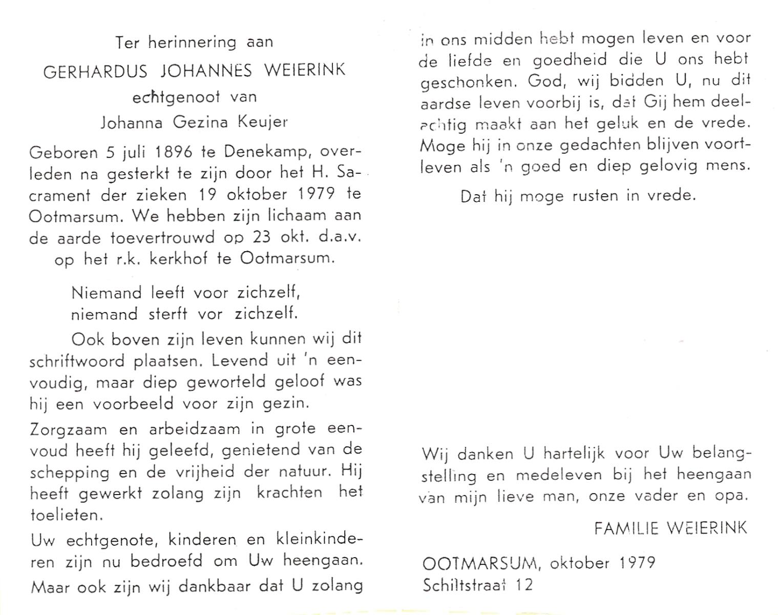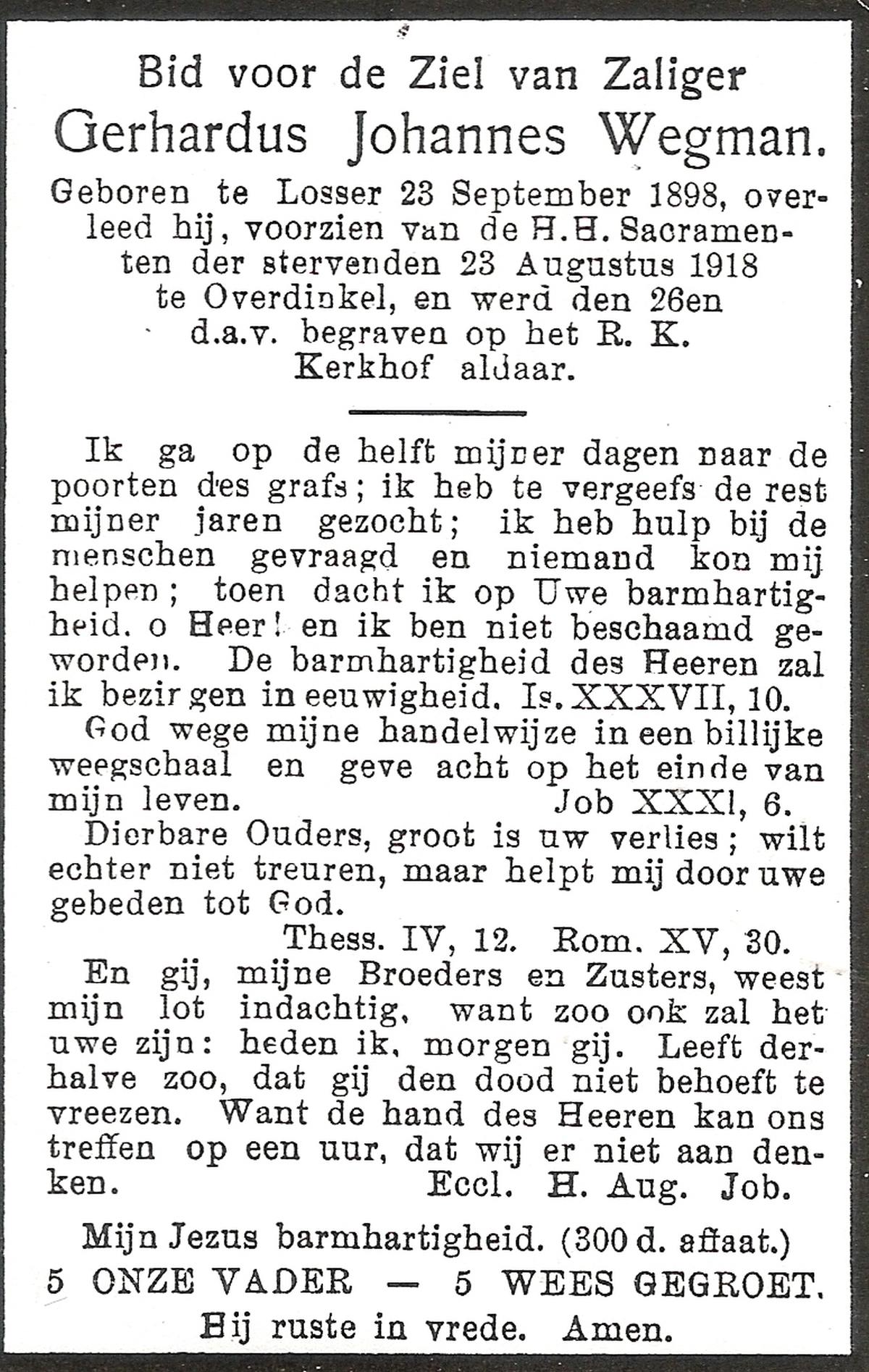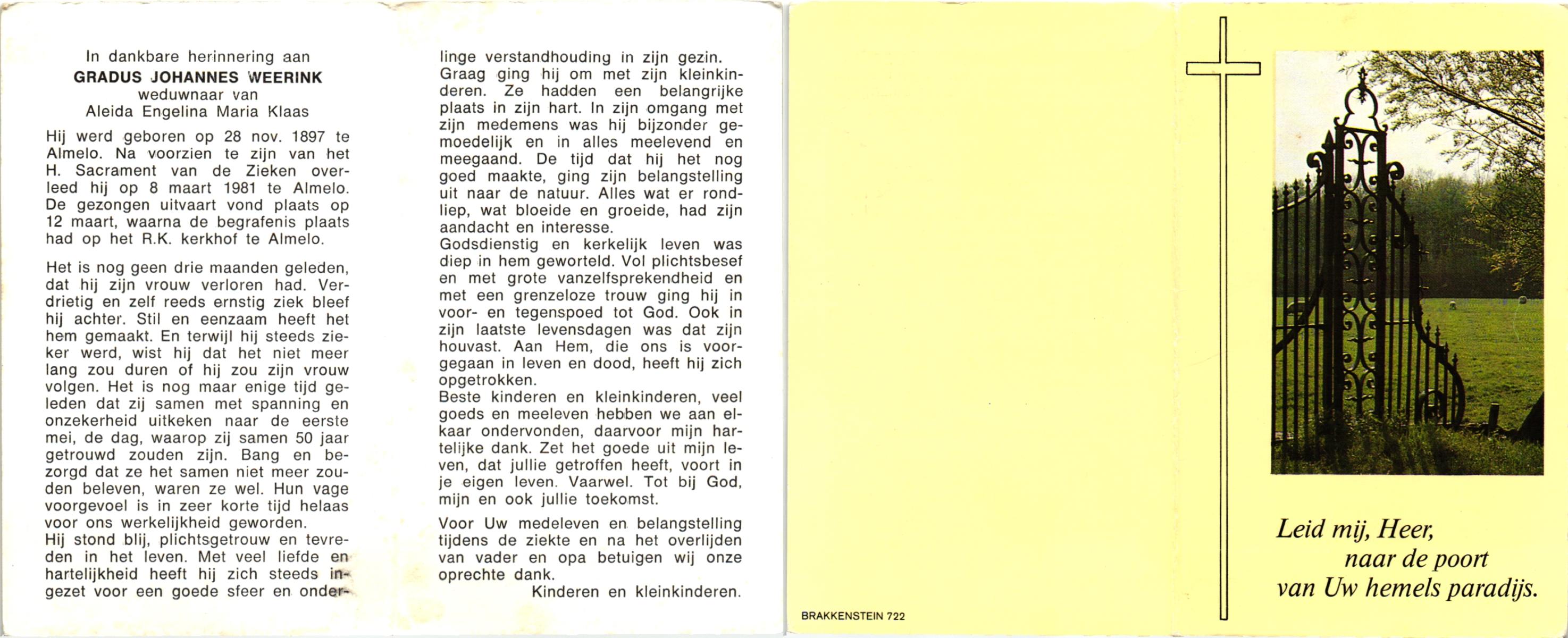 WELHUIS, Gerardus Johannes, geboren op 15-03-1890 te De Lutte, overleden op 1-11-1966 op 76-jarige leeftijd, begraven op 5-11-1966 te De Lutte.