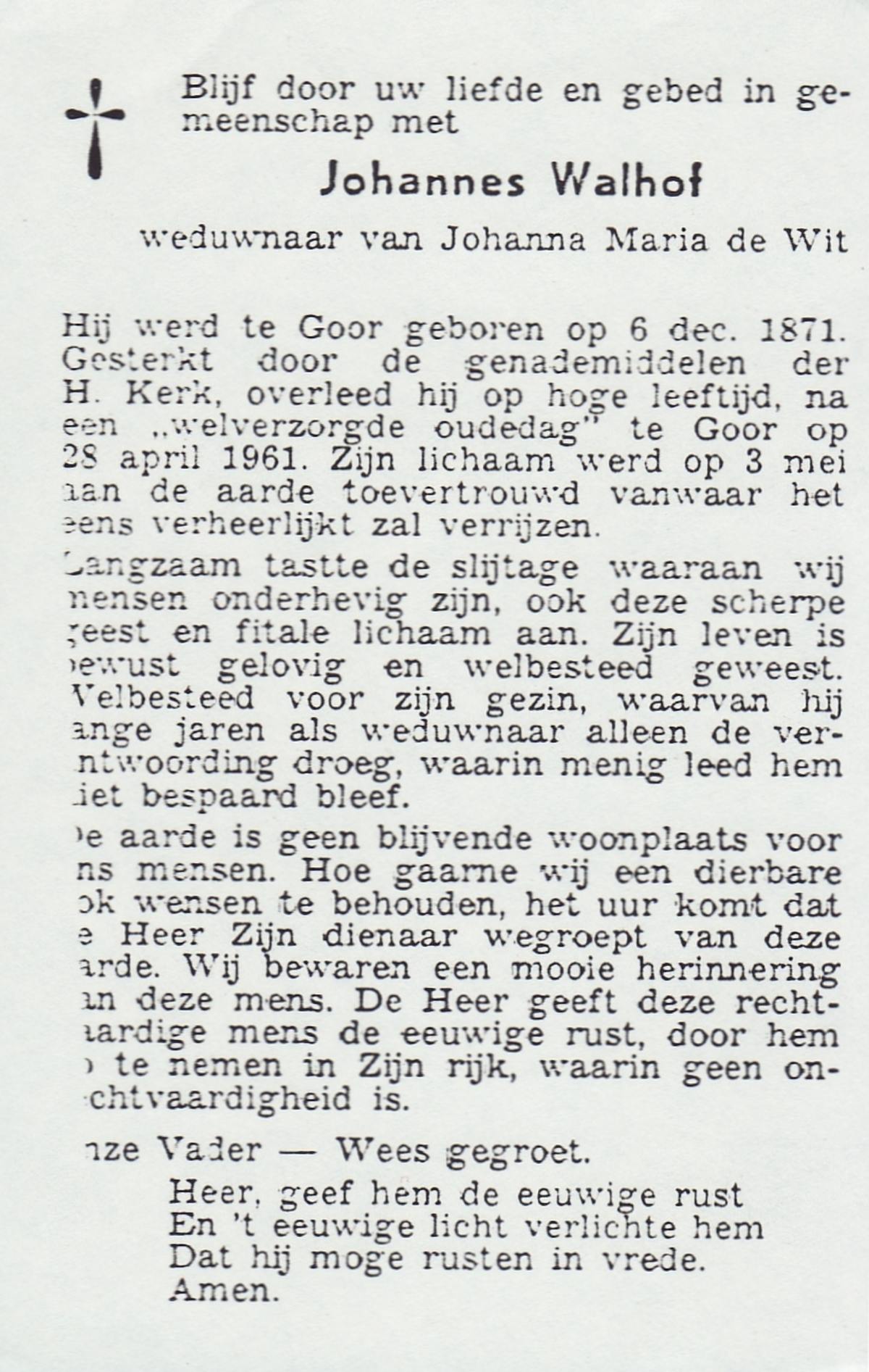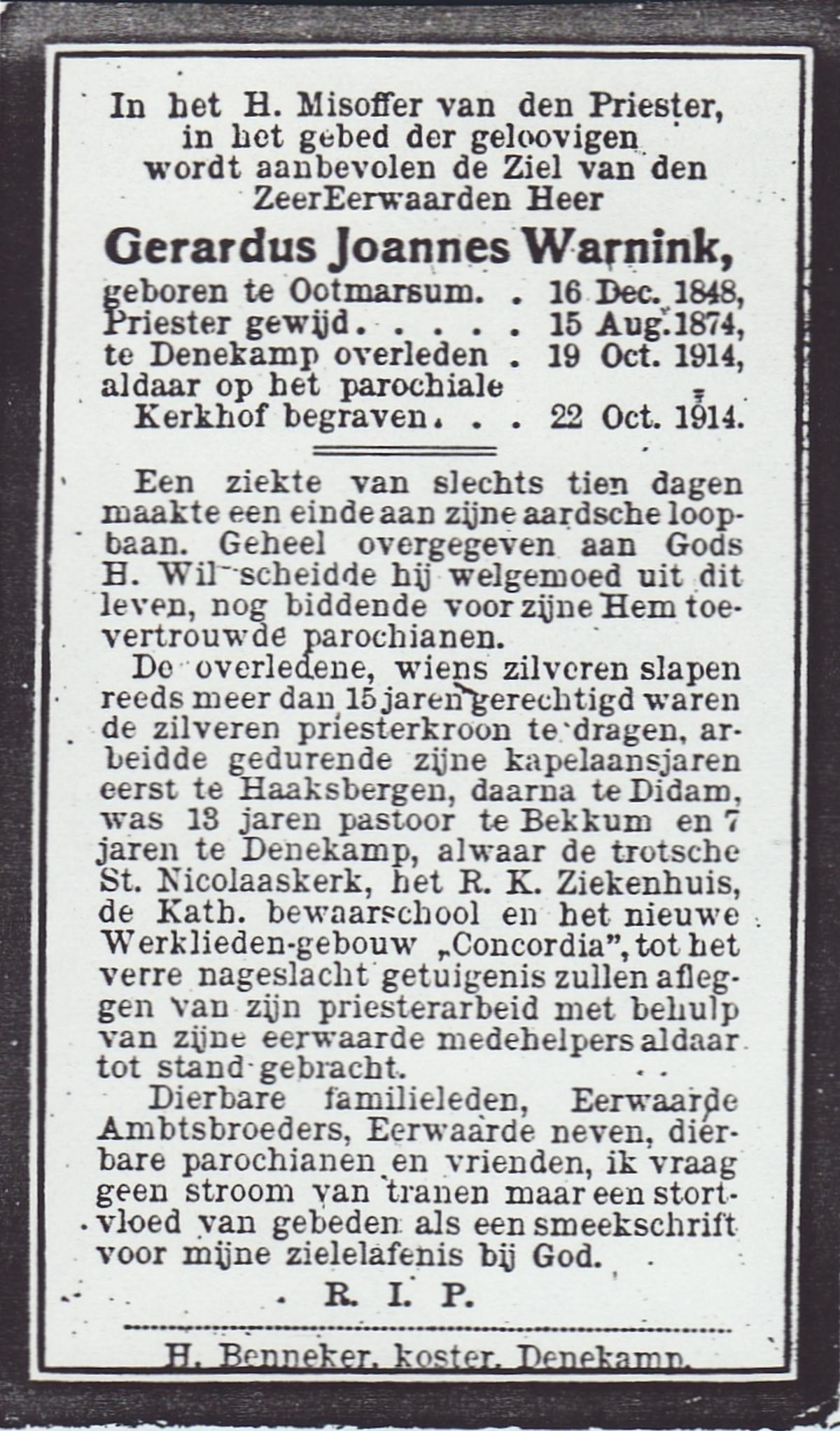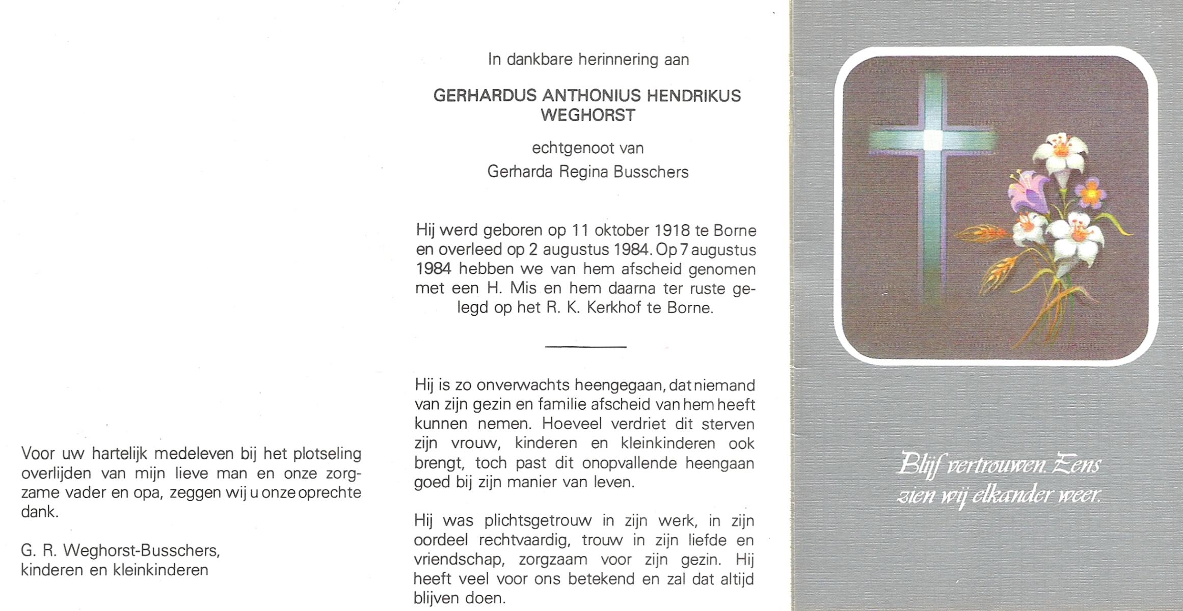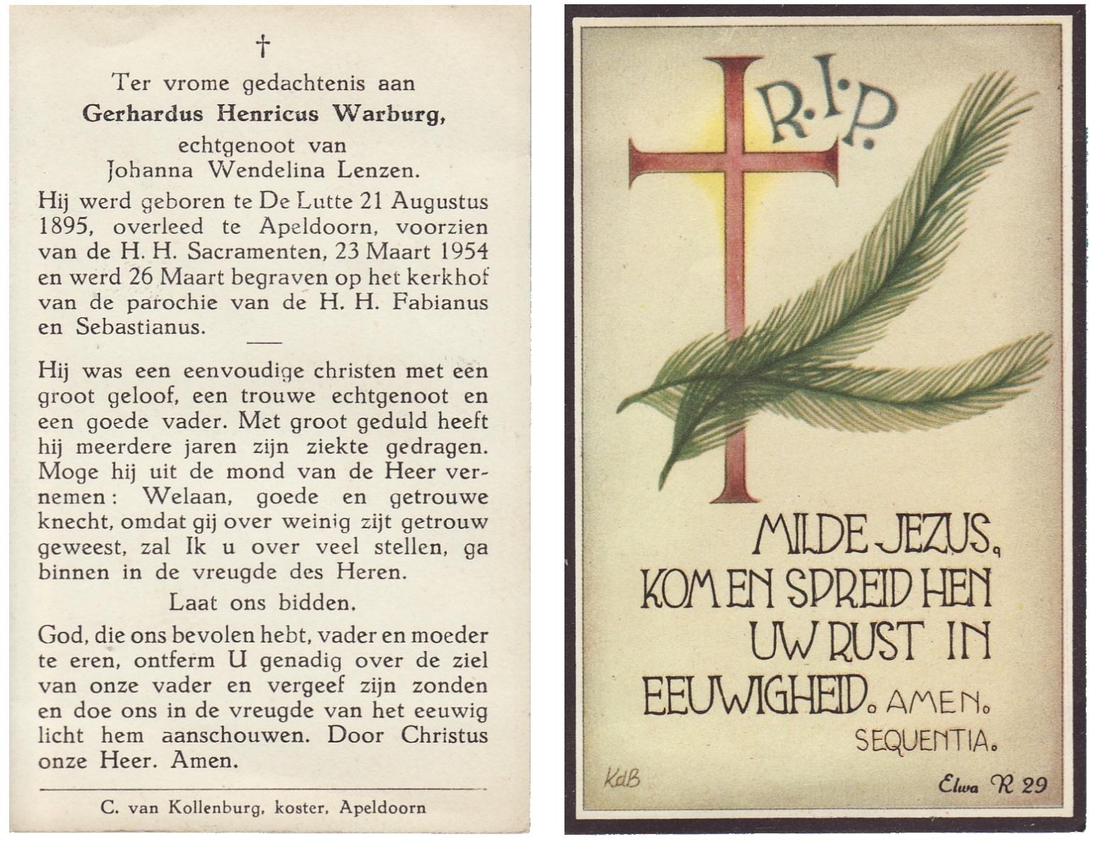 WELHUIS, Gerardus Johannes, geboren op 15-03-1890 te De Lutte, overleden op 1-11-1966 op 76-jarige leeftijd, begraven op 5-11-1966 te De Lutte.