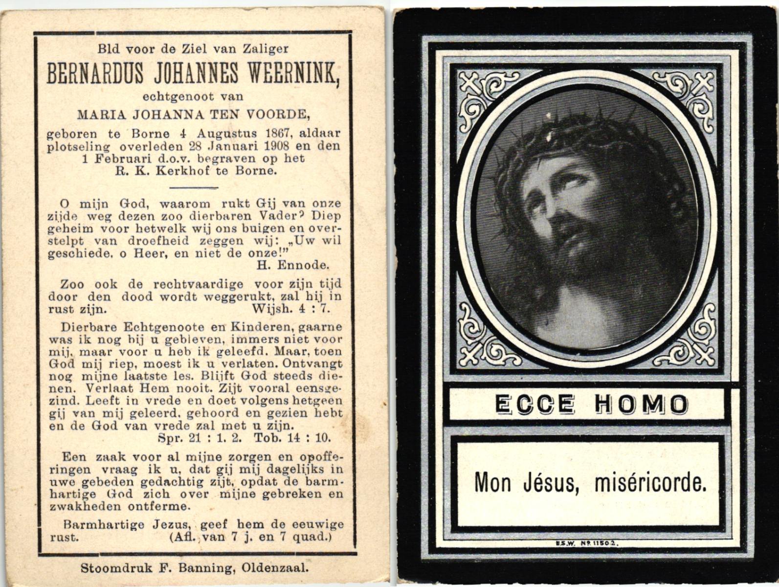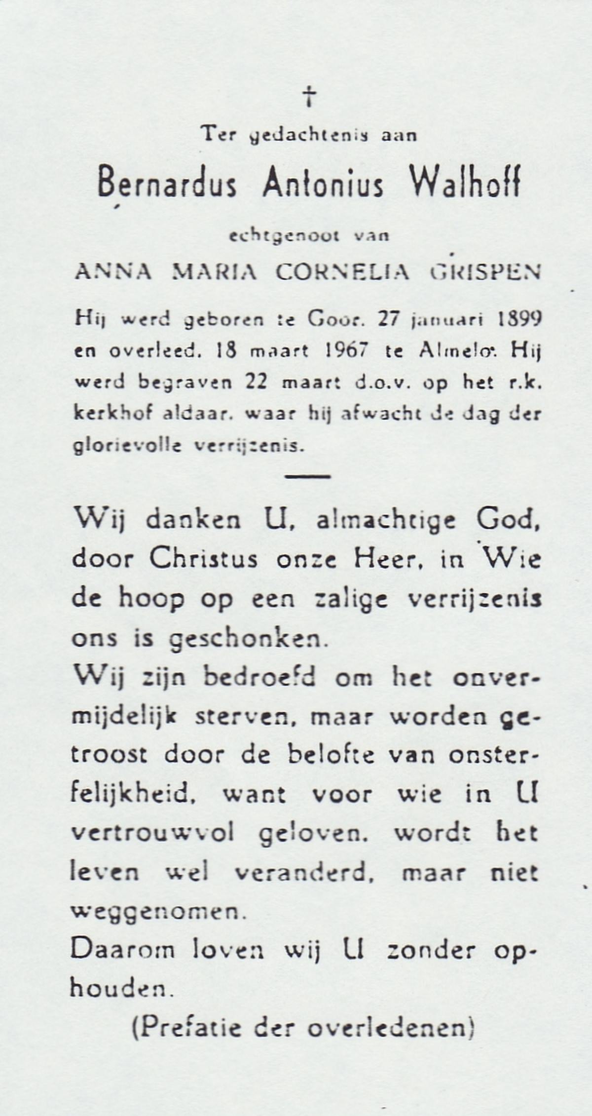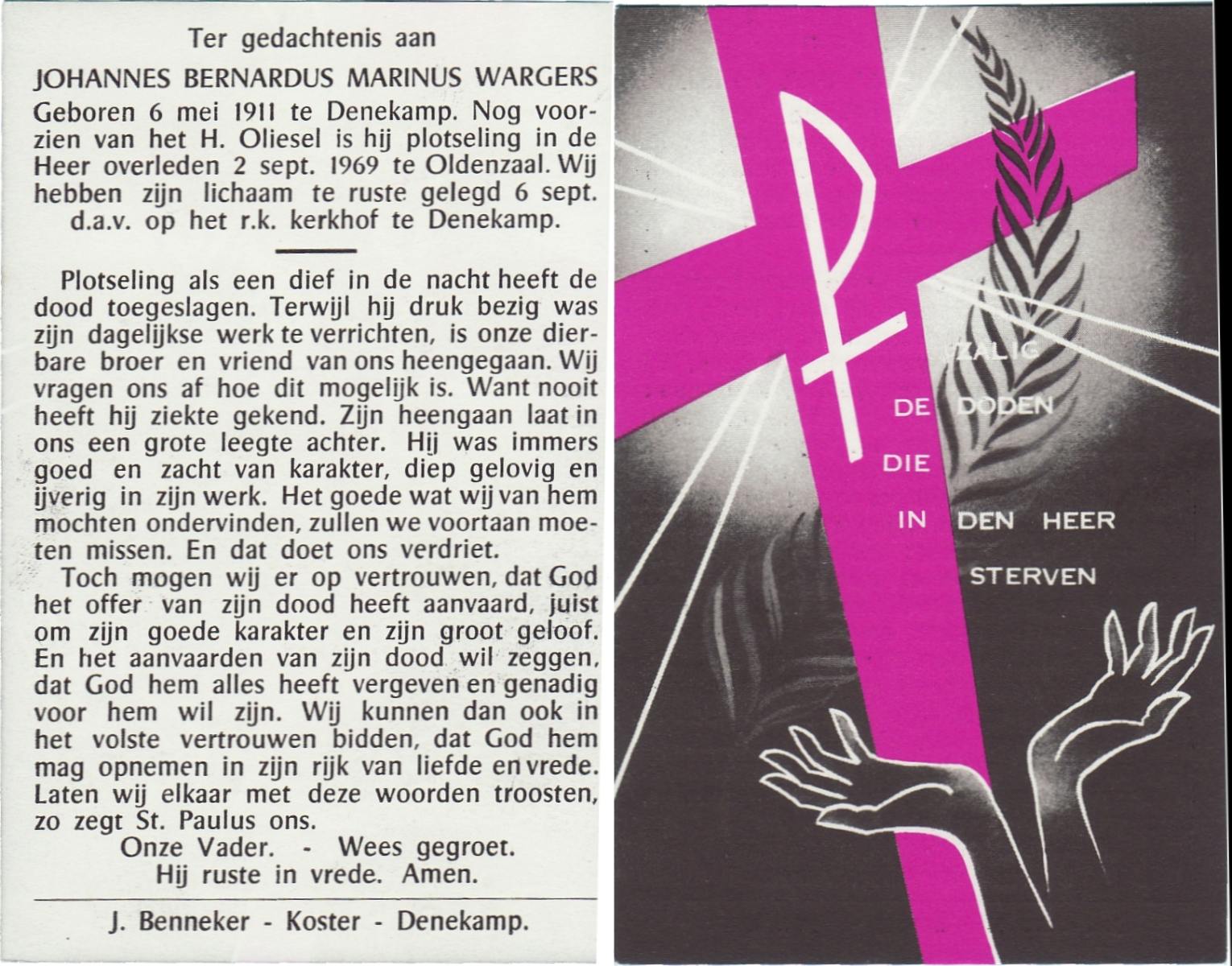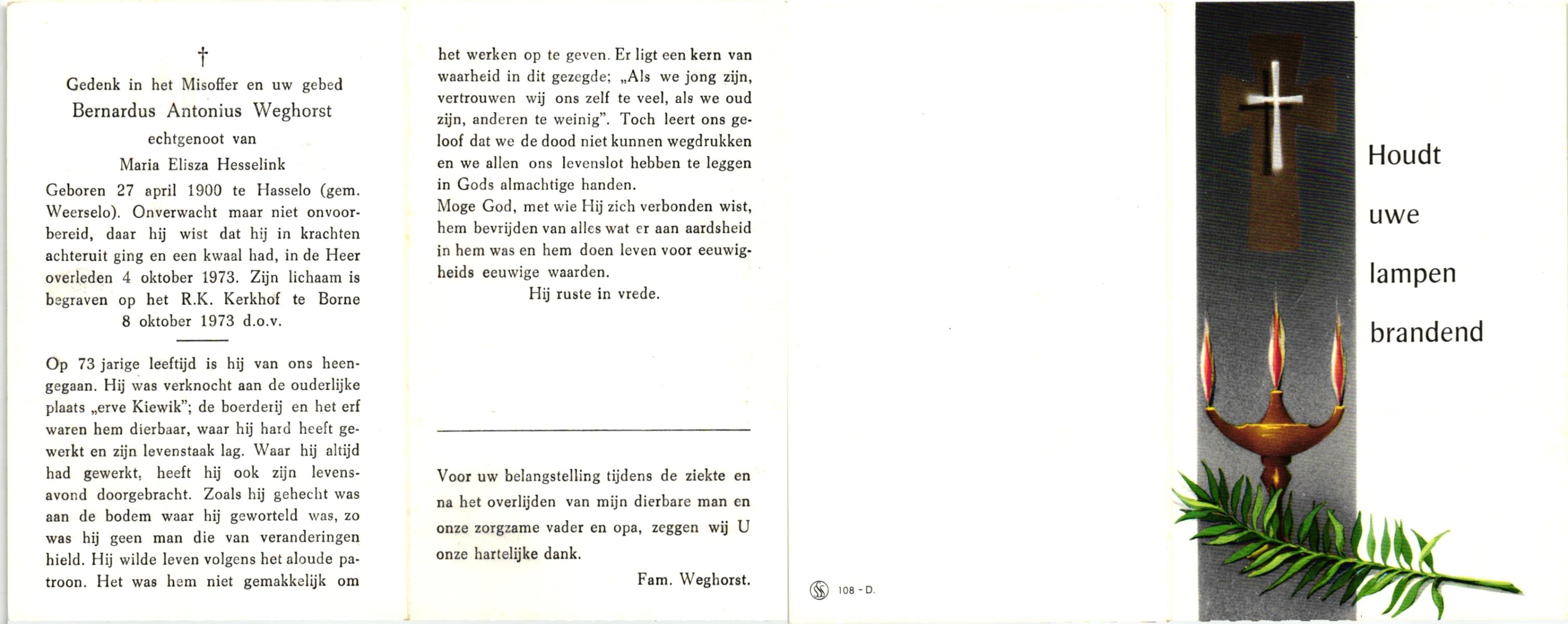 WELHUIS, Bernardus, geboren op 16-6-1907 te De Lutte, overleden op 4-1-1983 te De Lutte op 75-jarige leeftijd, begraven op 8-1-1983 te Oldenzaal.
