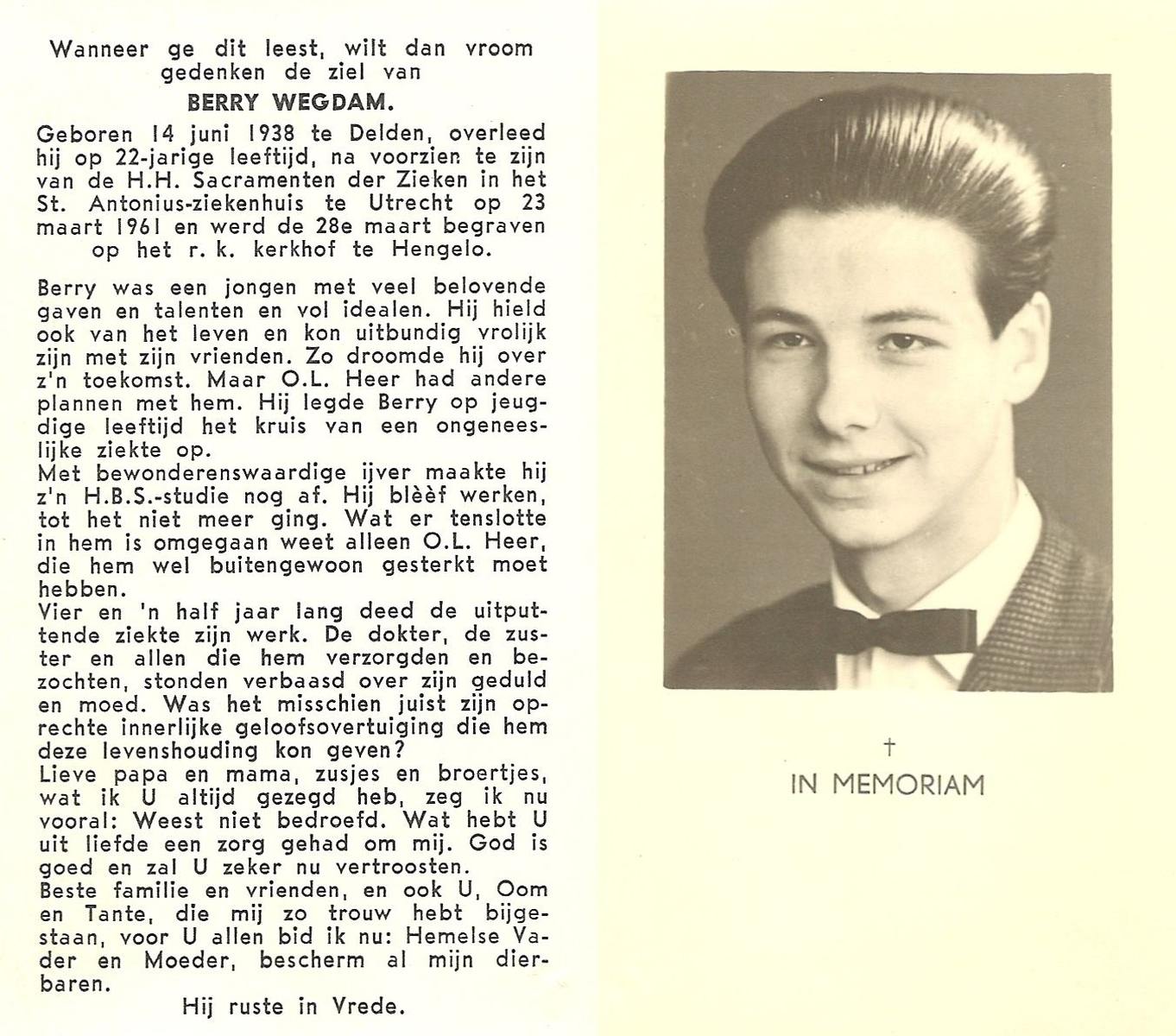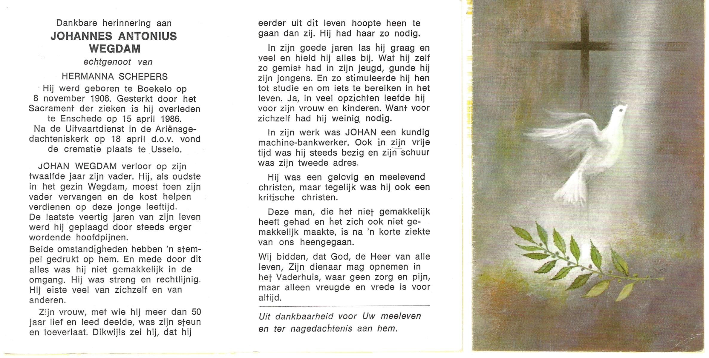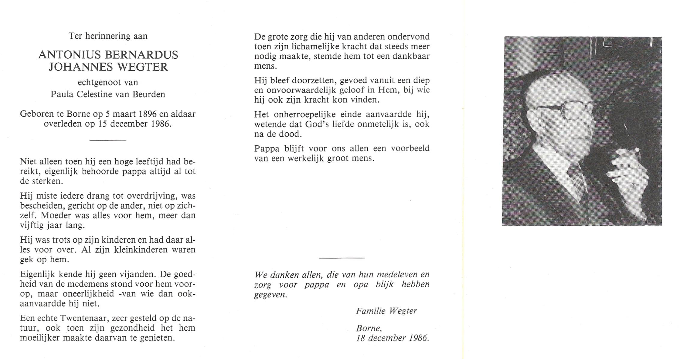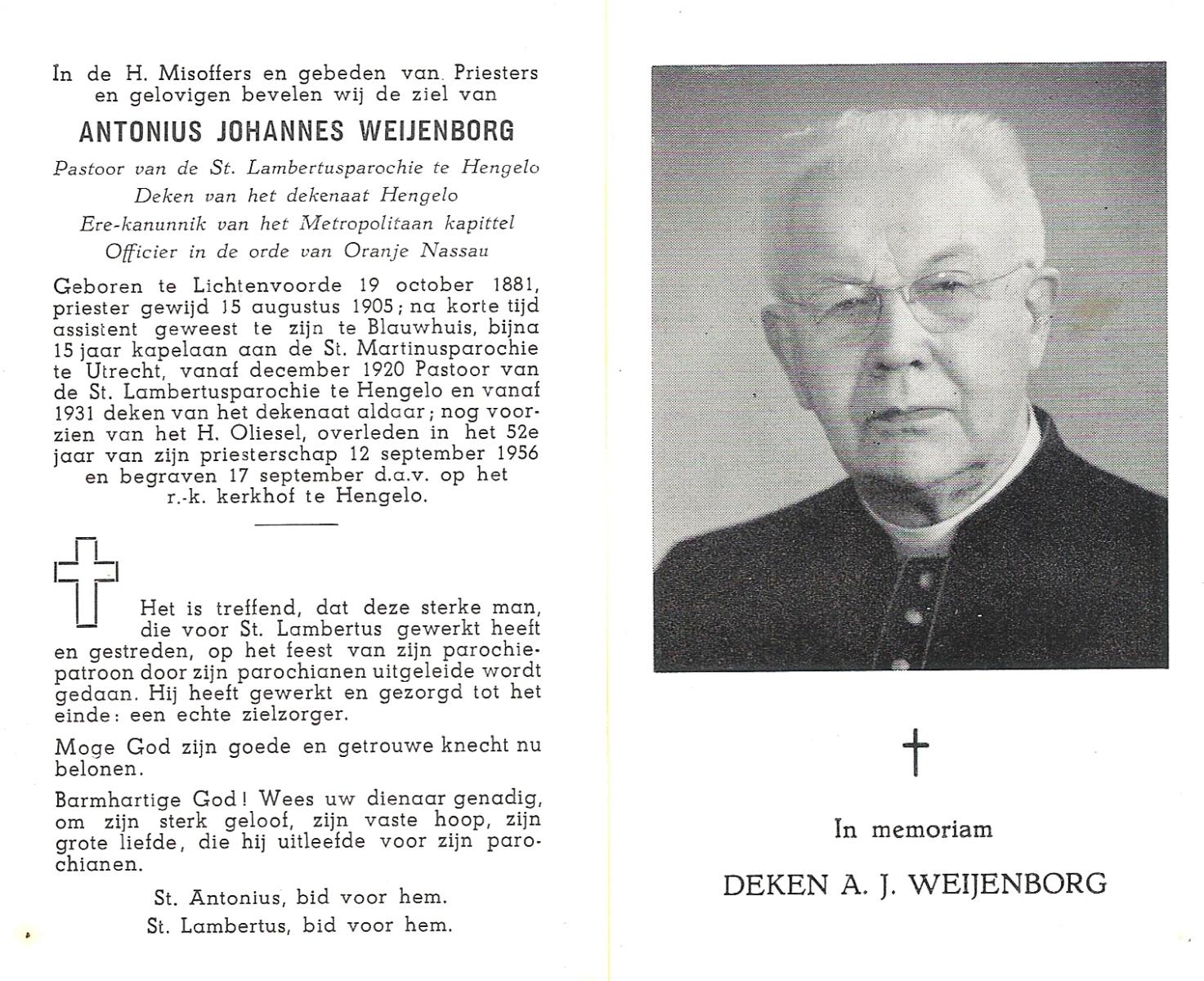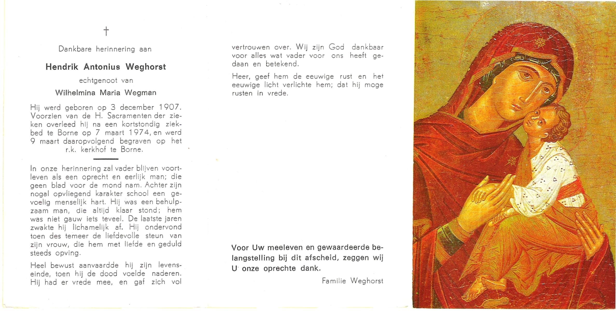WENDELS, Antonius Johannes, geboren op 21-10-1921 te Hengelo (O), overleden op 13-7-1982 op 60-jarige leeftijd, begraven op 16-7-1982.