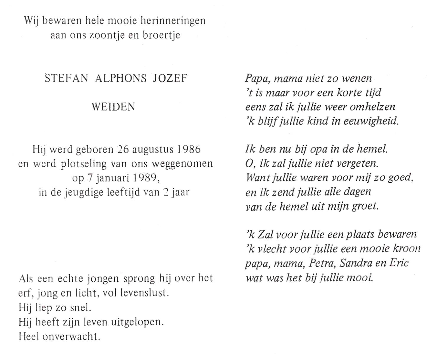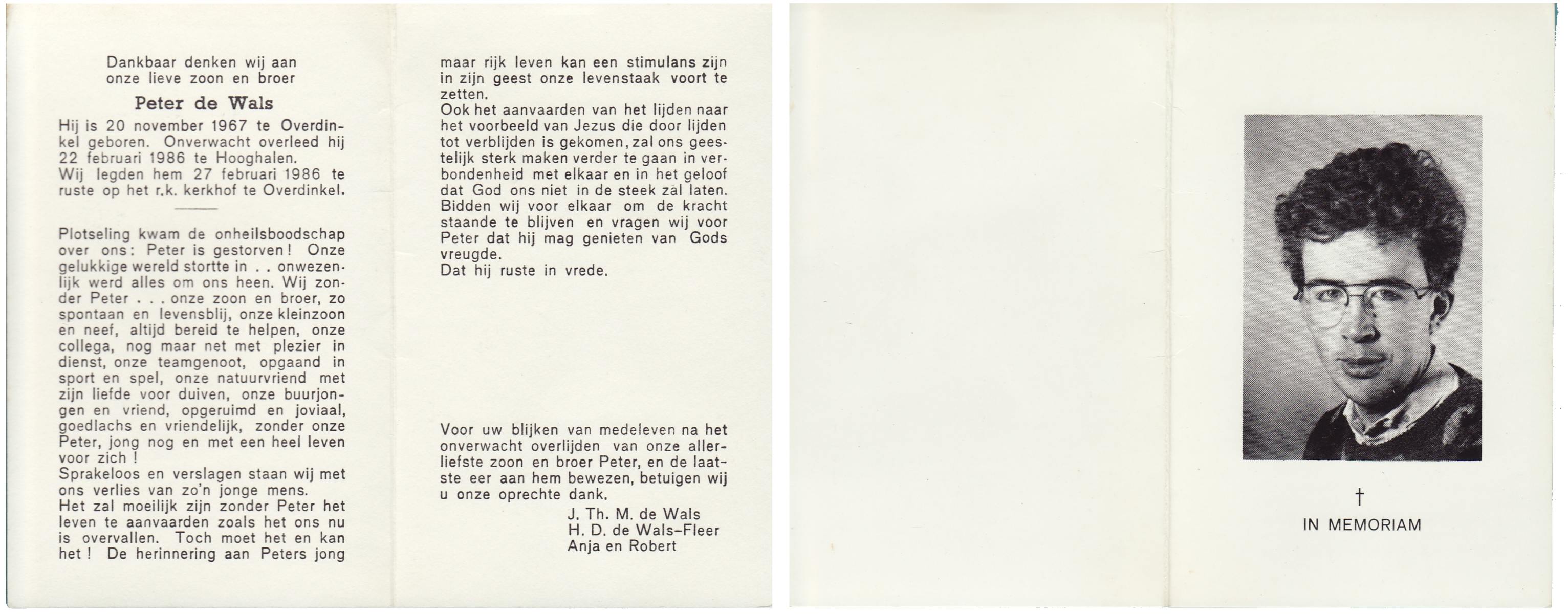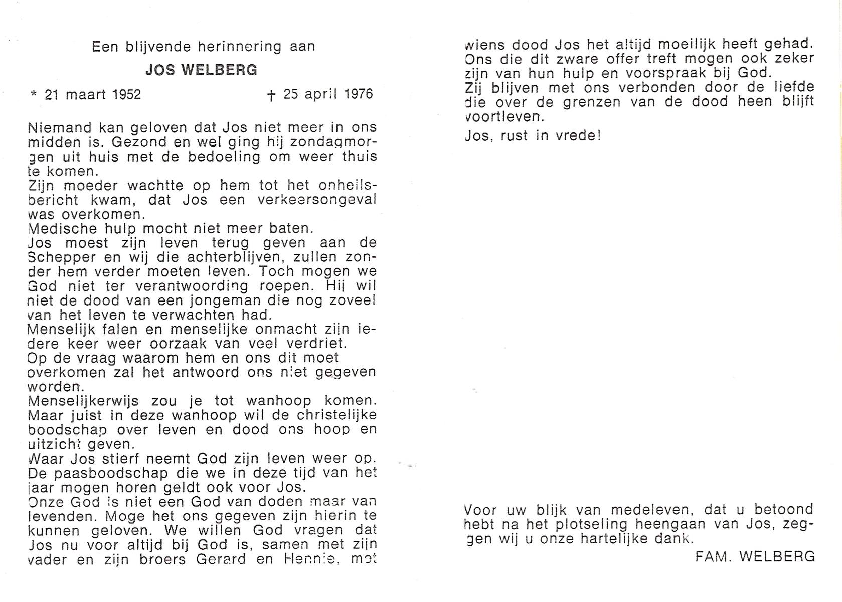 WELBERG, Jos, geboren op 21-3-1952, overleden op 25-4-1976 op 24-jarige leeftijd.