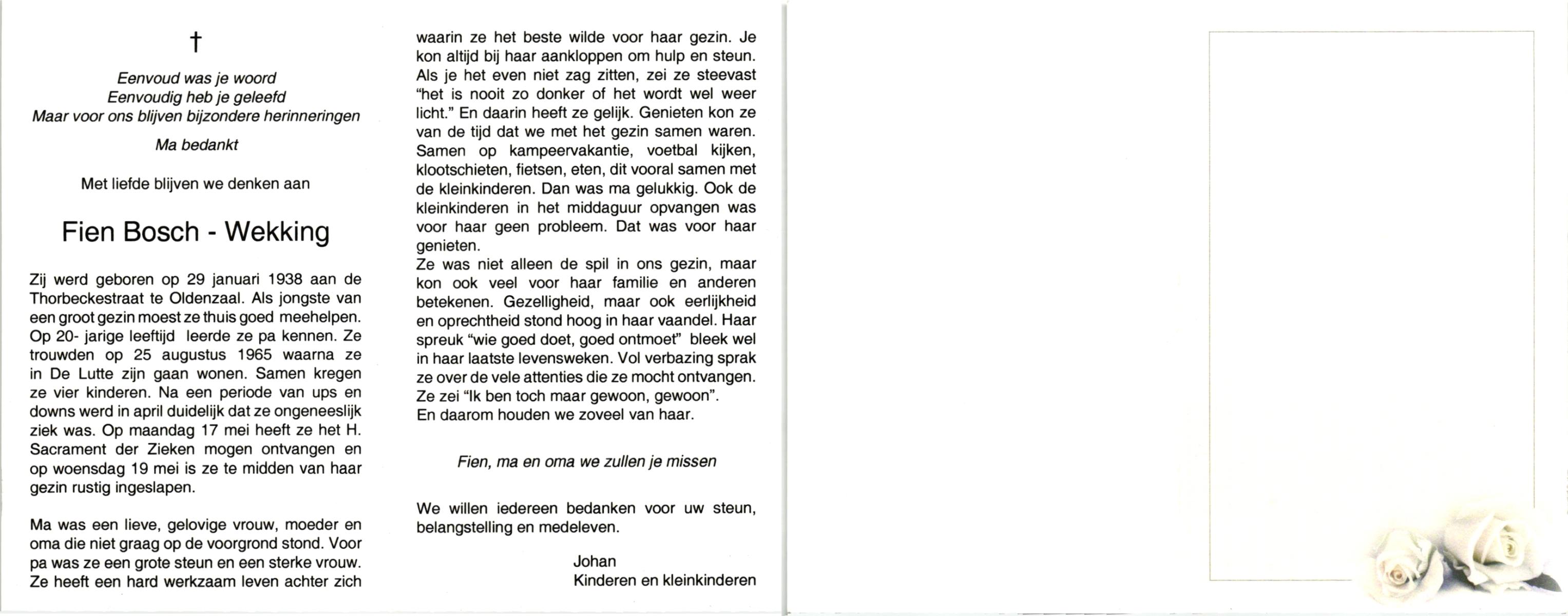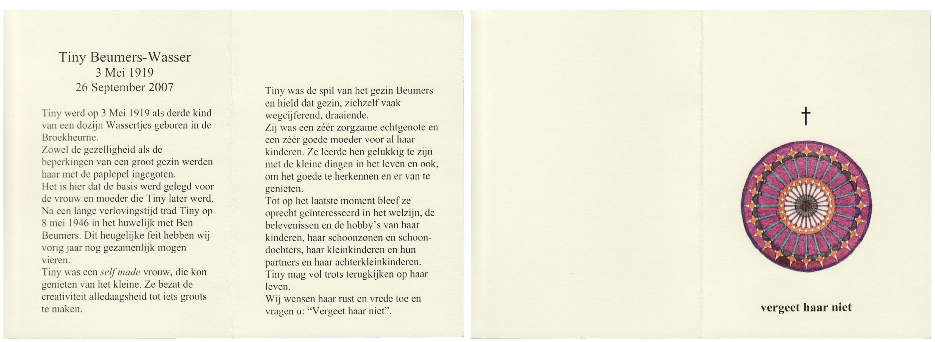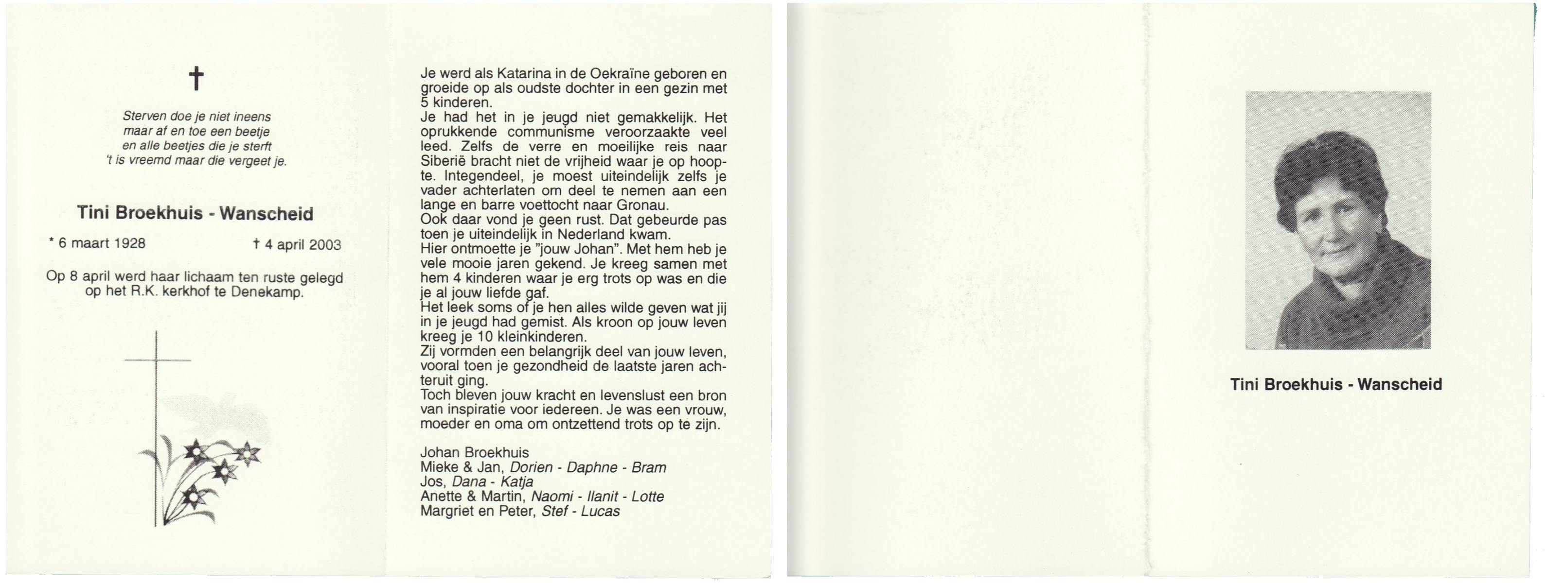 WENNEKES, Theodora Johanna, geboren op 3-1-1918 te Renkum, overleden op 24-11-2005 te Hengelo (Ov.) op 87-jarige leeftijd, gecremeerd op 30-11-2005 te Usselo.