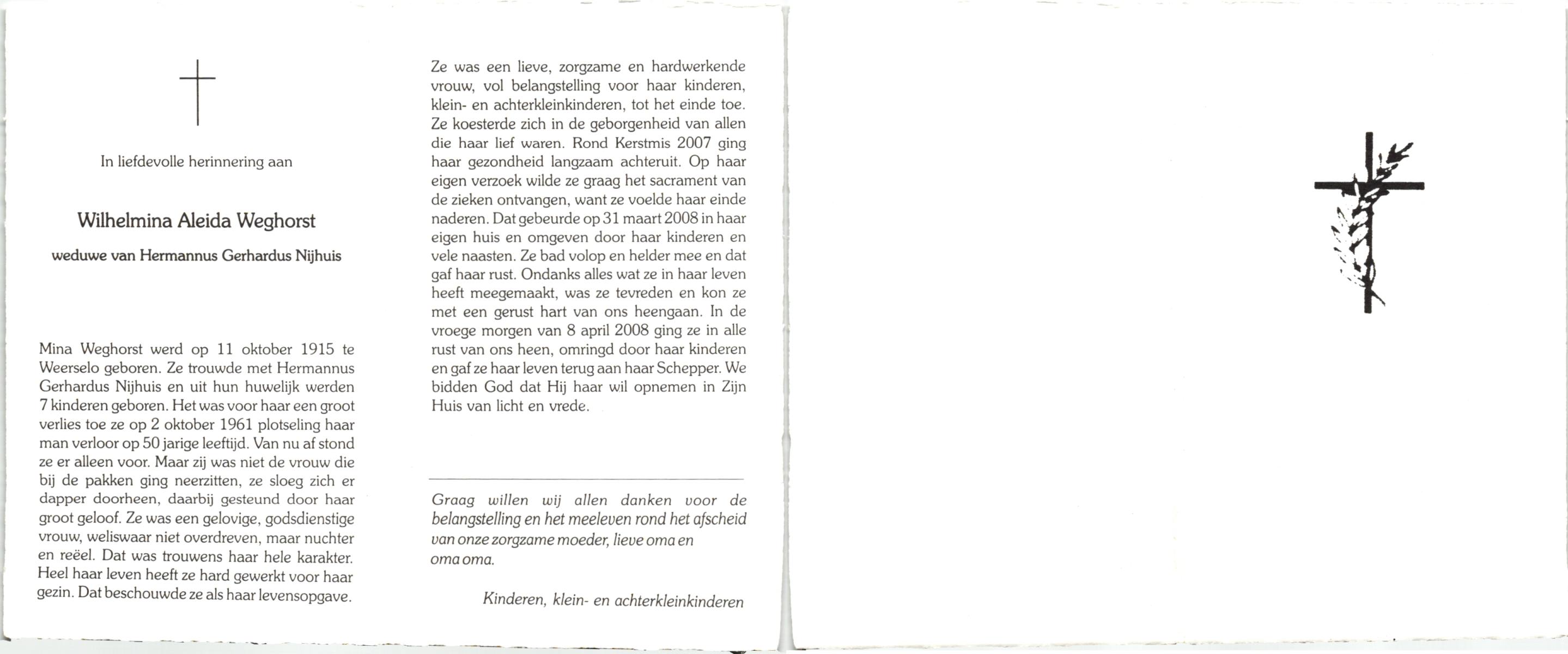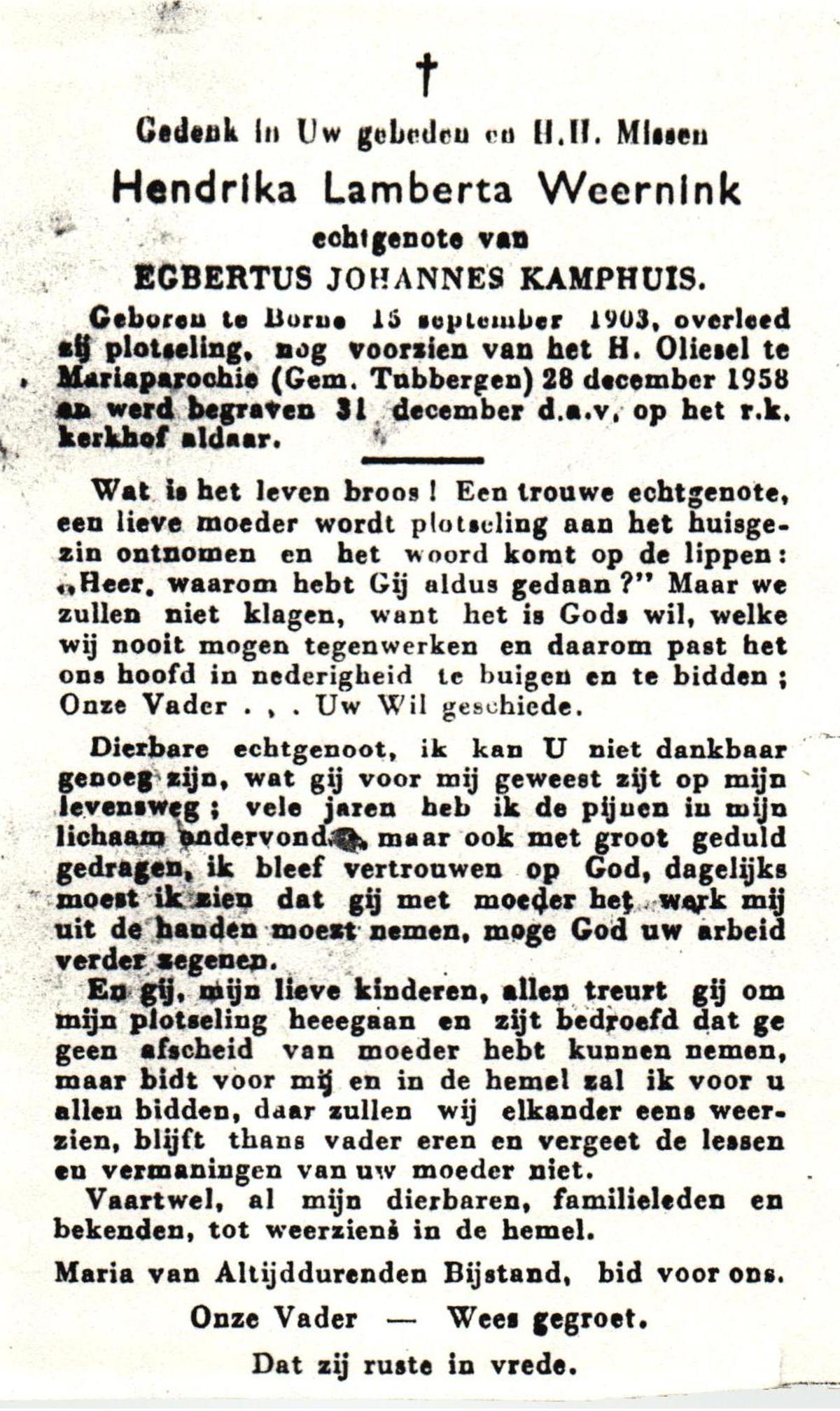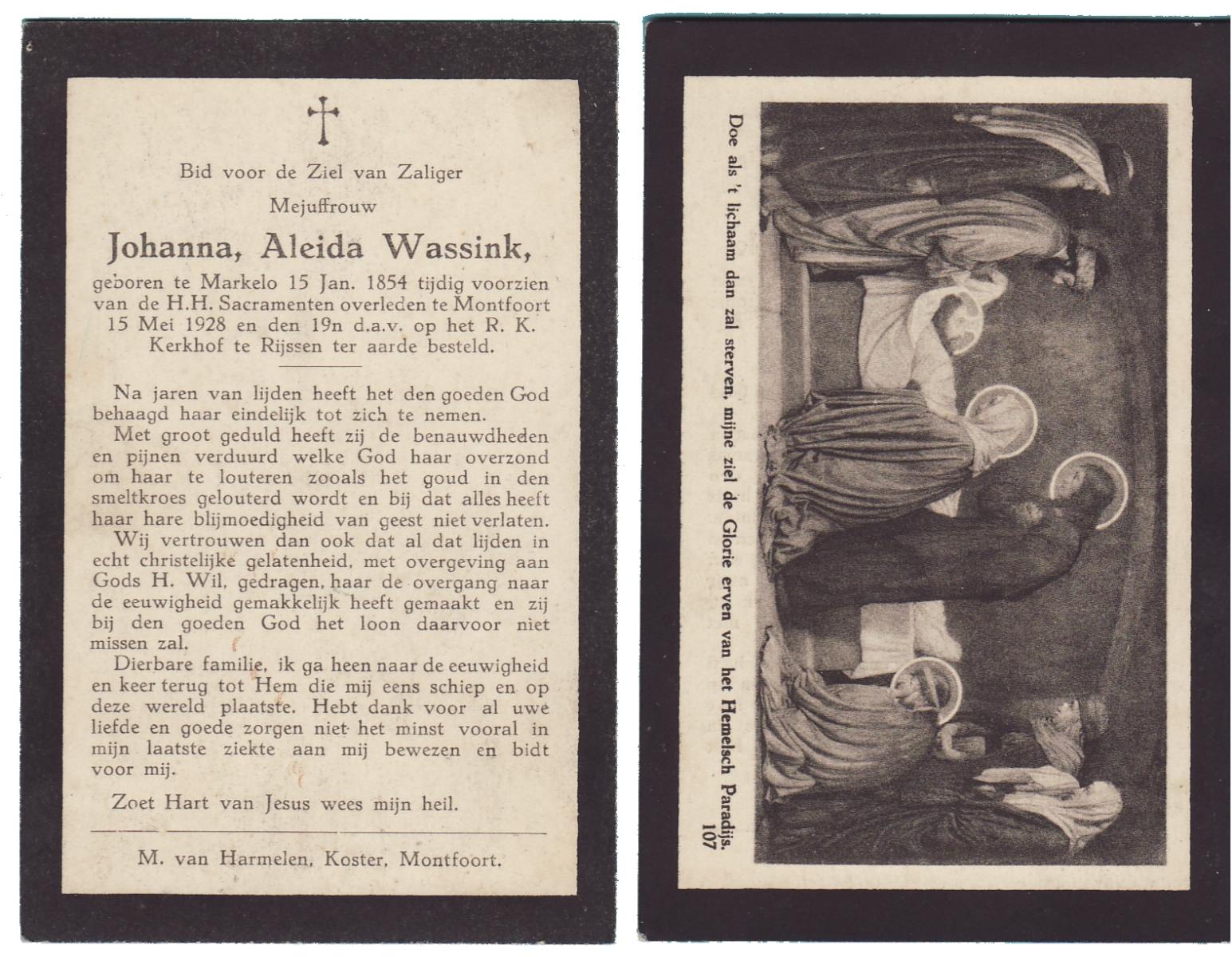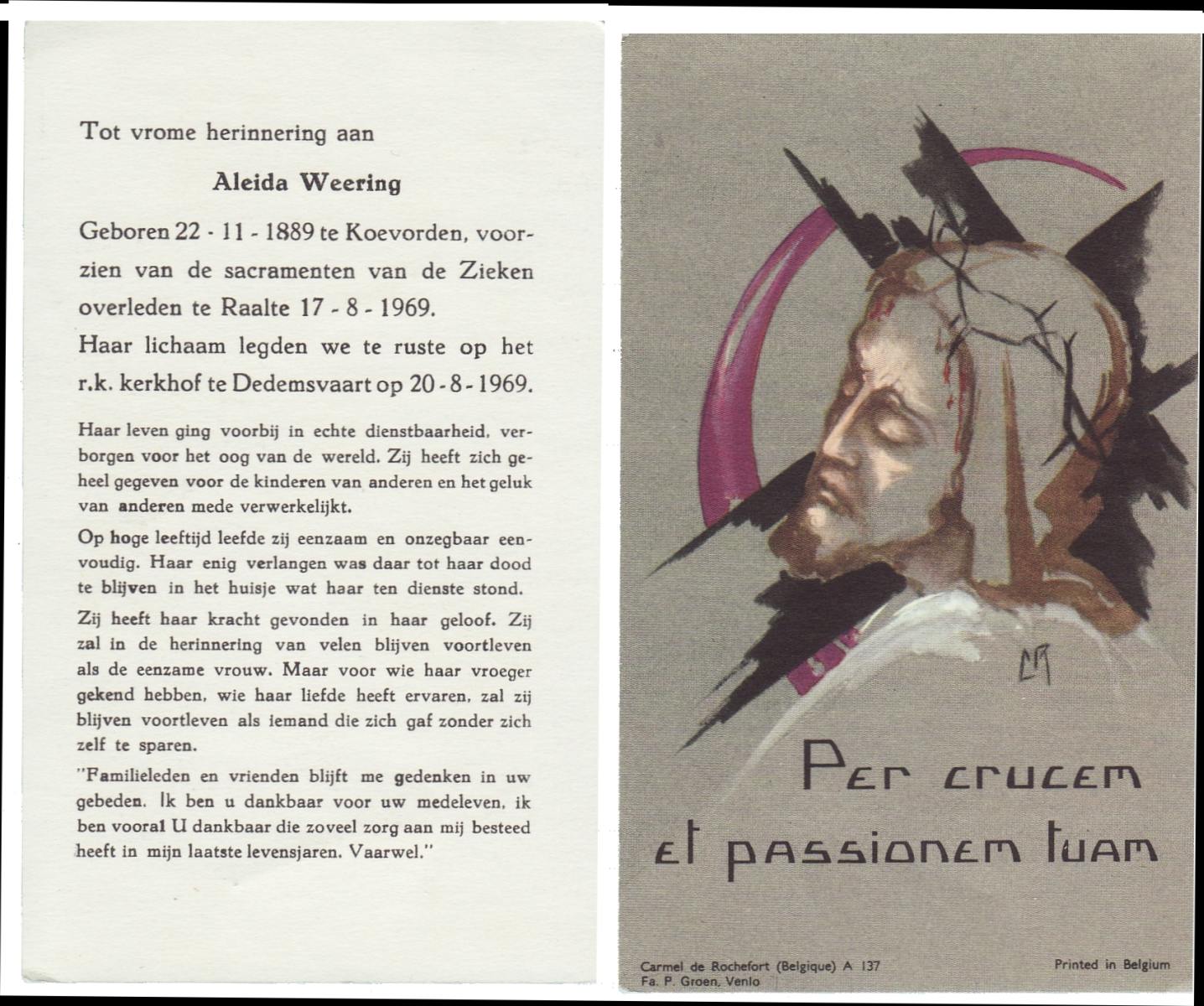 WELHUIS, Aleida, geboren op 15-4-1904 te De Lutte, overleden op 2-3-1983 op 78-jarige leeftijd, begraven op 5-3-1983 te De Lutte.
