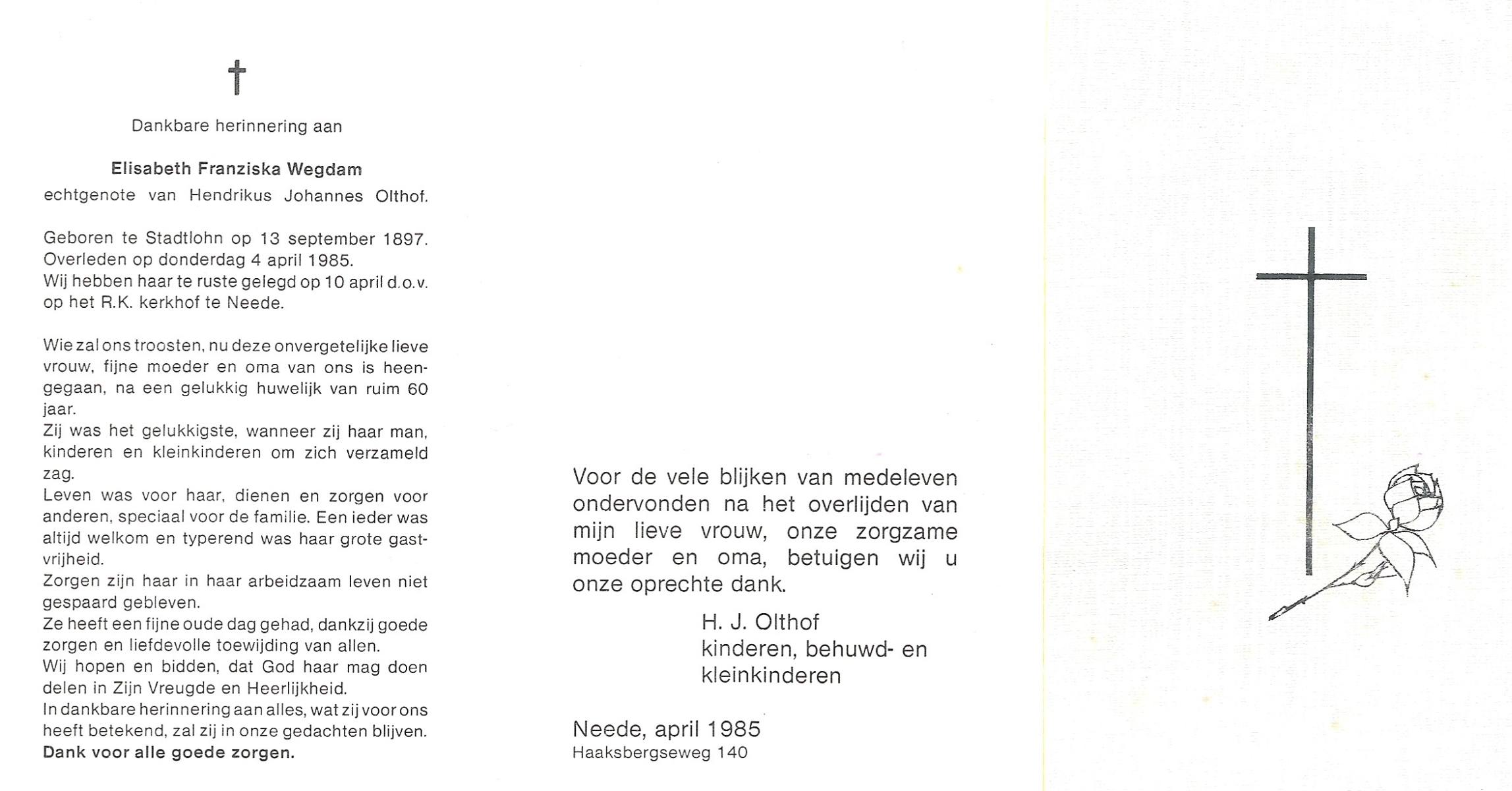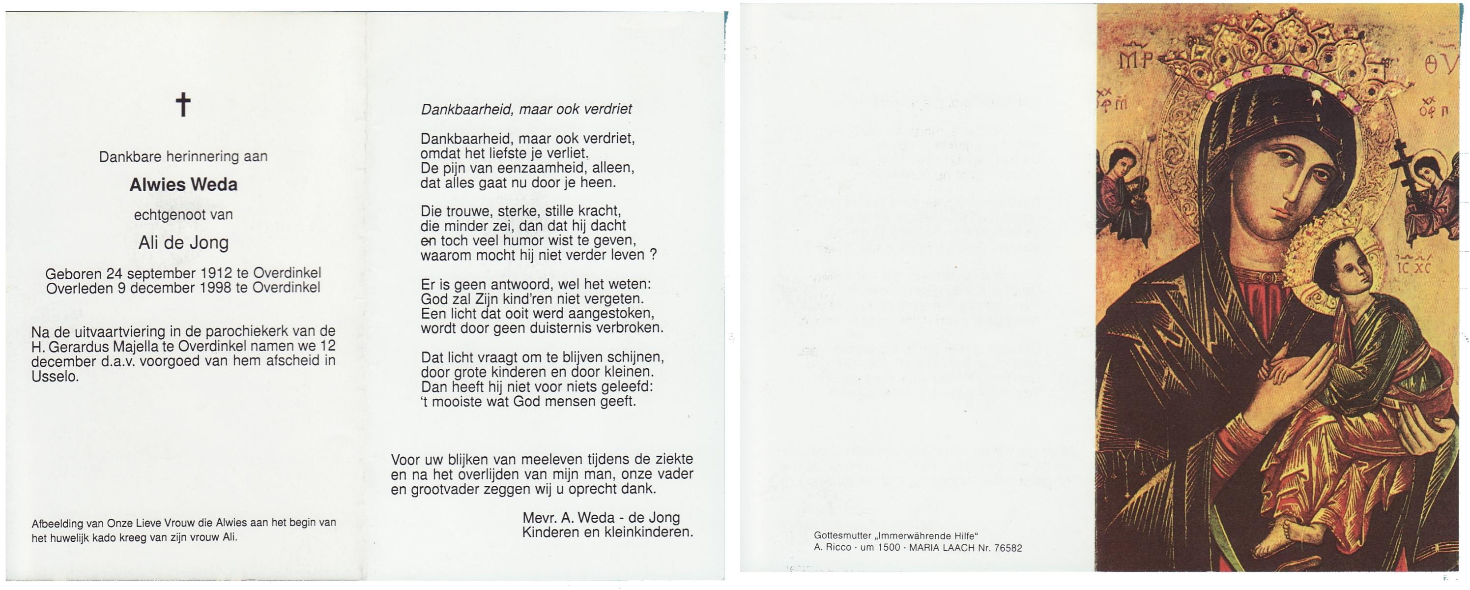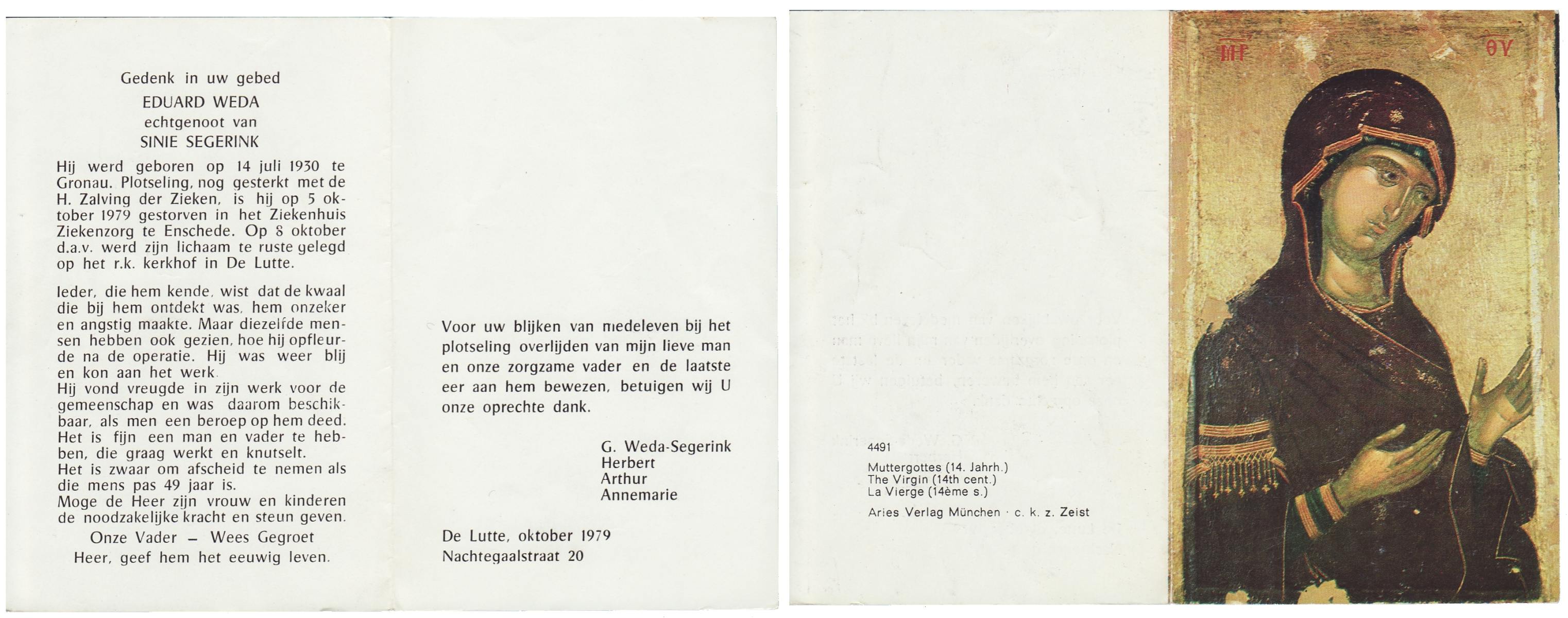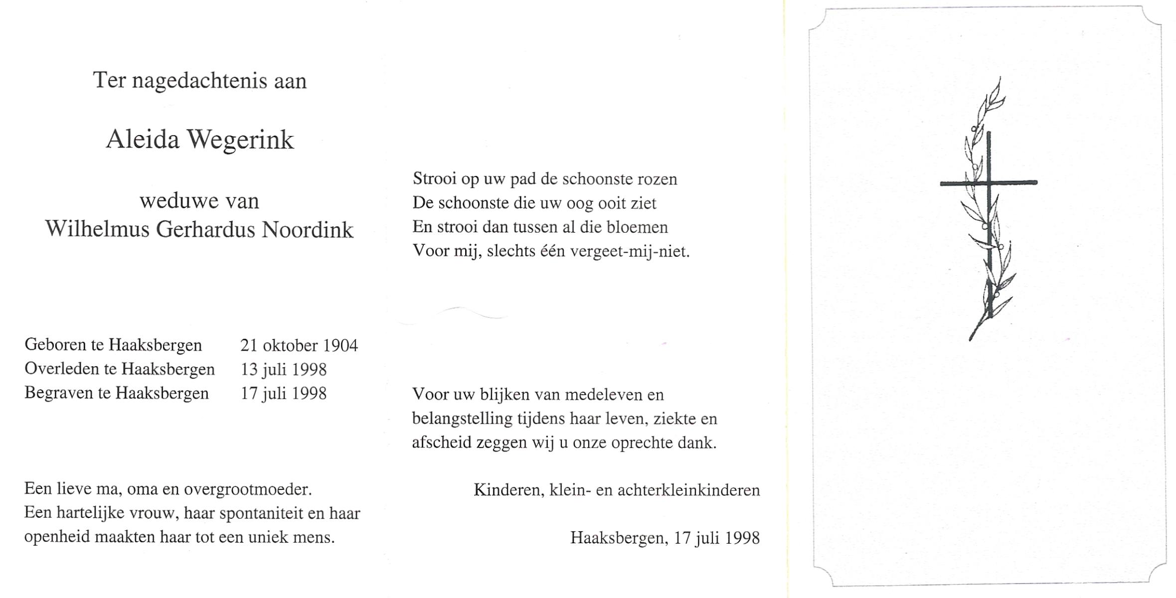 WELHUIS, Aleida, geboren op 15-4-1904 te De Lutte, overleden op 2-3-1983 op 78-jarige leeftijd, begraven op 5-3-1983 te De Lutte.