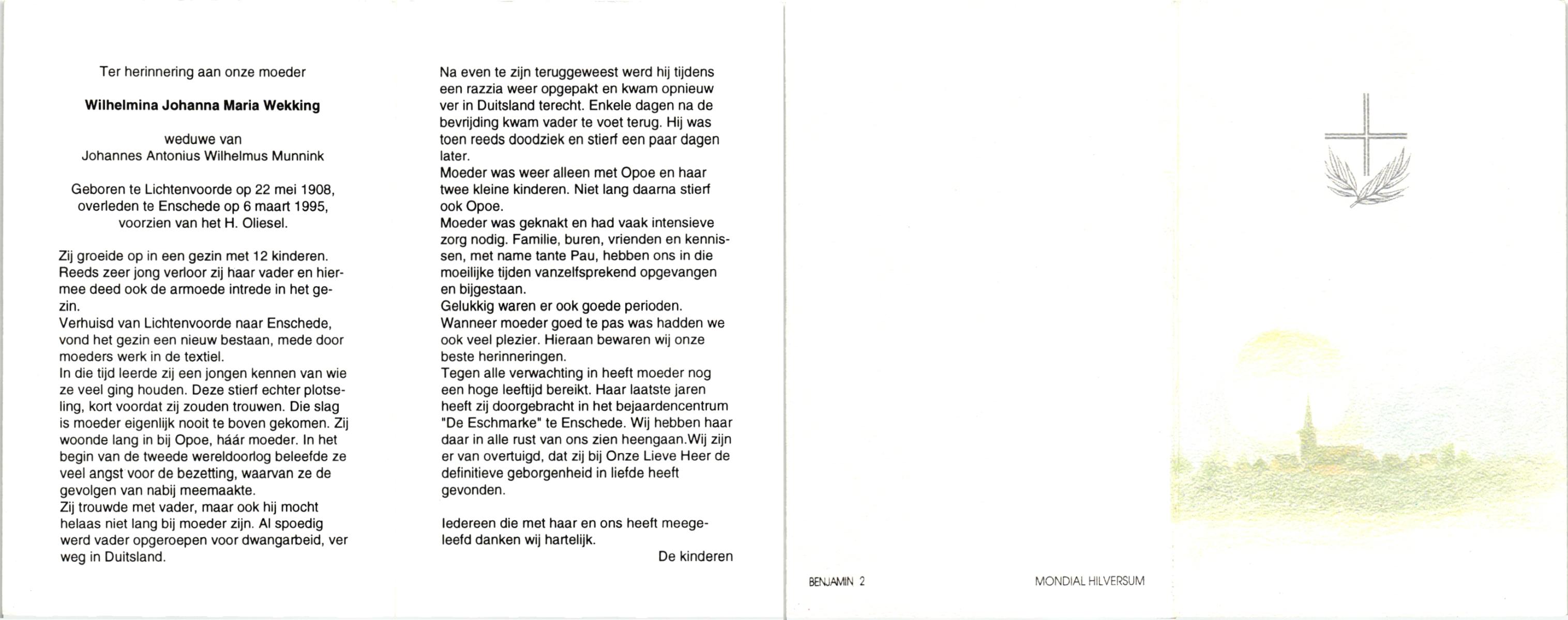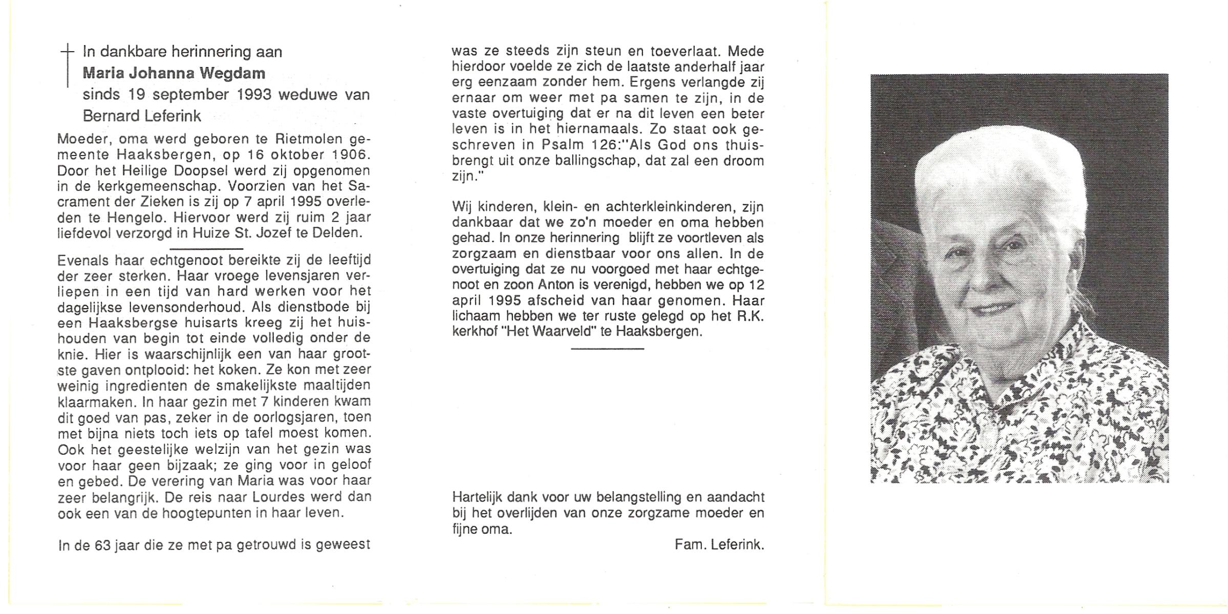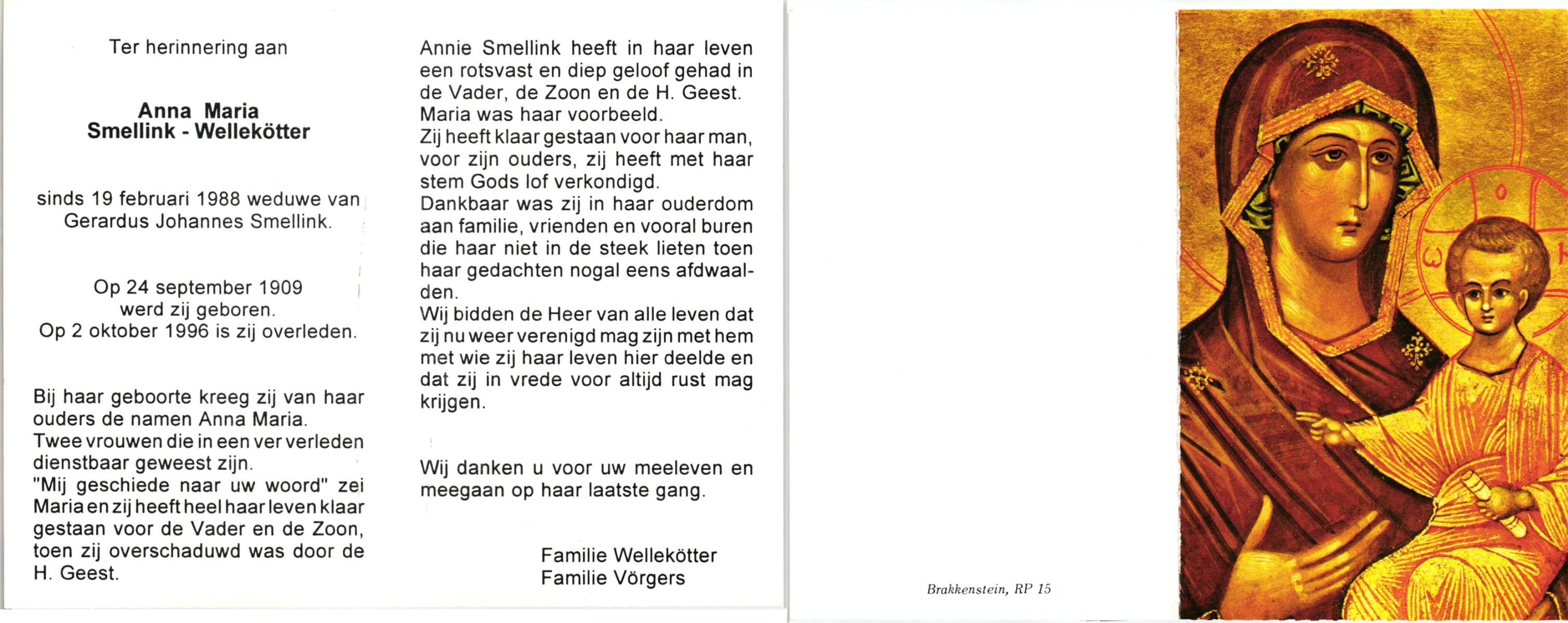 WELMAN, , Johanna Maria, geboren op 30-8-1918 te Lonneker, overleden op 1-7-1994 op 75-jarige leeftijd, begraven op 7-7-1994 te Glanerbrug.