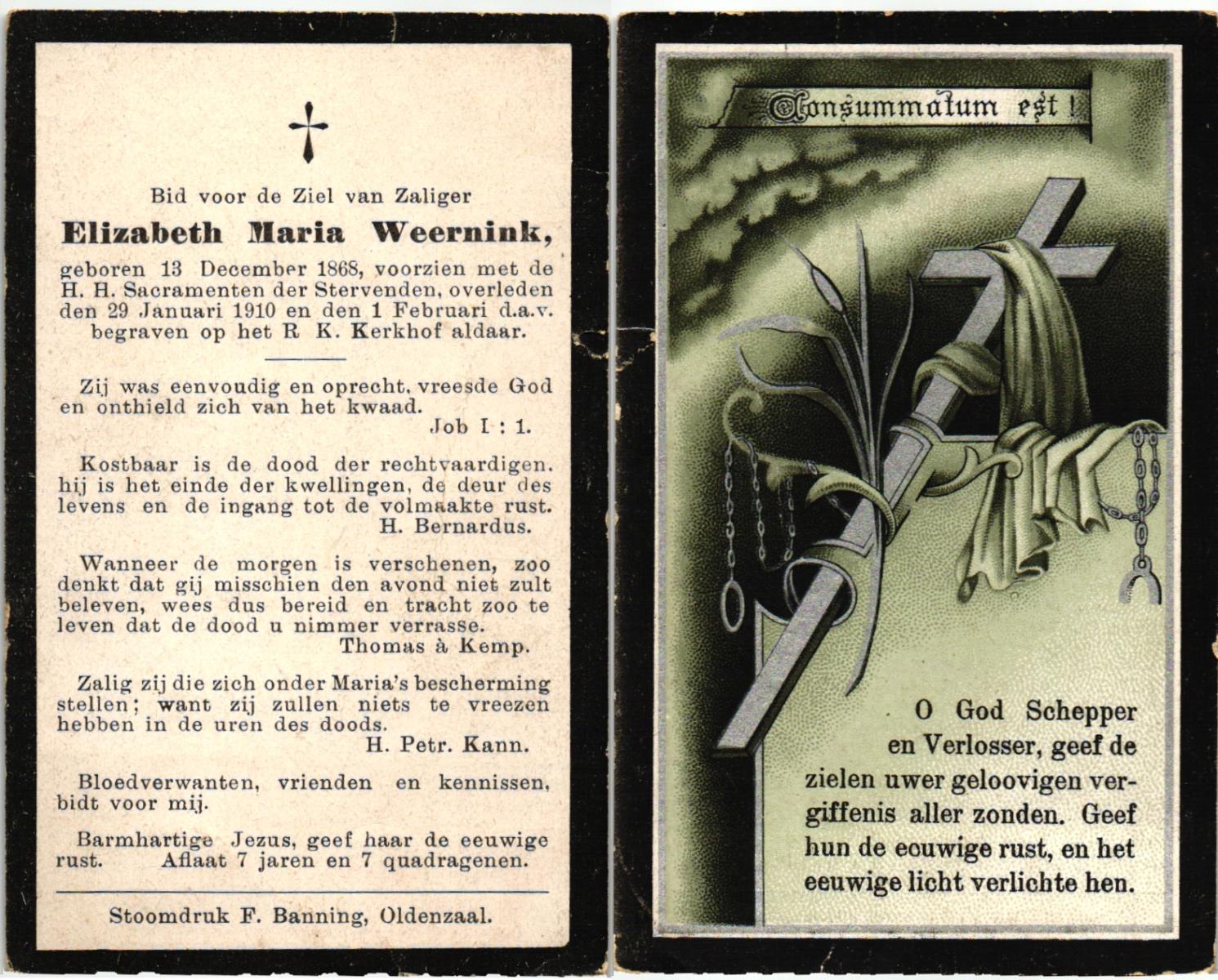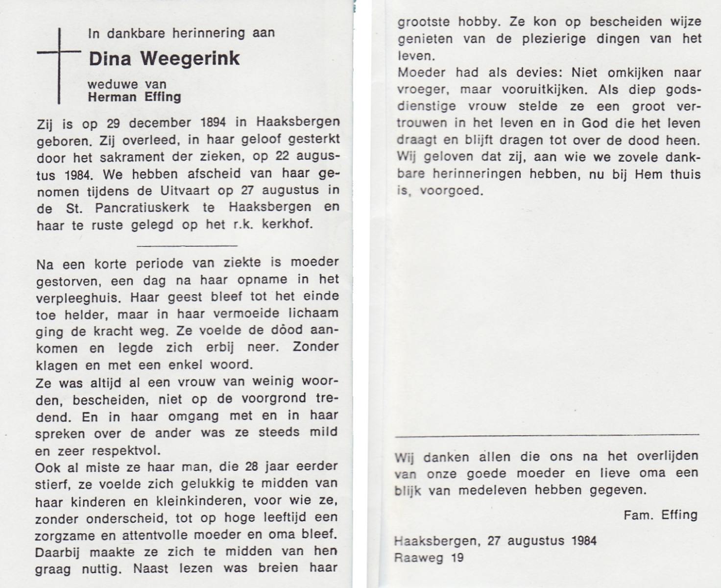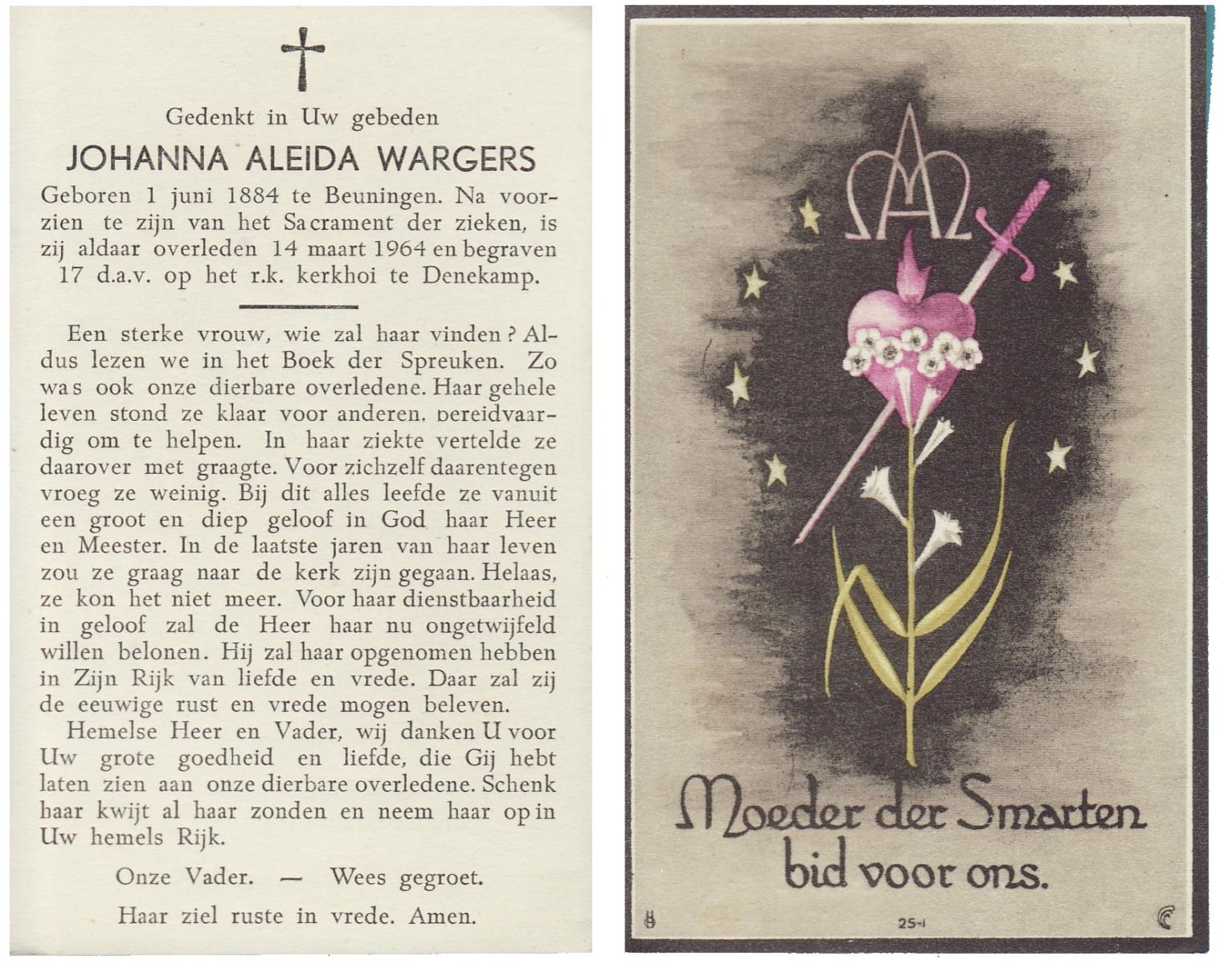 WELLING, Aleida, geboren op 30-08-1880 te Weerselo, overleden op 16-12-1964 te Hengelo (Ov.) op 84-jarige leeftijd, begraven op 19-12-1964 te Hengelo (Ov.).