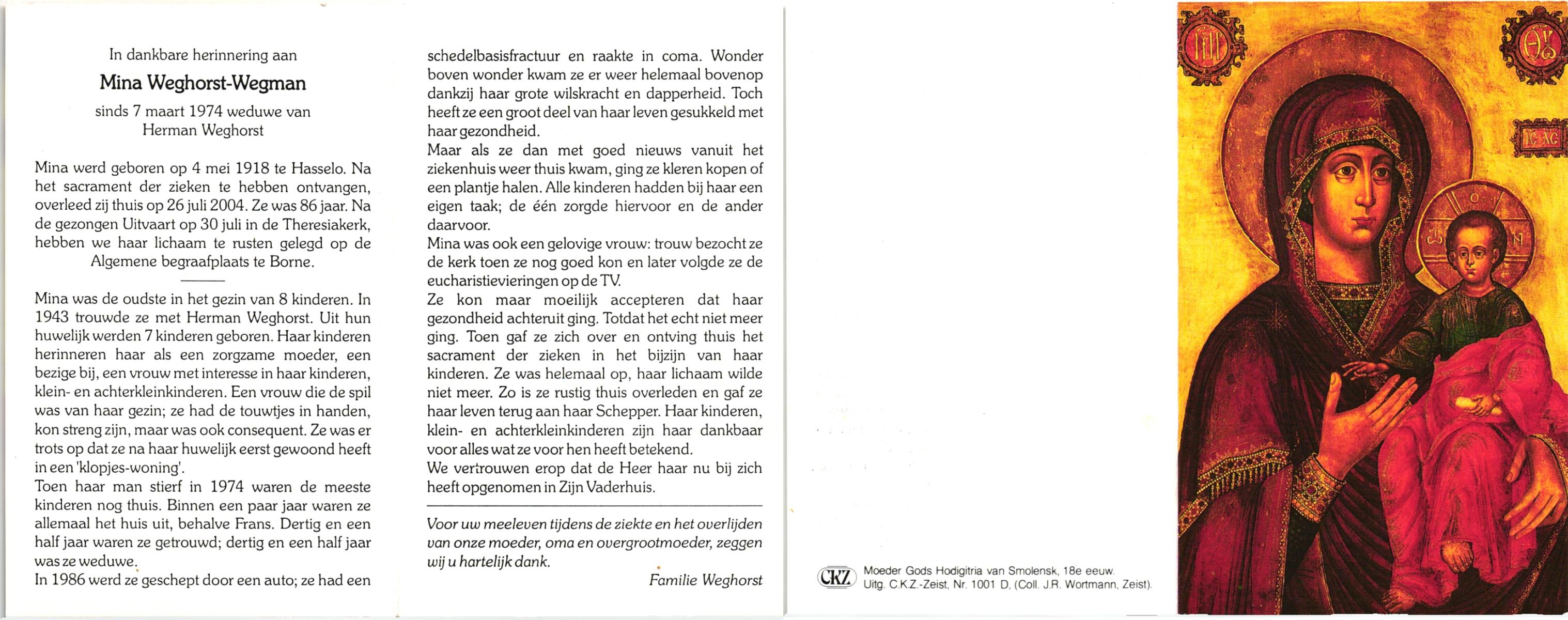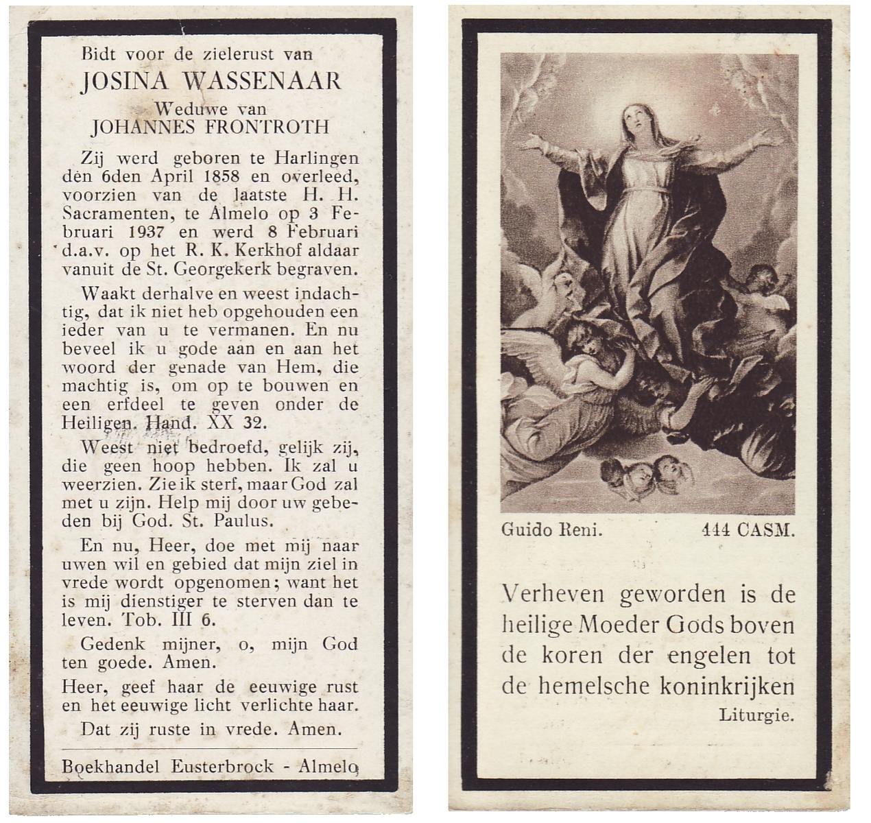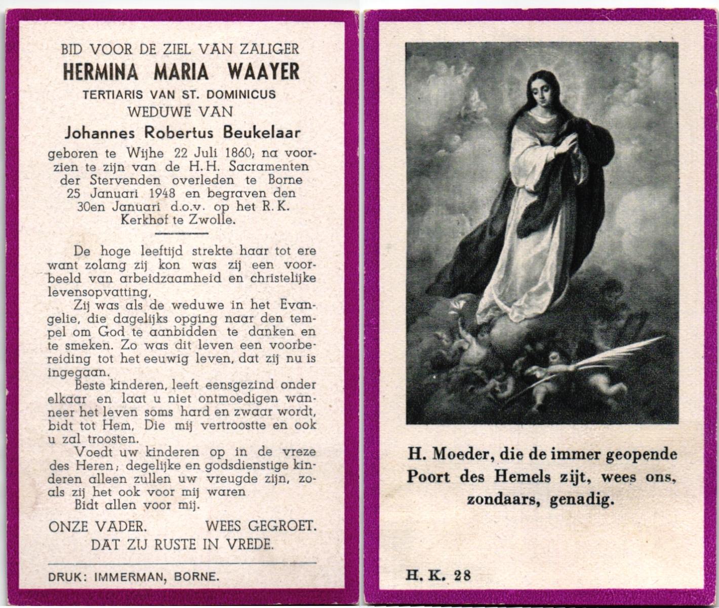 WAAYER, , Hermina Maria, geboren op 22-07-1860 te Wijhe, overleden op 25-1-1948 te Borne op 87-jarige leeftijd, begraven op 30-1-1948 te Zwolle.