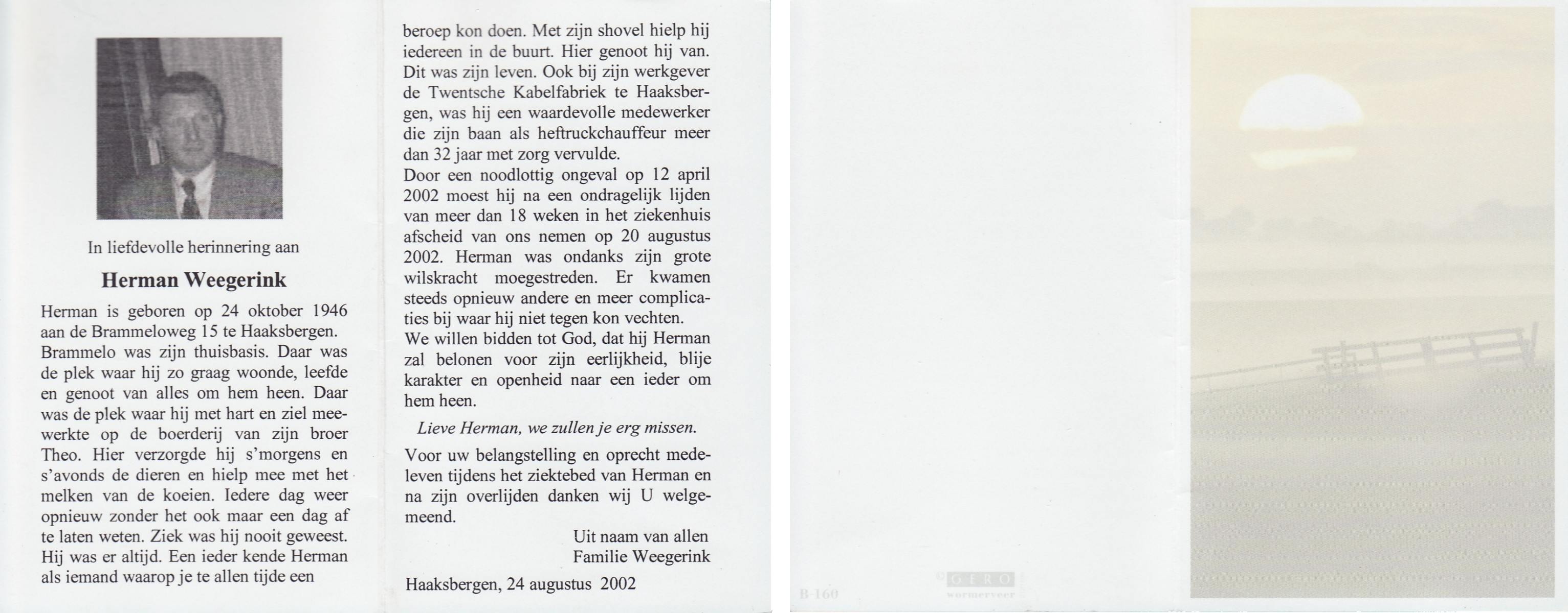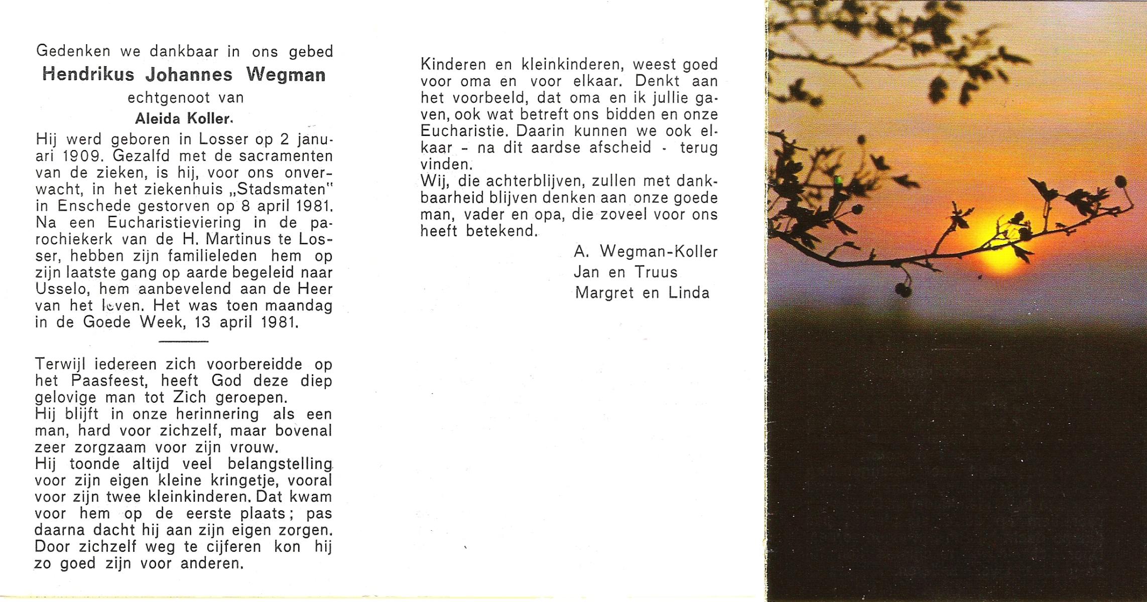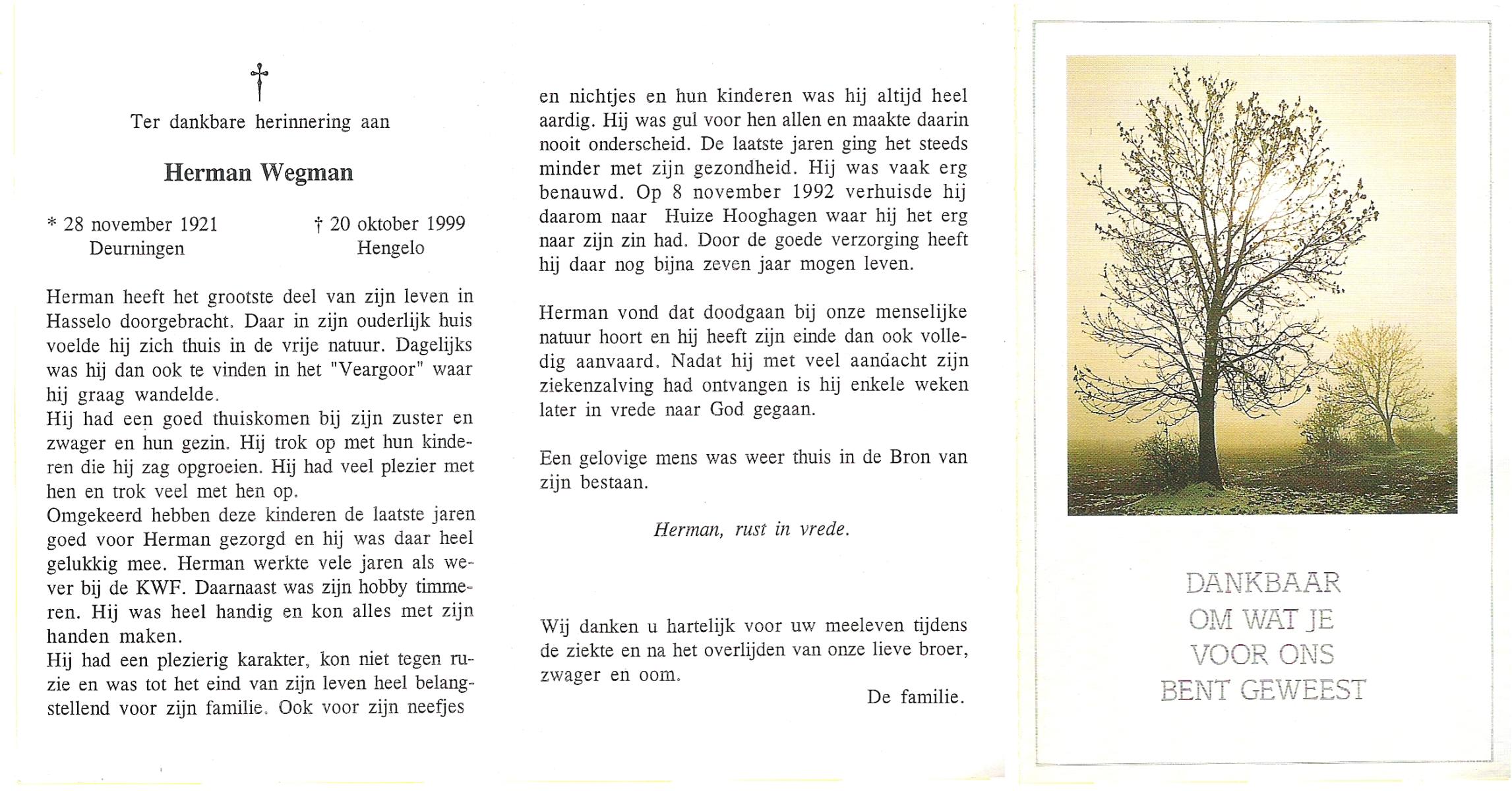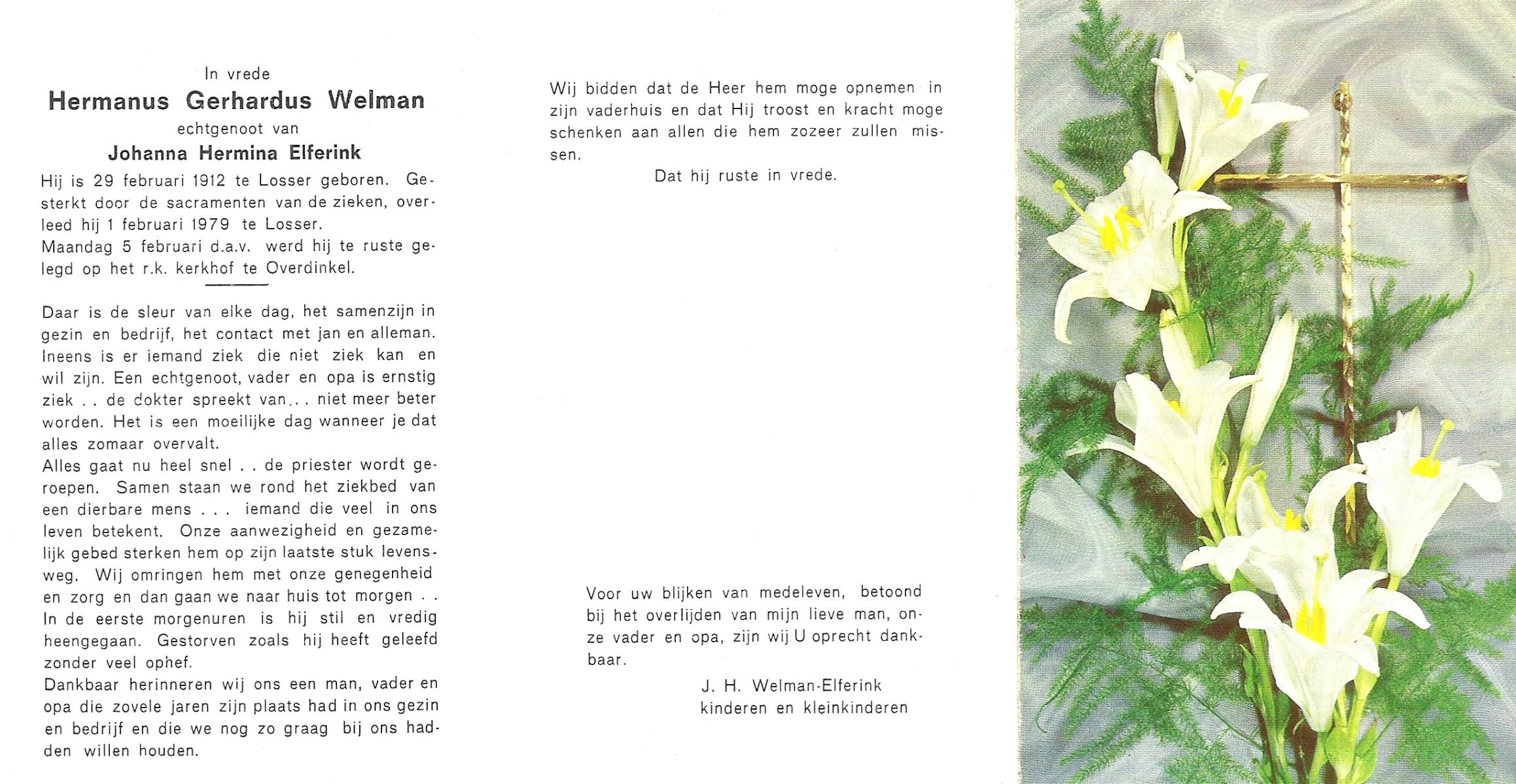 WELMAN, Hermanus Gerhardus, geboren op 29-2-1912 te Losser, overleden op 1-2-1979 te Losser op 66-jarige leeftijd, begraven op 5-2-1979 te Overdinkel.