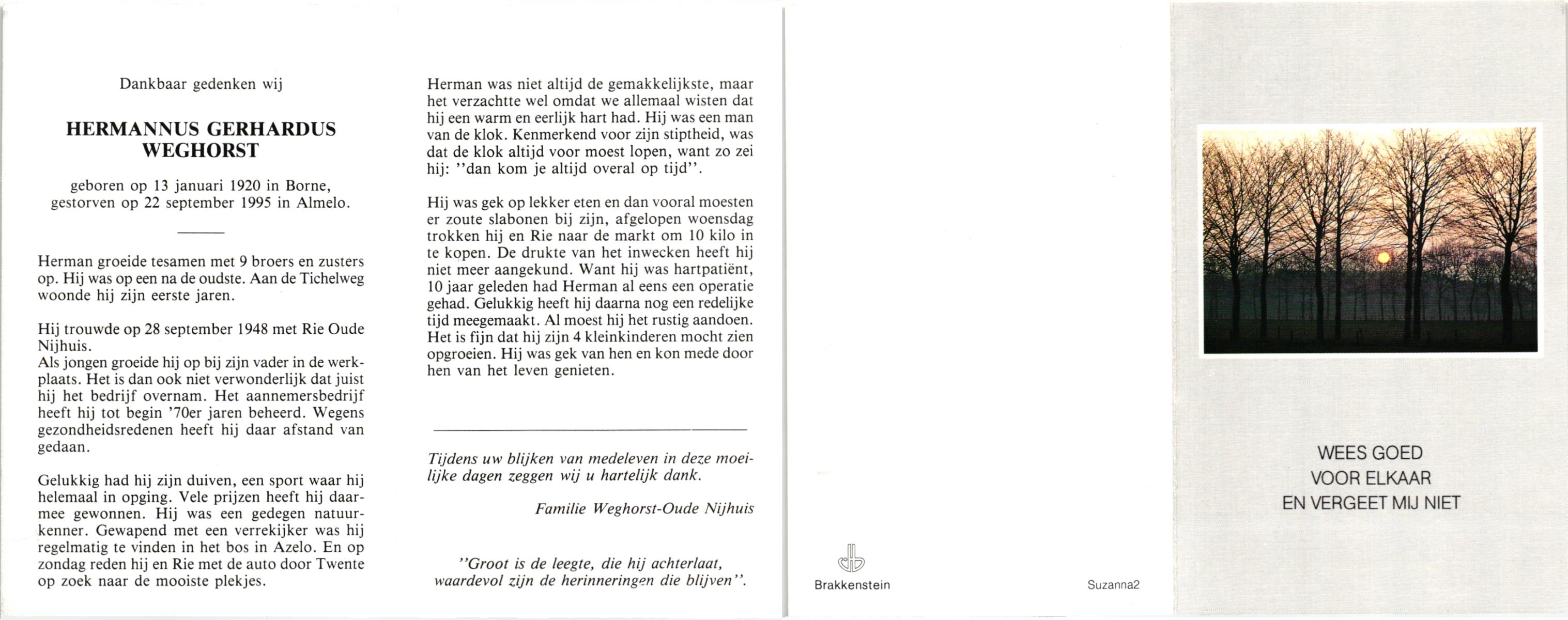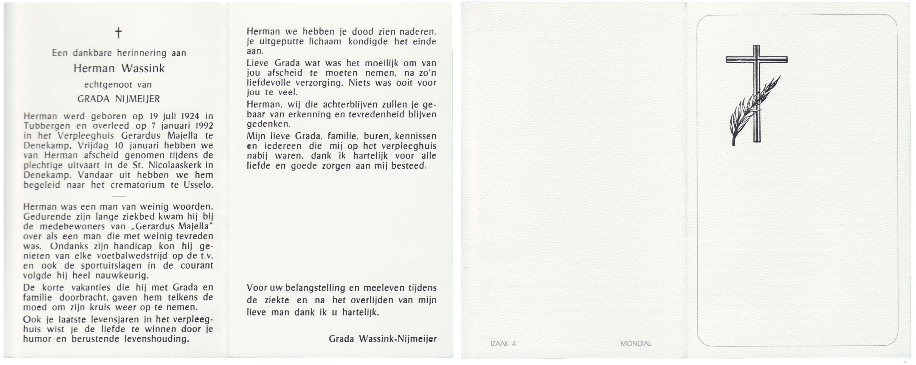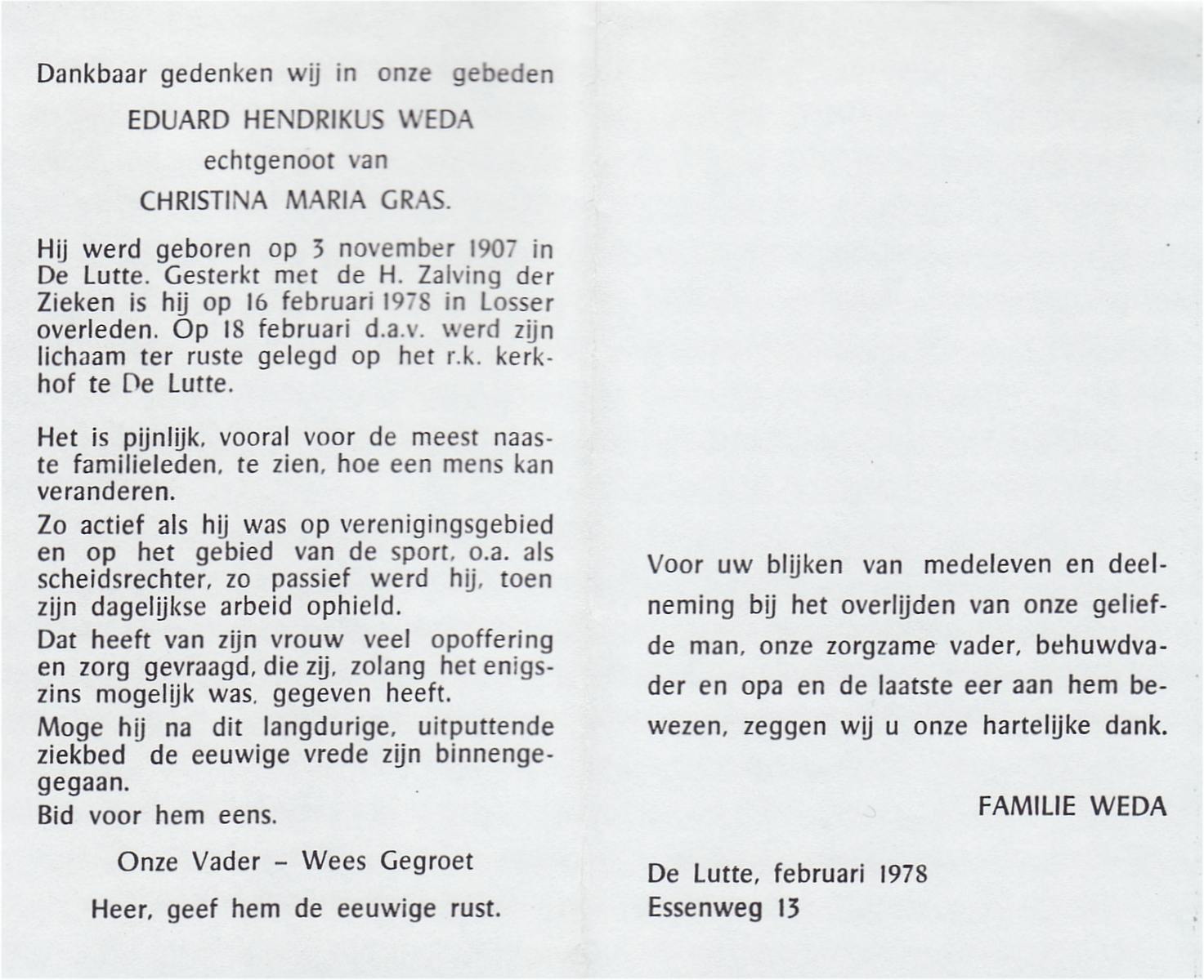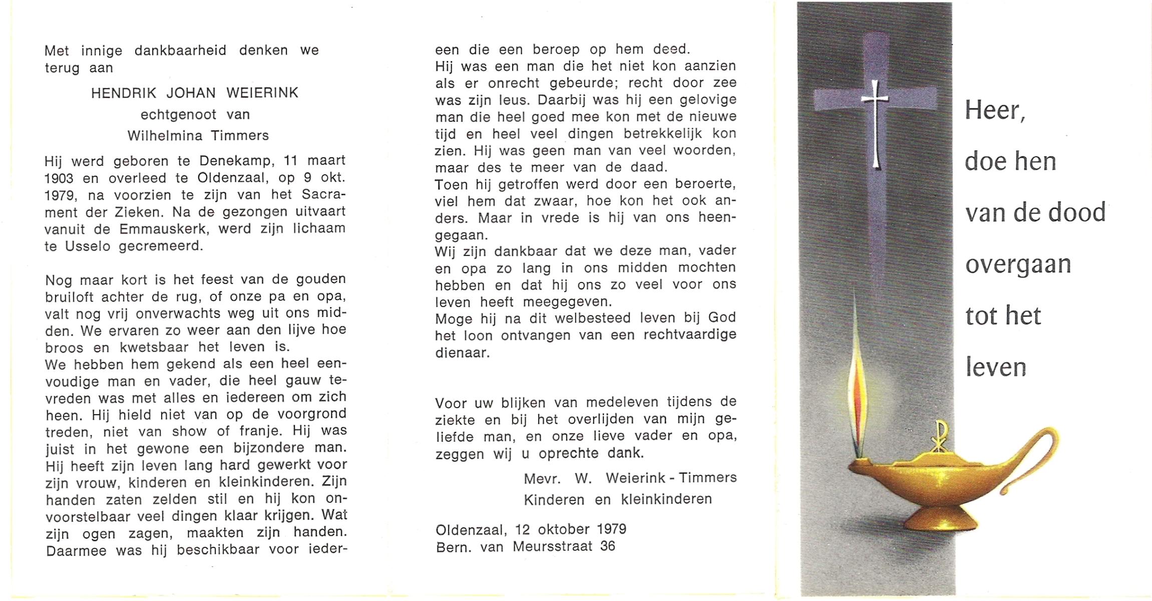 WELMAN, Hermanus Gerhardus, geboren op 29-2-1912 te Losser, overleden op 1-2-1979 te Losser op 66-jarige leeftijd, begraven op 5-2-1979 te Overdinkel.