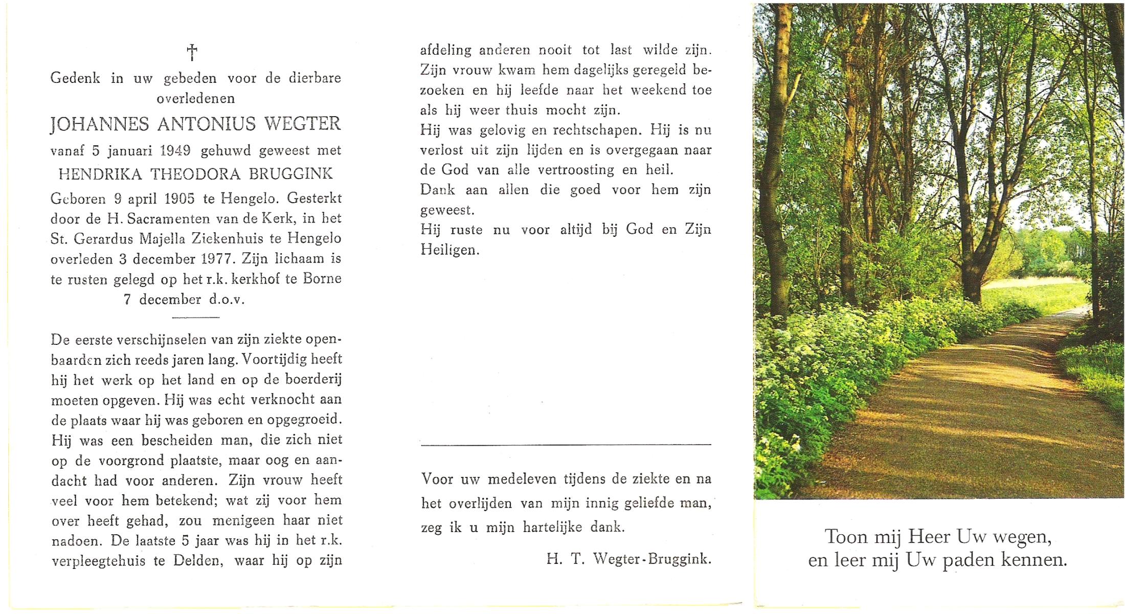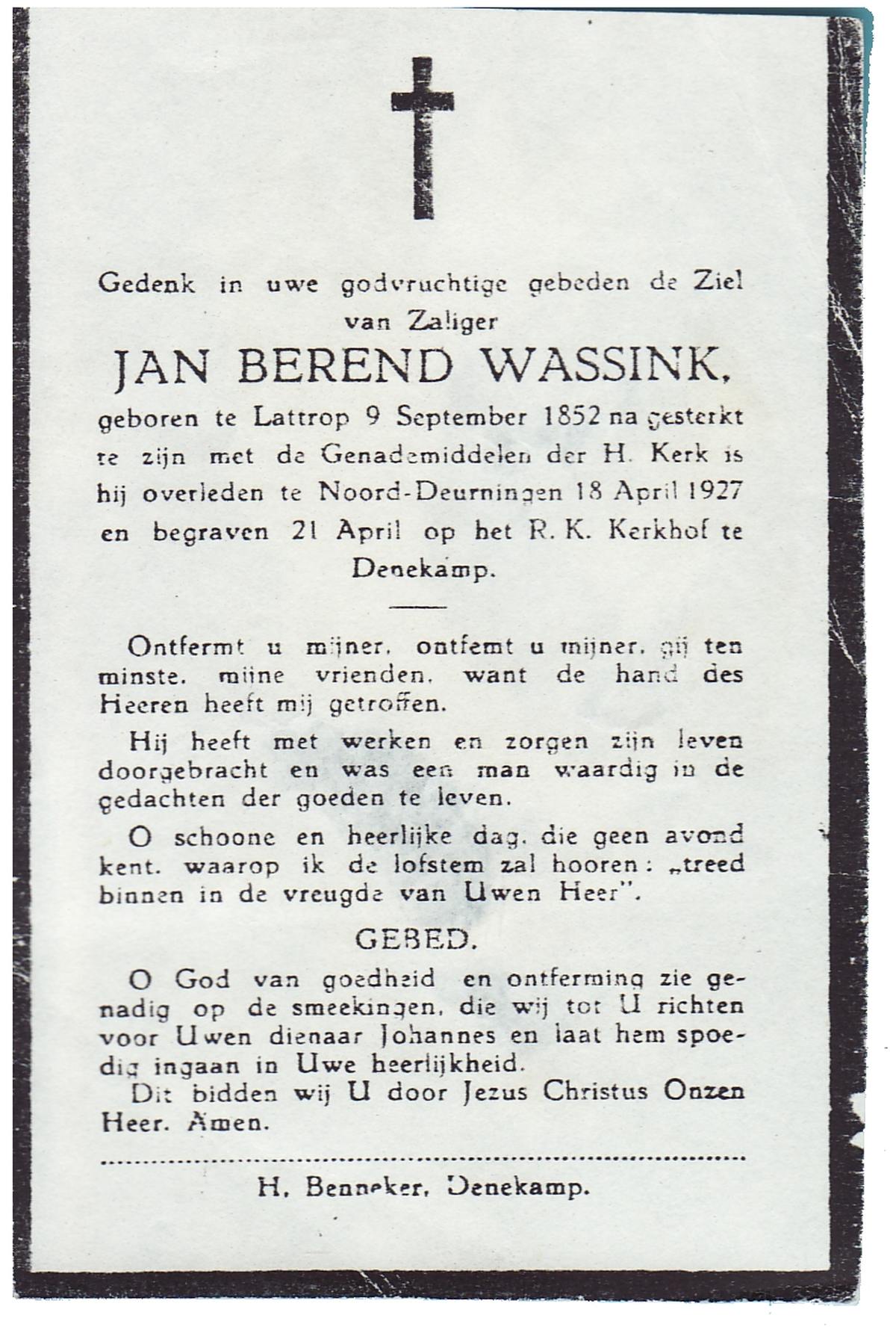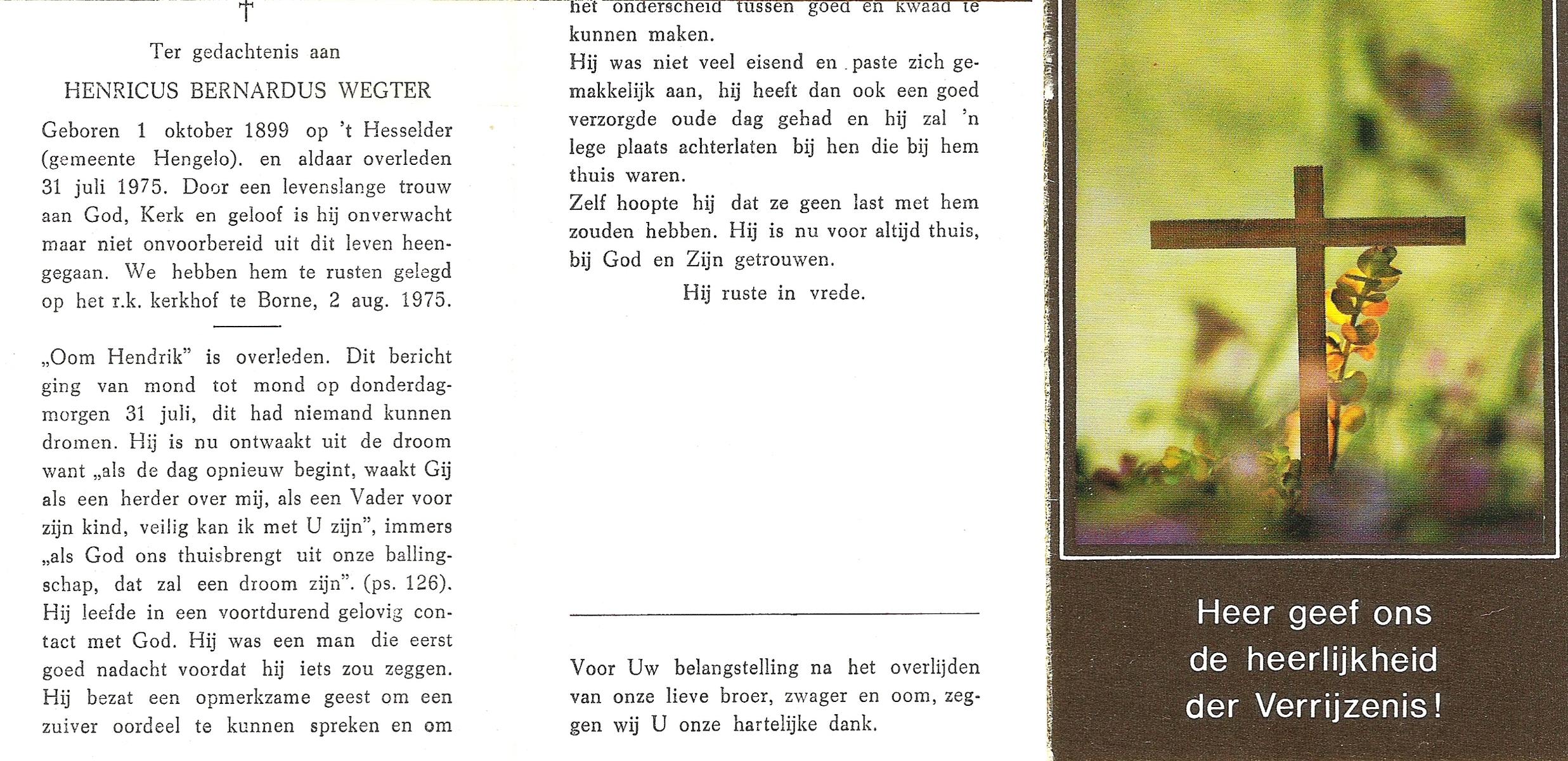 WENDER, , Johannes, geboren op 15-1-1900 te Wierden, overleden op 7-7-1975 te Hengelo (O) op 75-jarige leeftijd, begraven op 11-7-1975 te Bornerbroek.