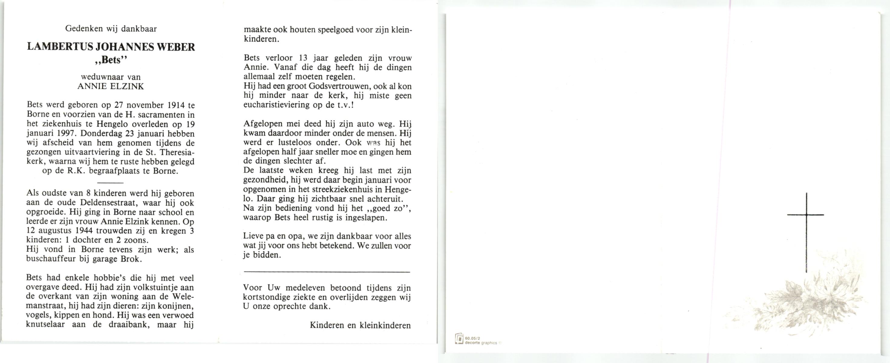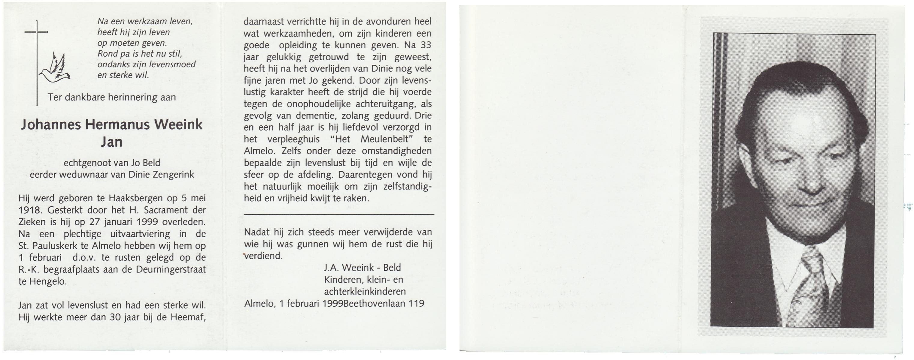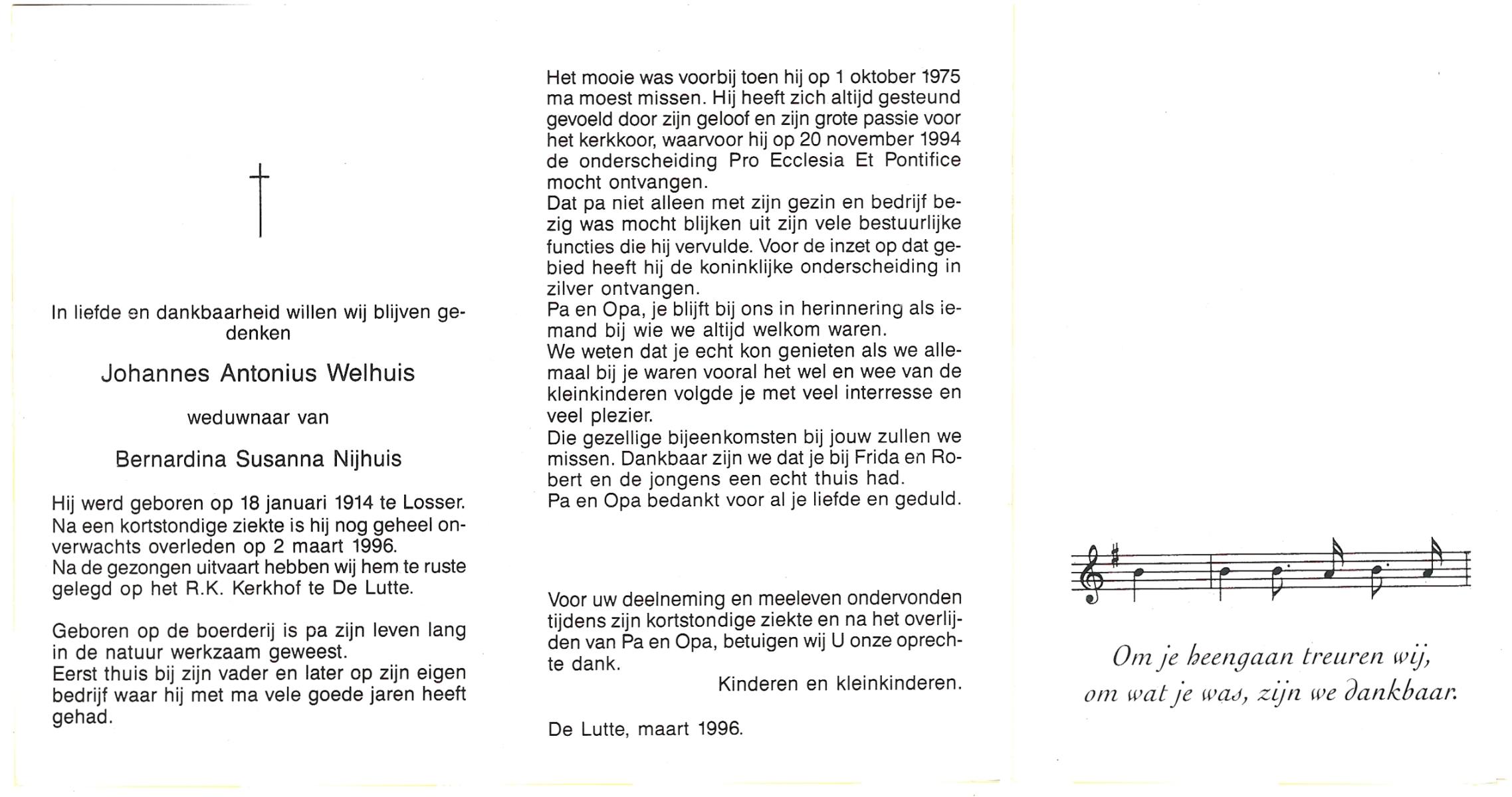 WELHUIS, Johannes Antonius, geboren op 18-1-1914 te Losser, overleden op 2-3-1996 op 82-jarige leeftijd, begraven te De Lutte.