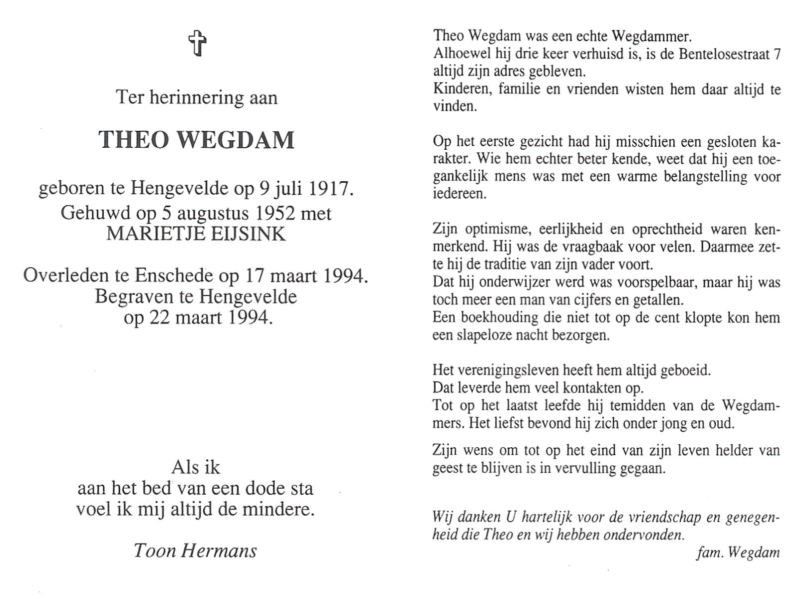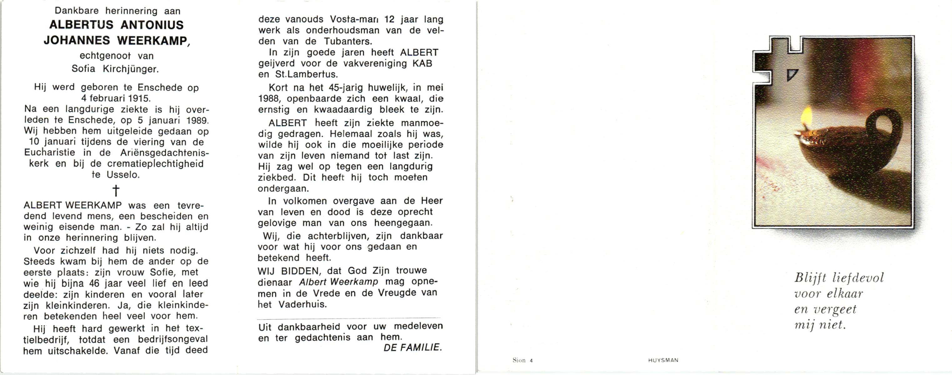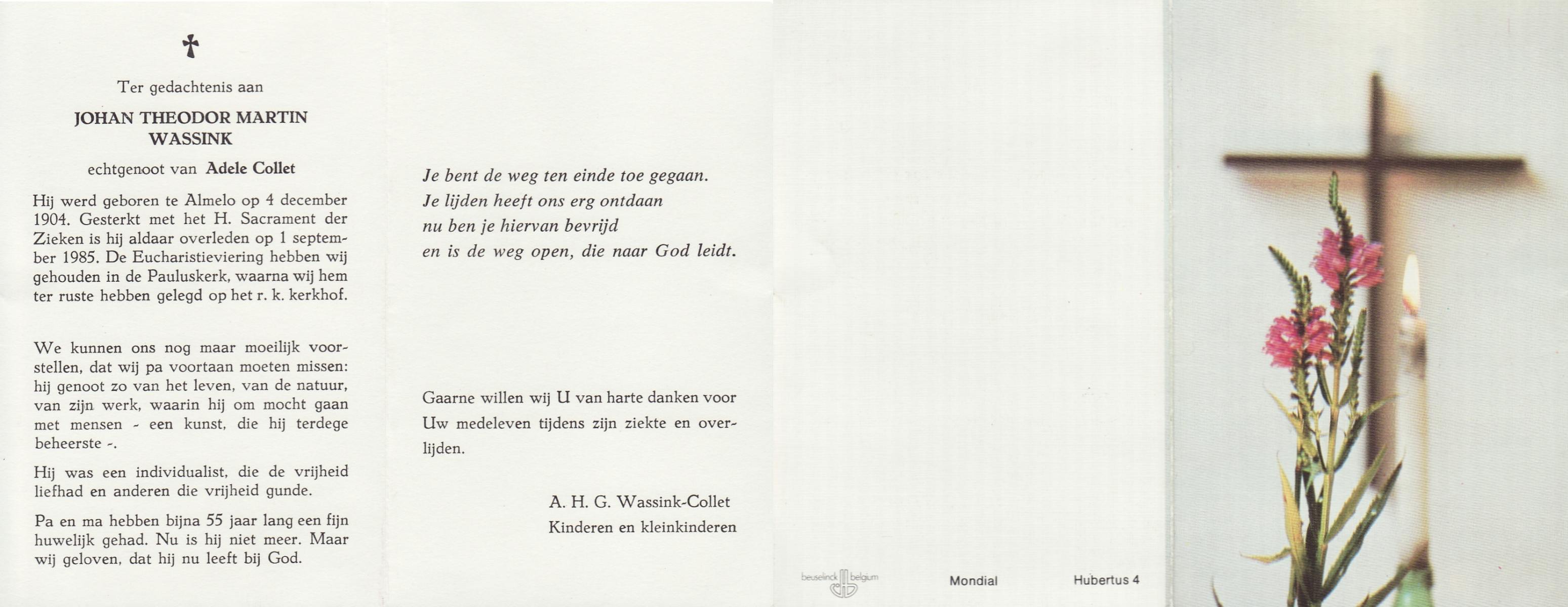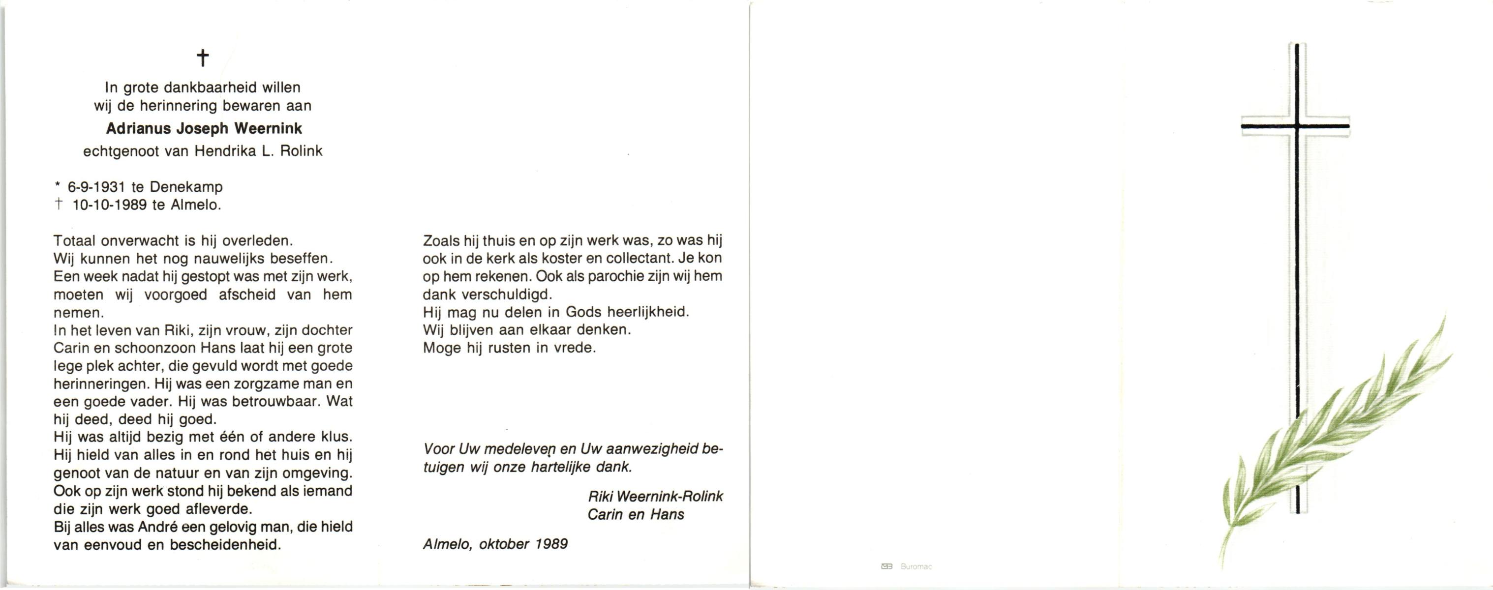 WELHUIS, Johannes Antonius, geboren op 18-1-1914 te Losser, overleden op 2-3-1996 op 82-jarige leeftijd, begraven te De Lutte.