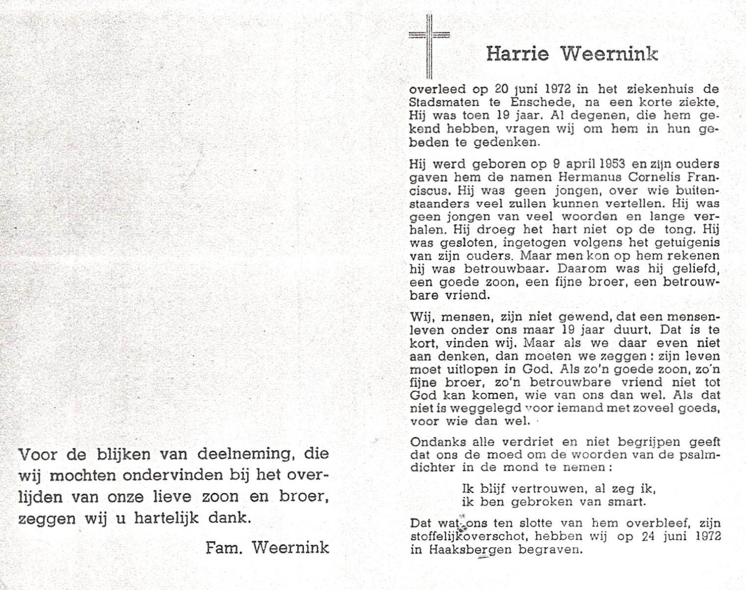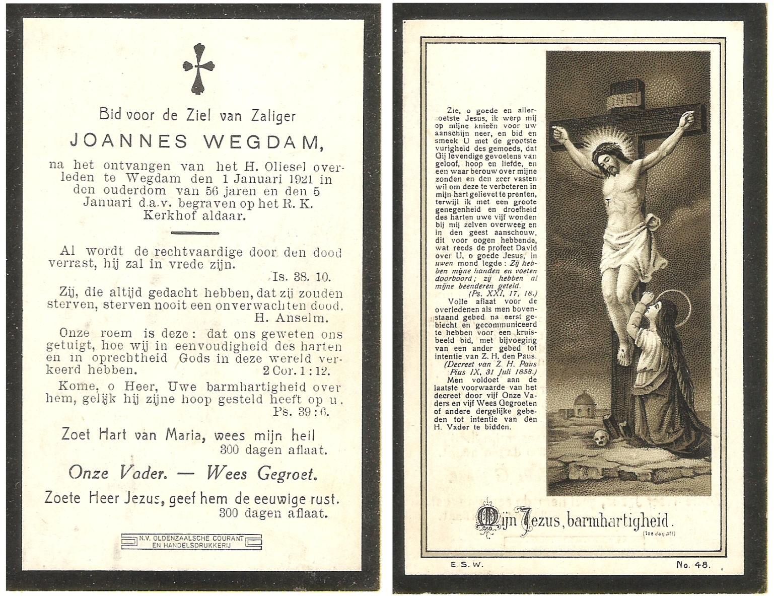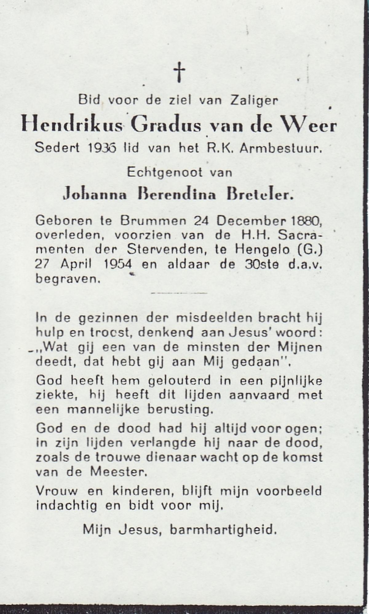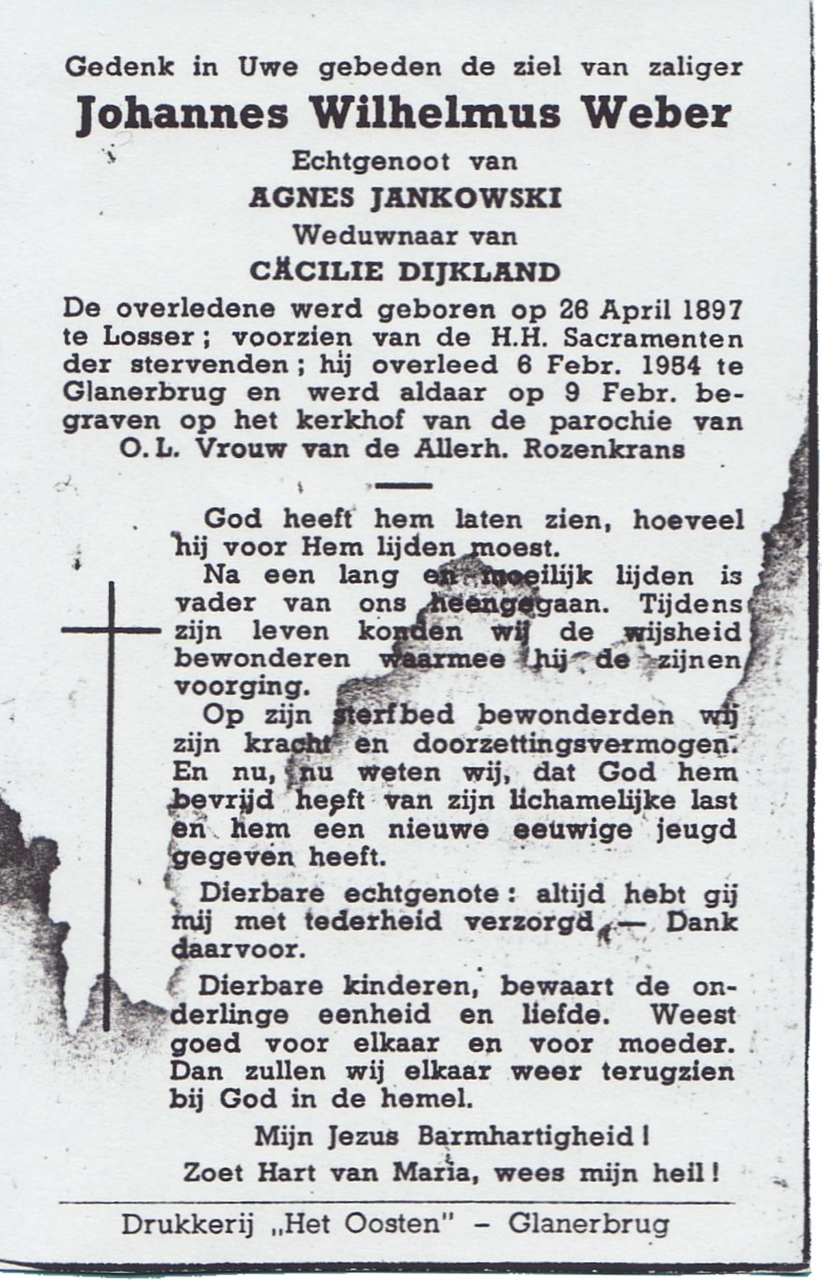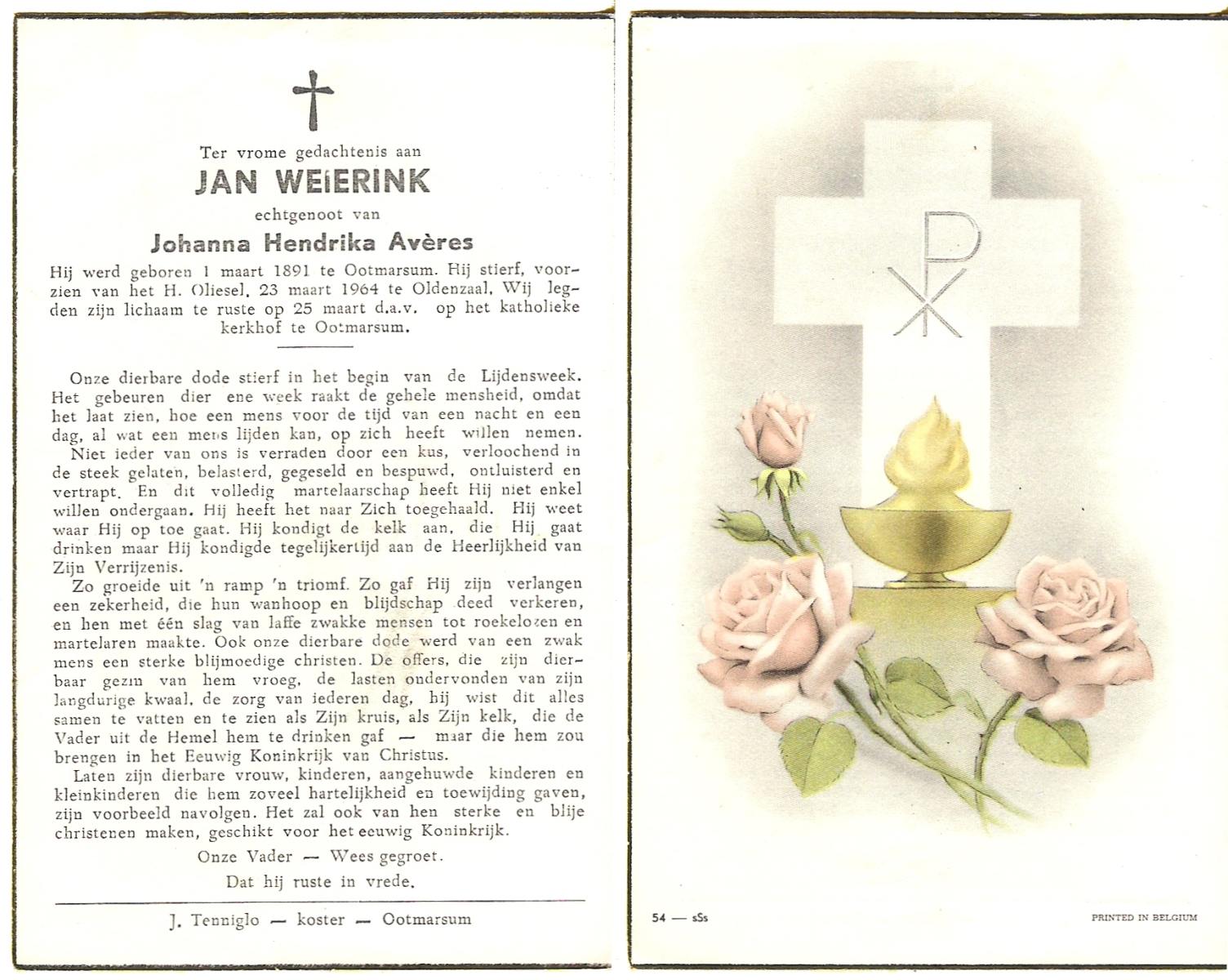 WELMAN, Jan, geboren op 30-11-1881 te Lonneker, overleden op 7-6-1954 te Weerselo op 72-jarige leeftijd, begraven op 10-6-1954 te Weerselo.