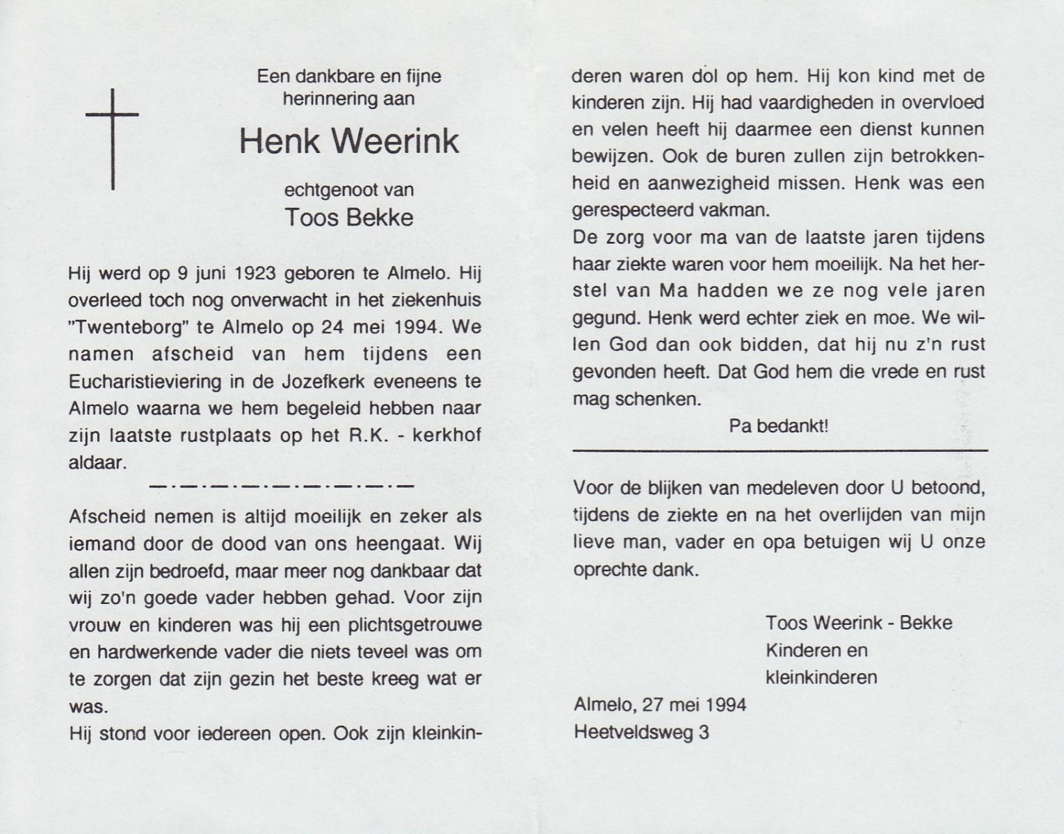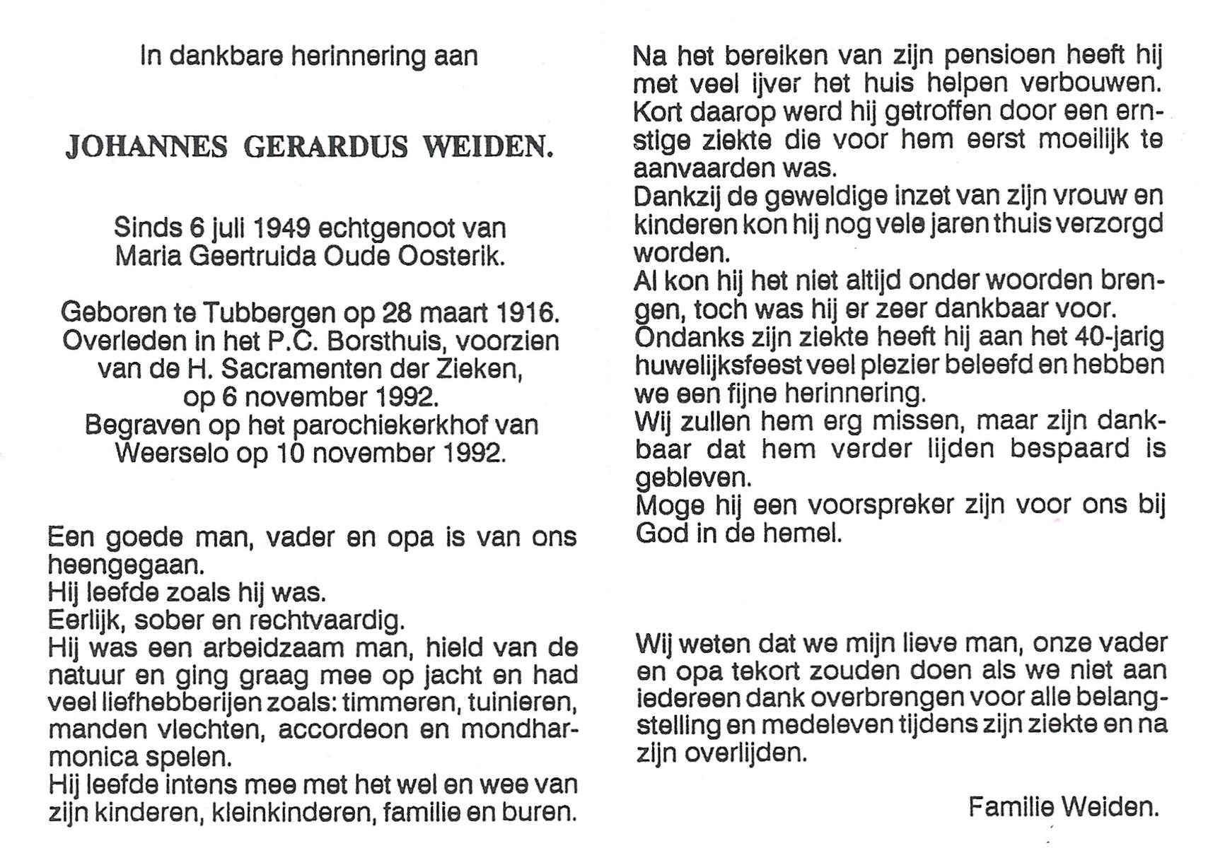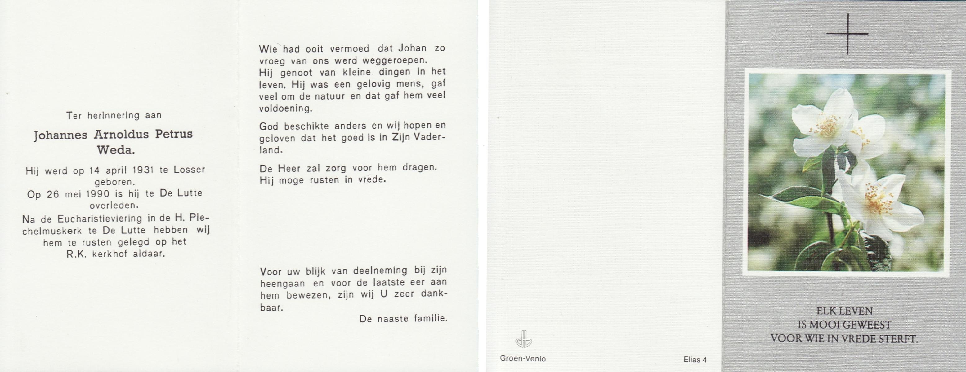 WELPELO, Hendrikus Johannes, geboren op 18-5-1937 te Overdinkel, overleden op 12-6-1990 te Enschede op 53-jarige leeftijd, begraven op 16-6-1990 te Overdinkel.