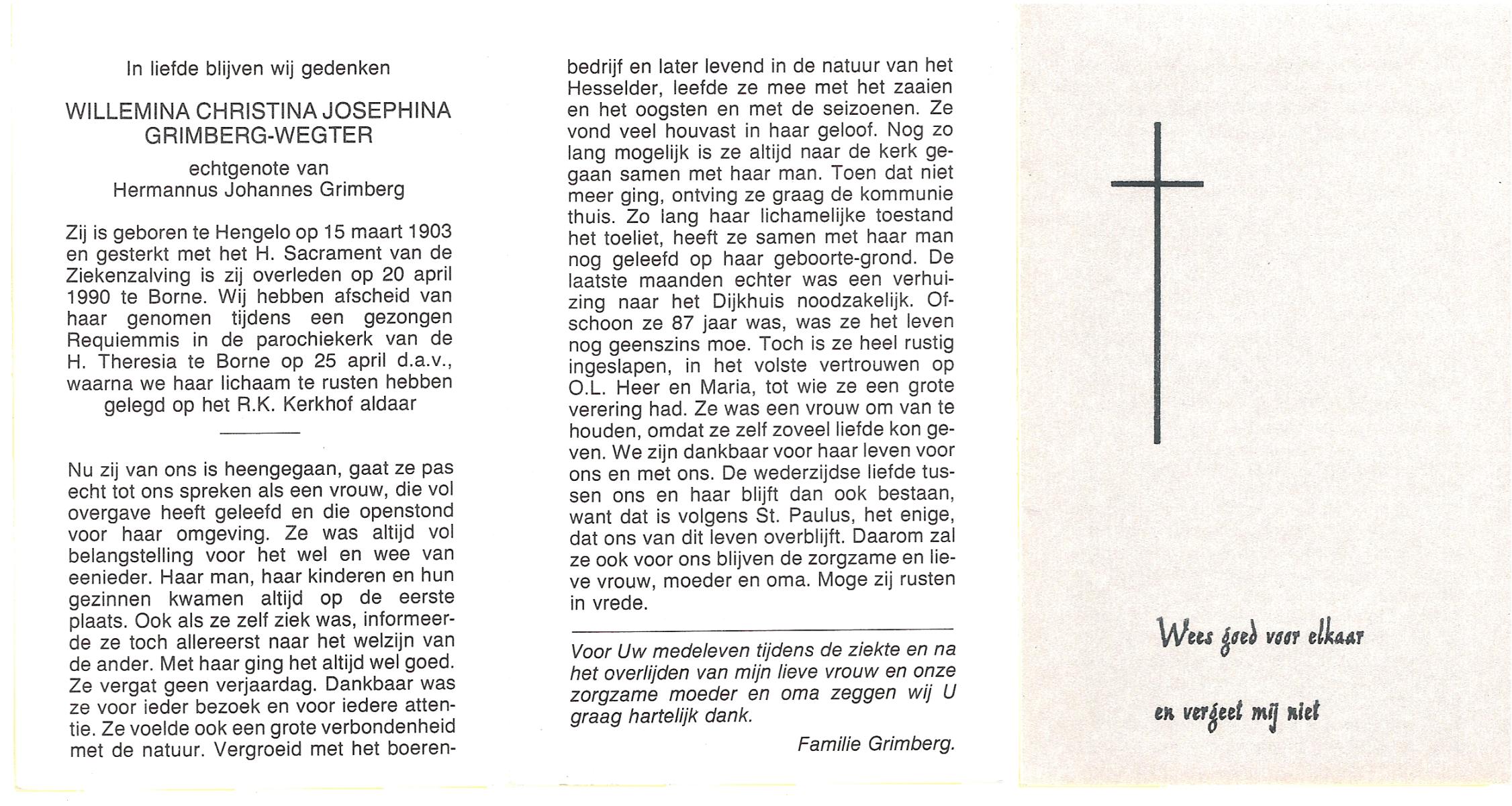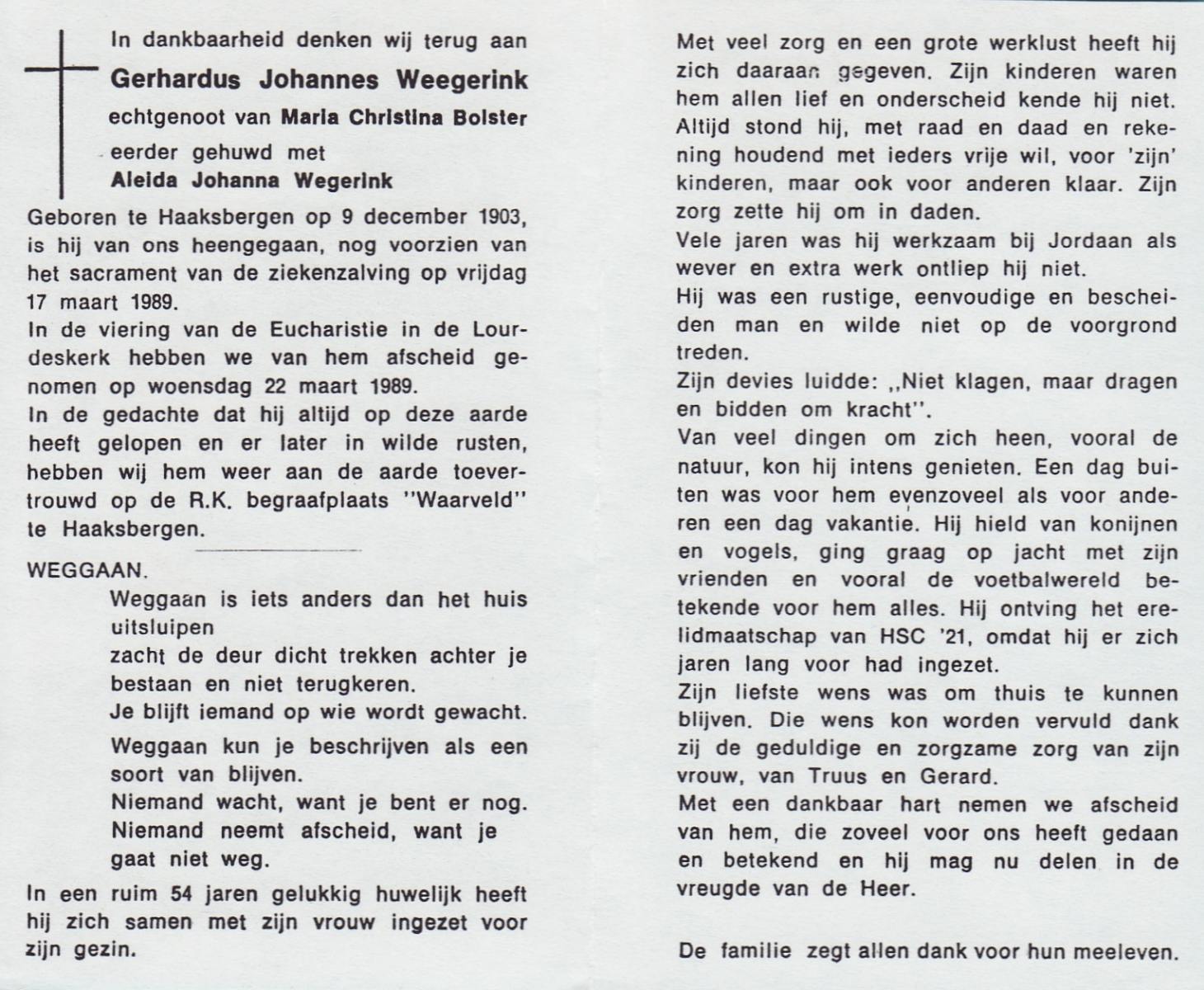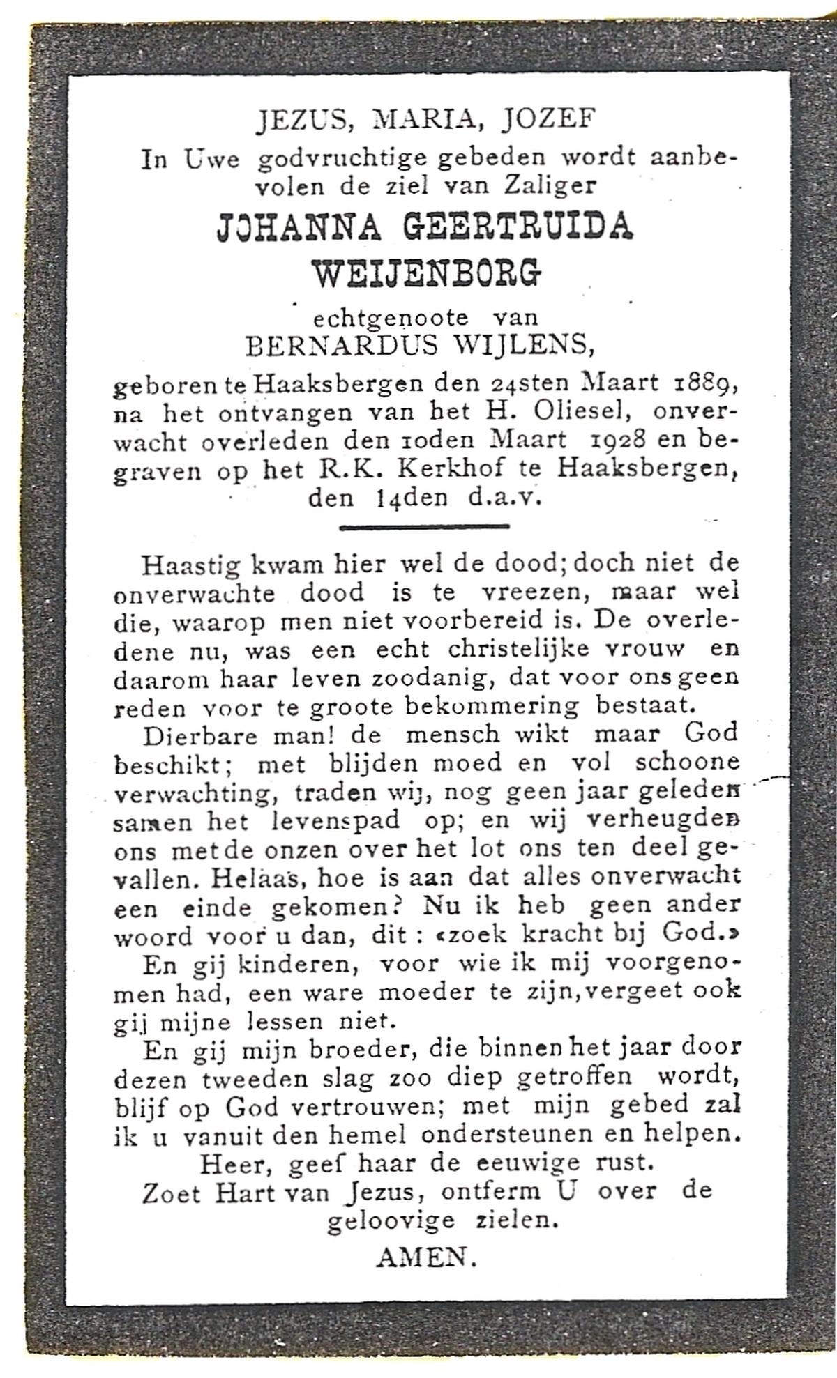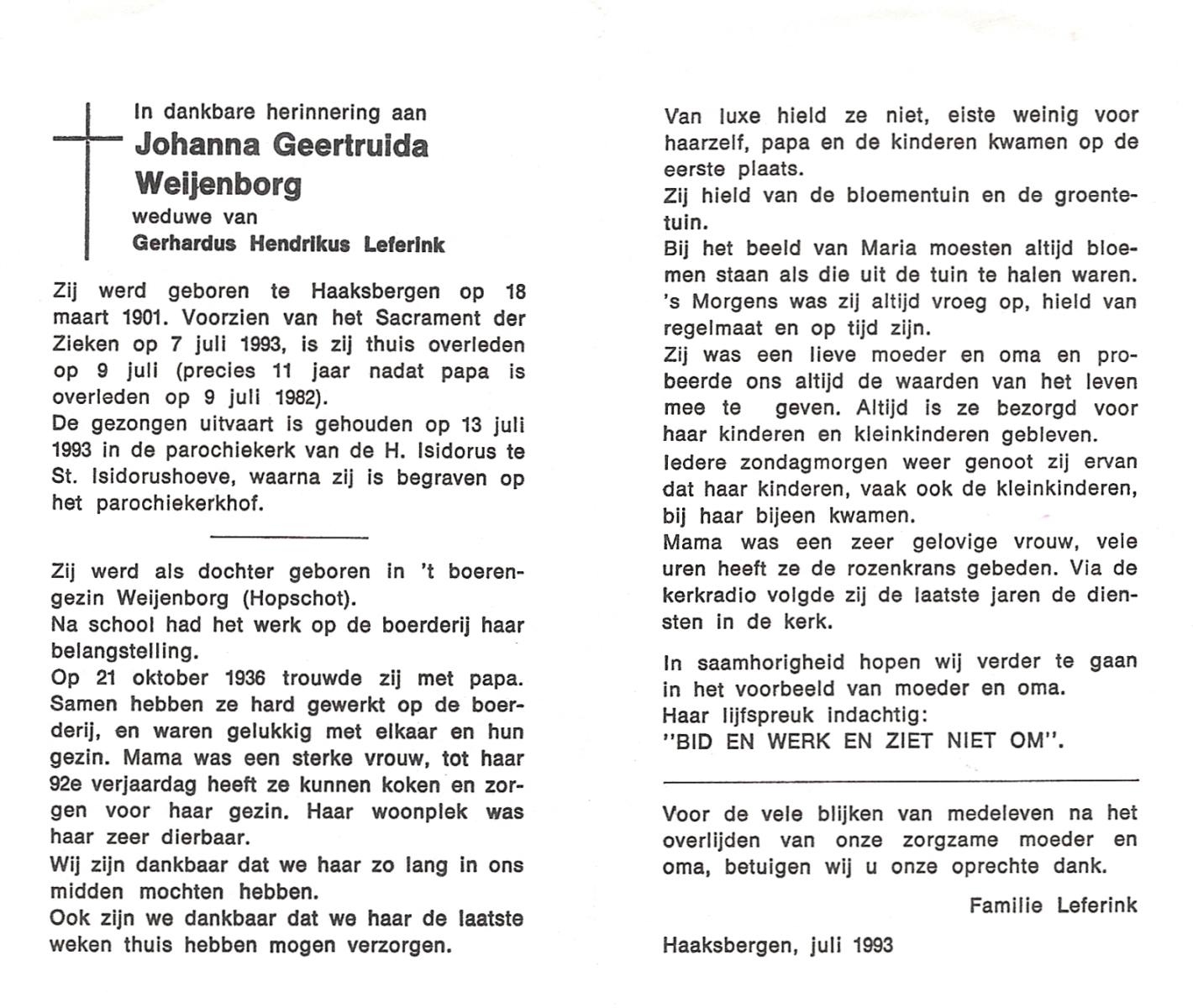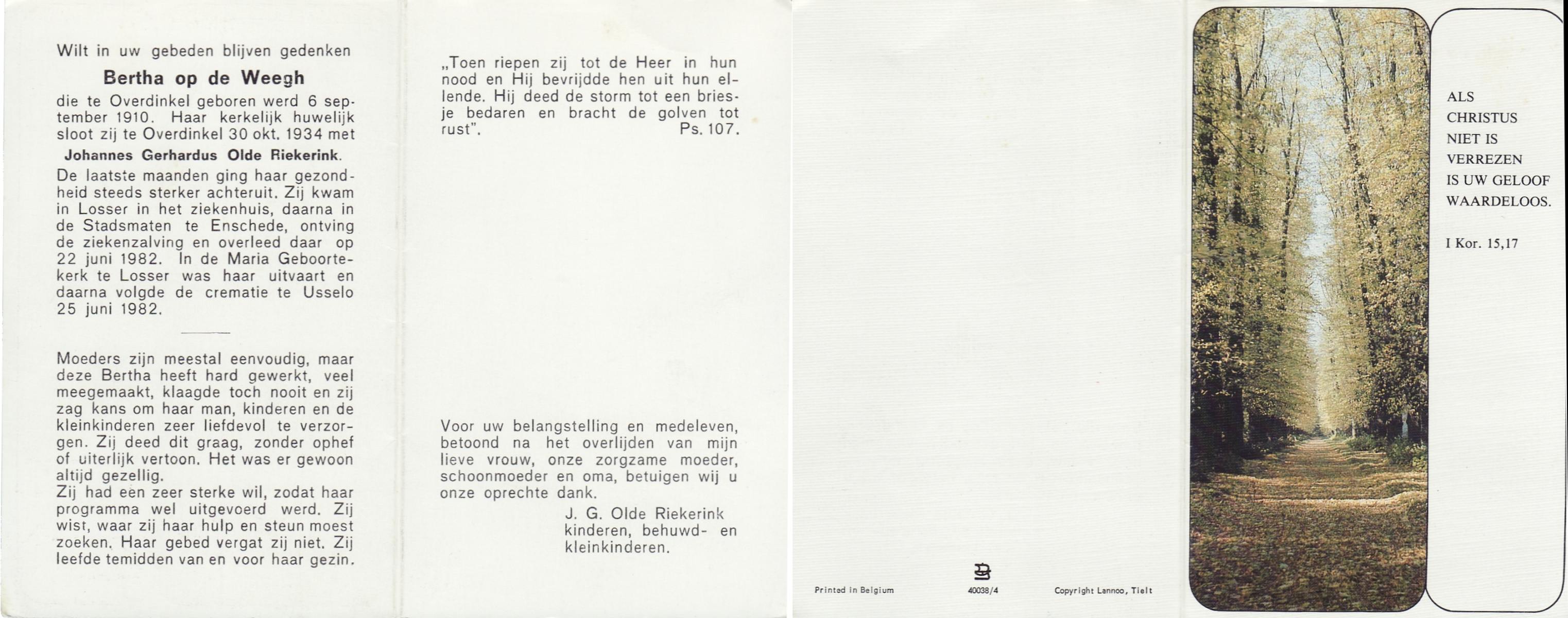 WELPELO, Johanna Geertruida Maria, geboren op 19-5-1902 te Overdinkel, overleden op 20-9-1989 op 87-jarige leeftijd, begraven op 26-9-1989 te Overdinkel.