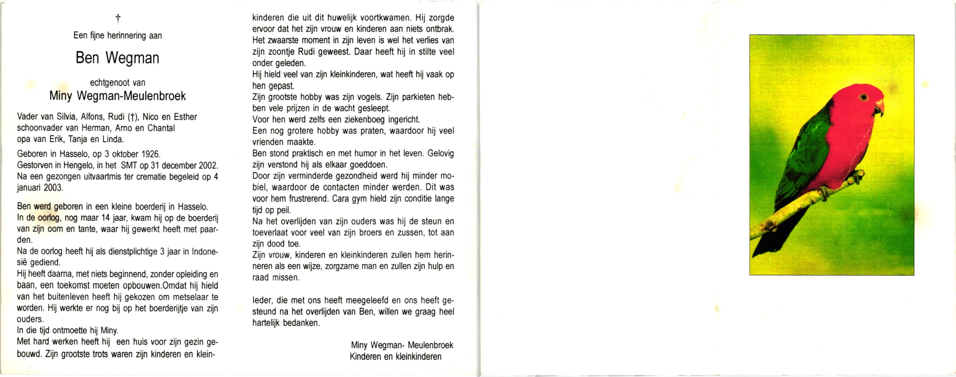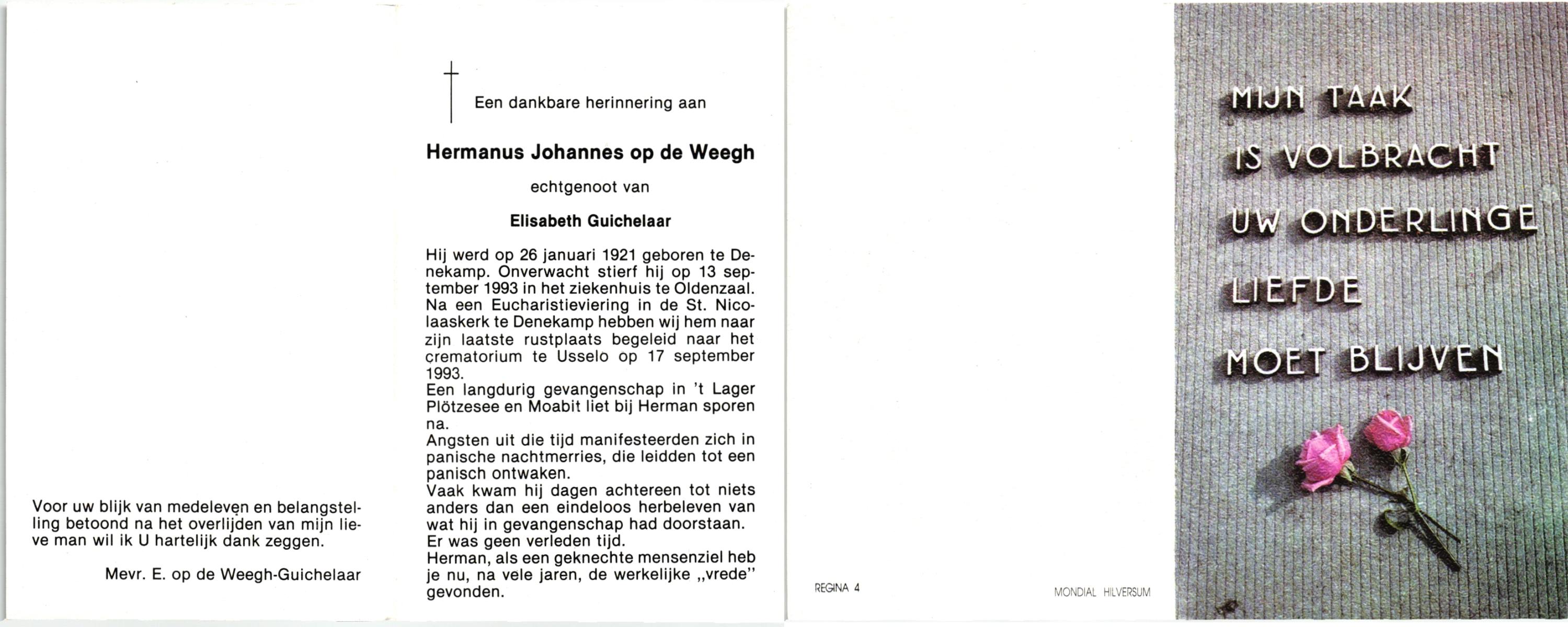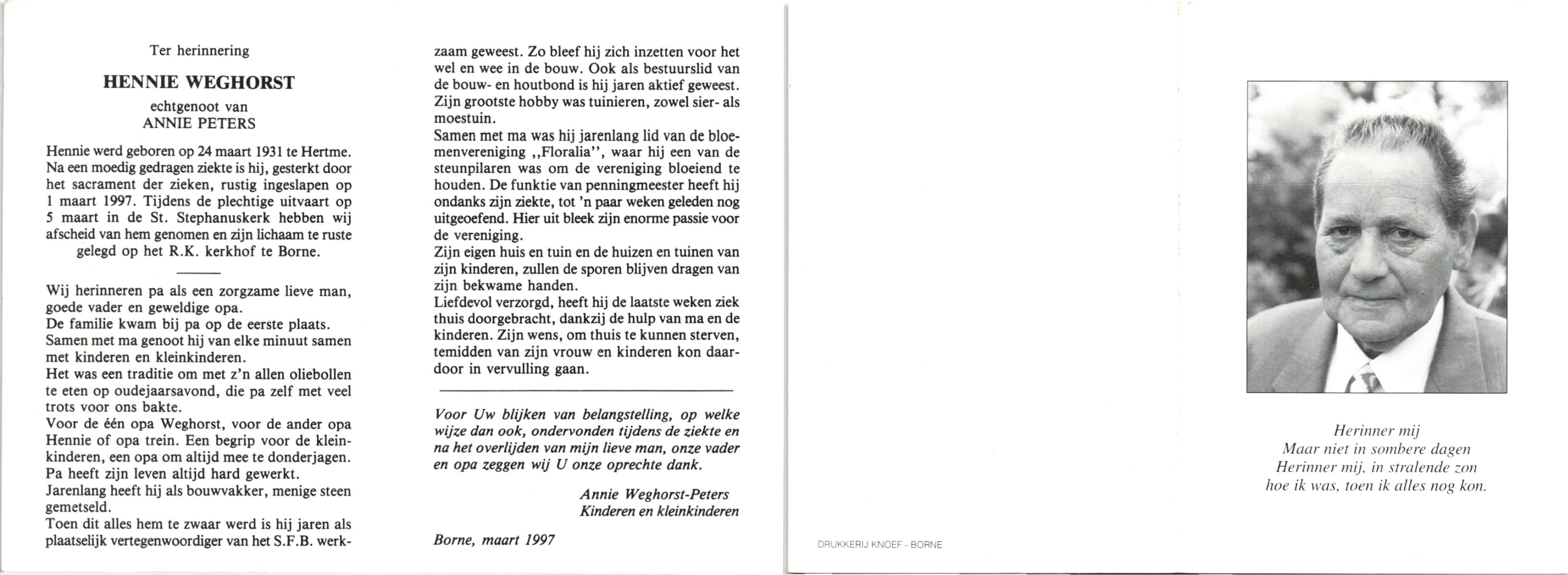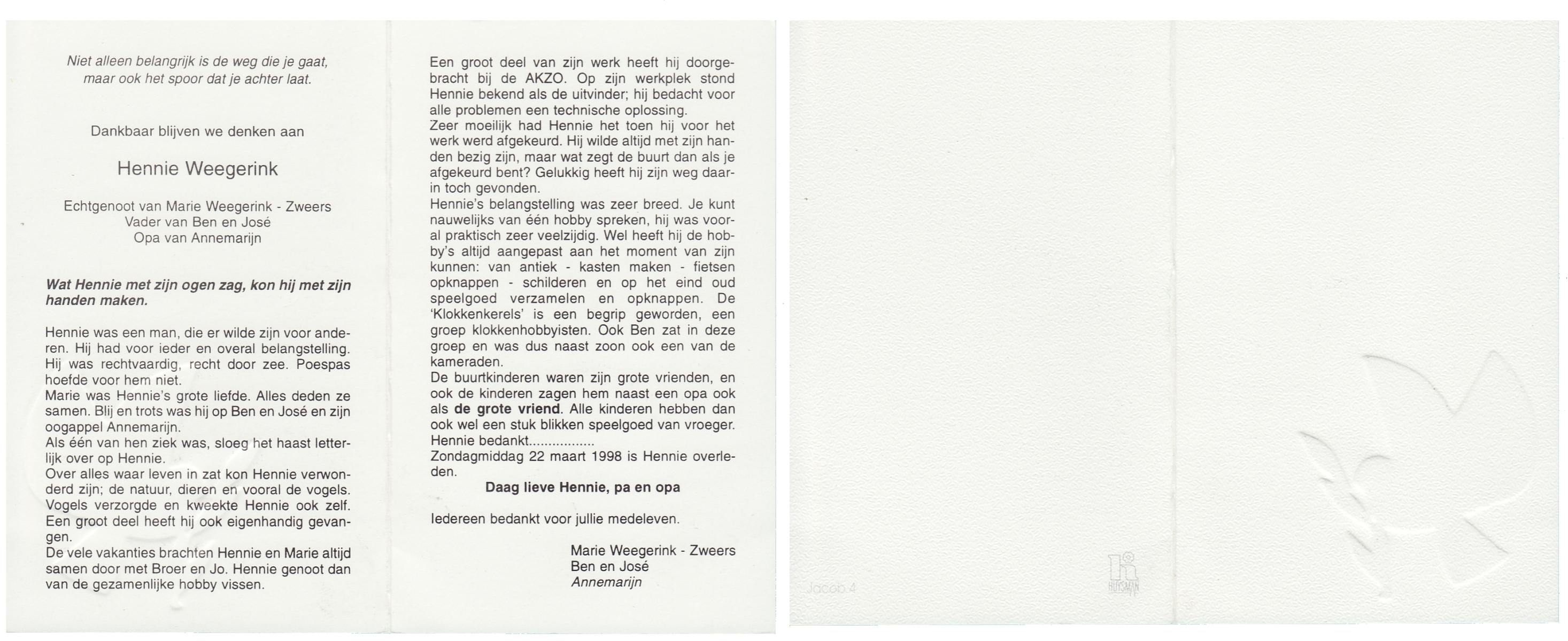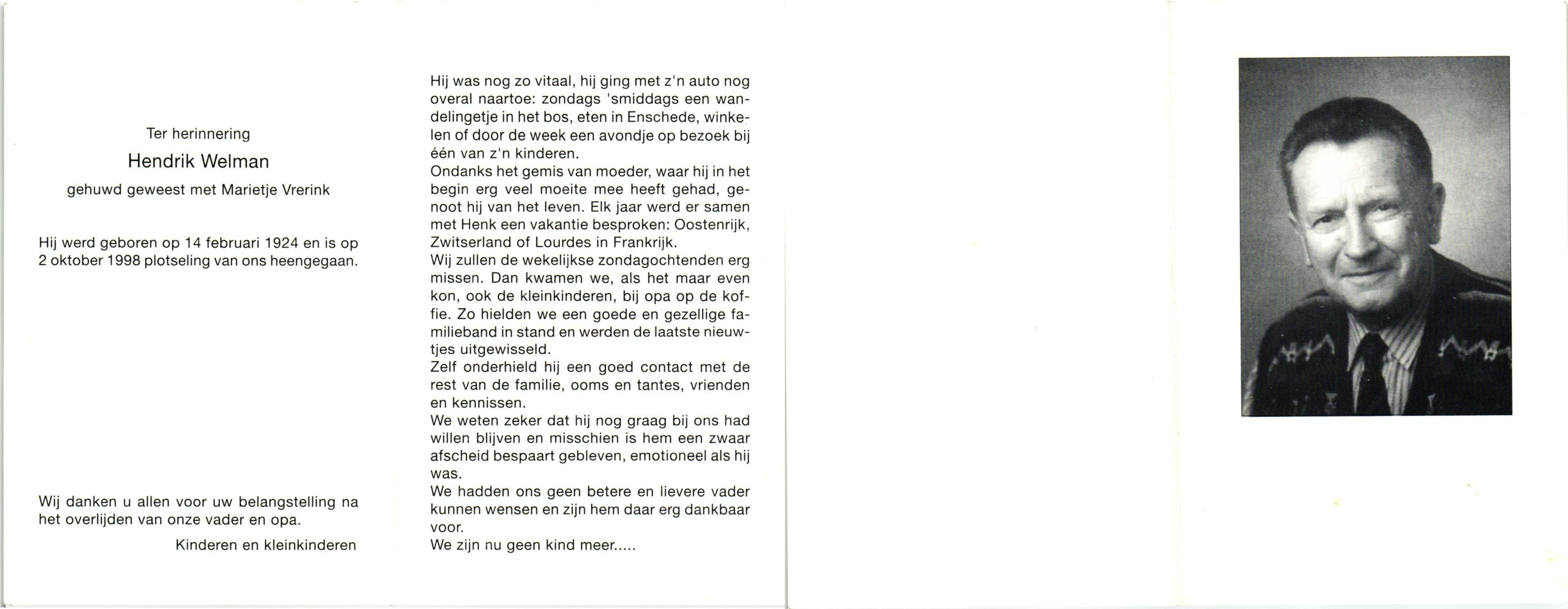 WELMAN, Hendrik, geboren op 14-2-1924, overleden op 2-10-1998 op 74-jarige leeftijd.