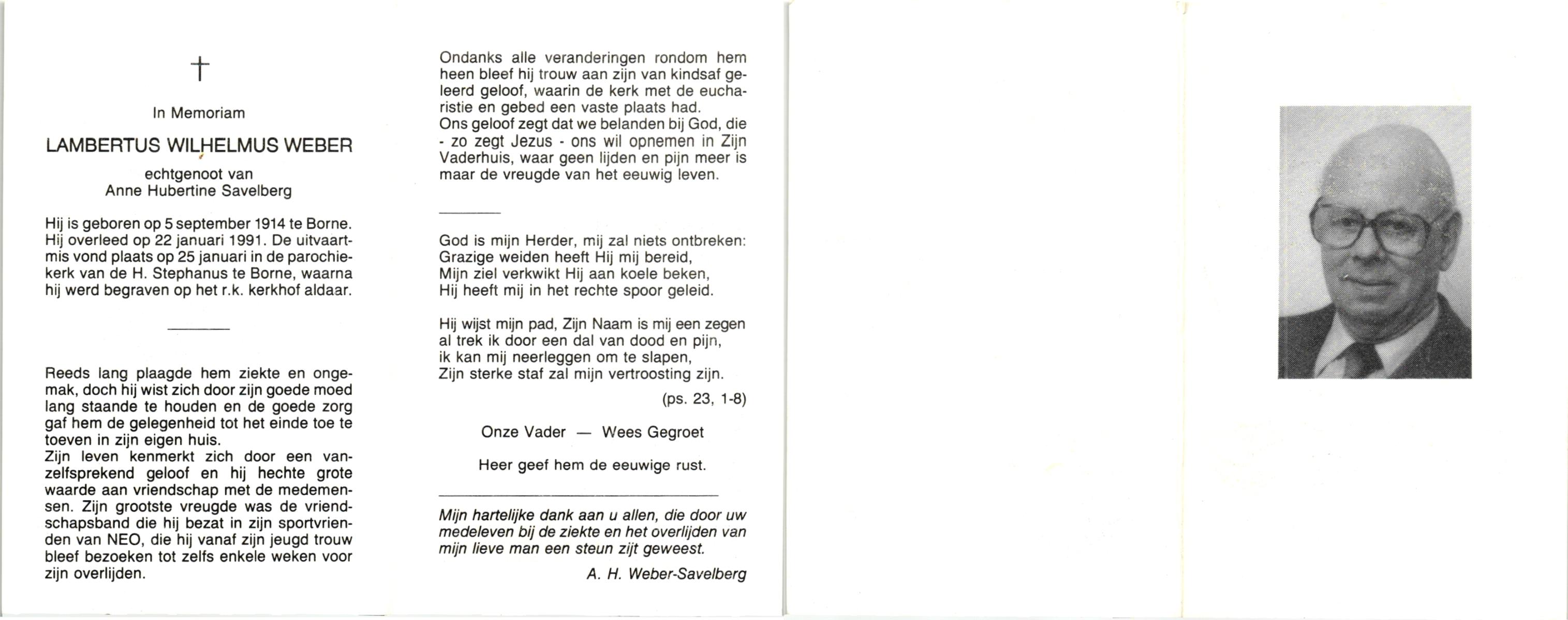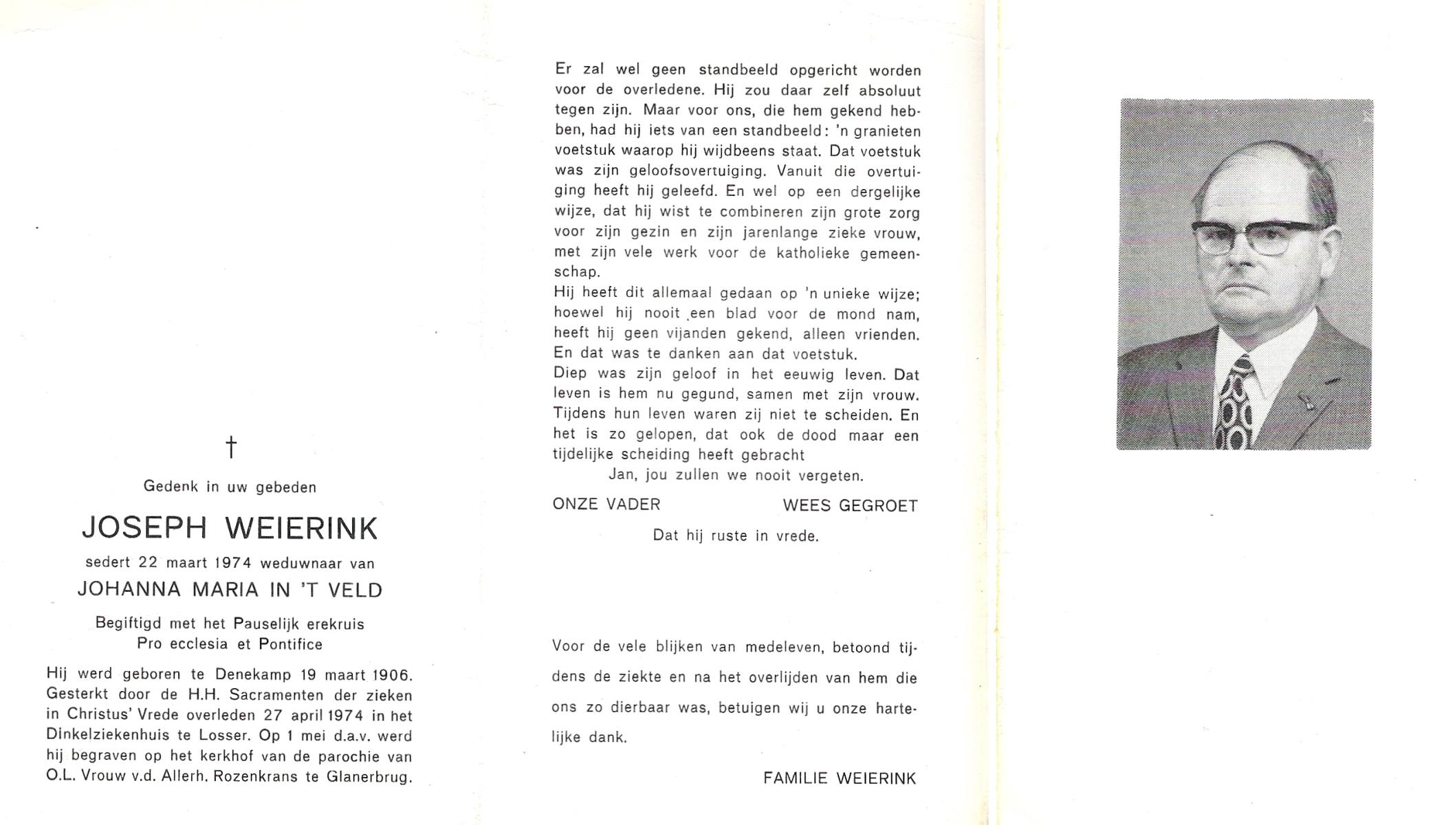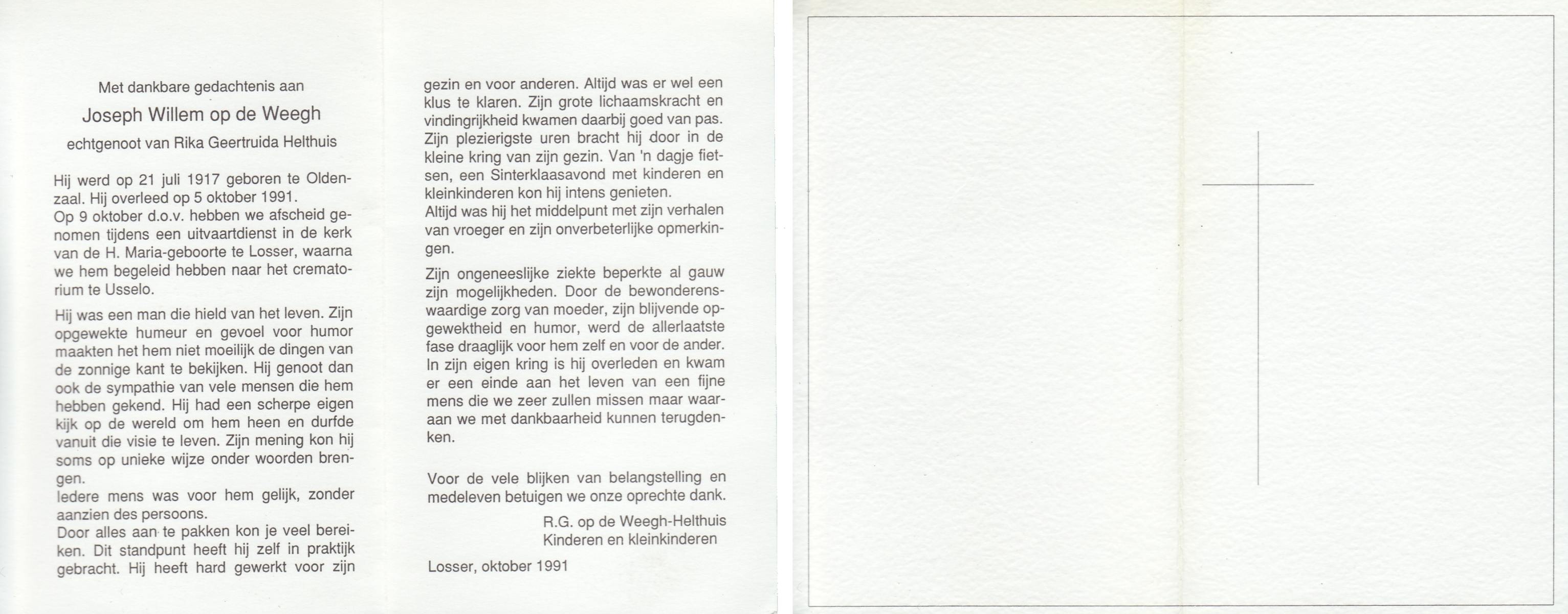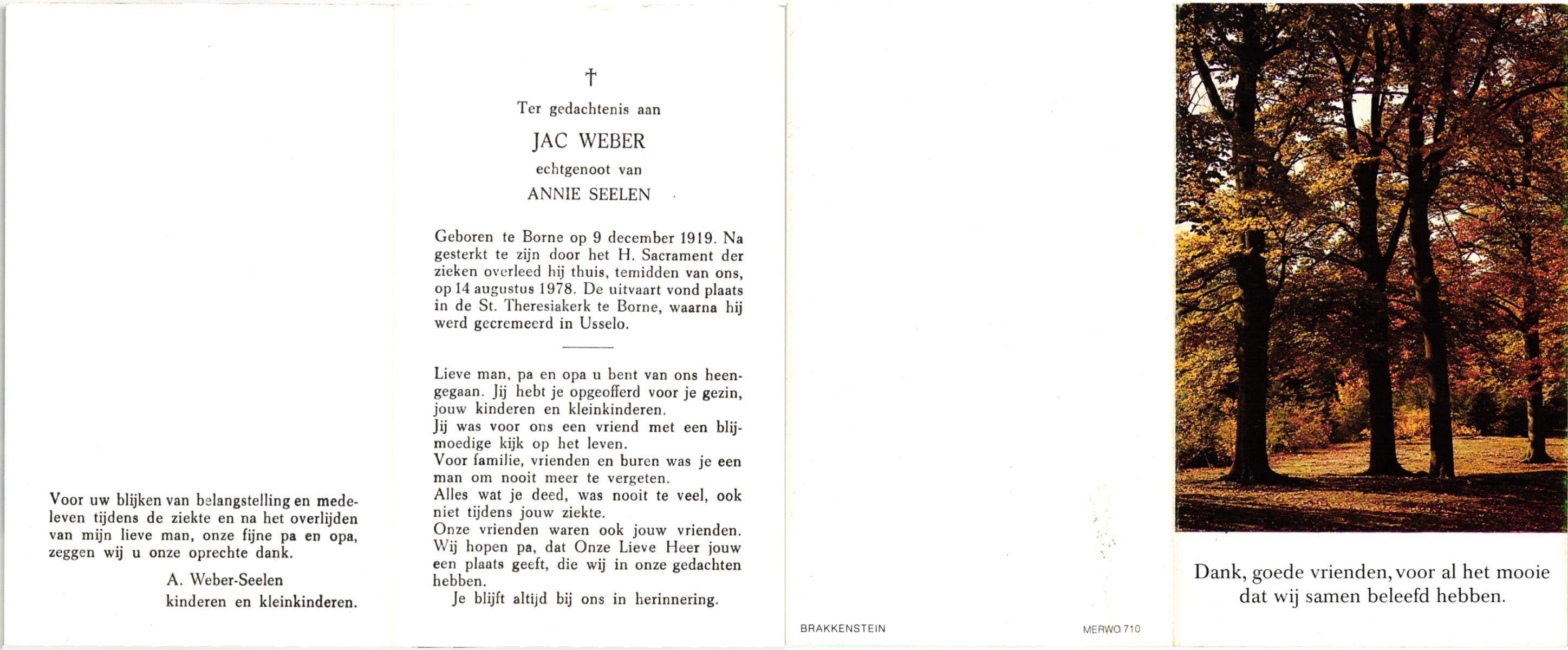 WELBERG, Johannes Hendrikus Josef, geboren op 5-3-1920 te Zenderen, overleden op 7-9-1987 op 67-jarige leeftijd, begraven op 10-9-1987 te Borne.