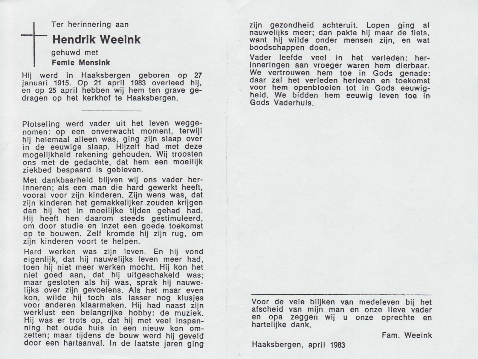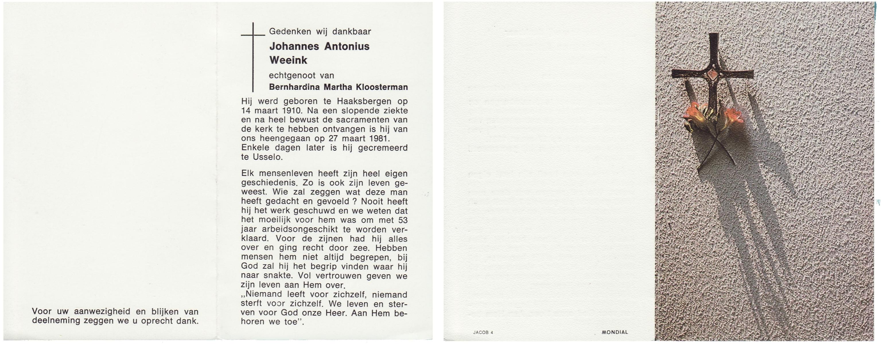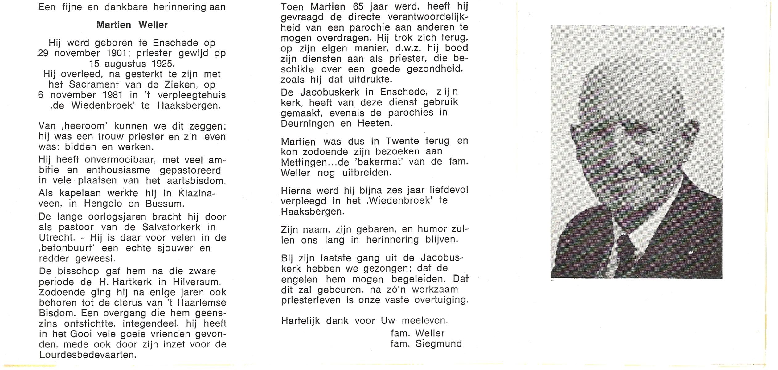 WELLER, Martien, geboren op 29-11-1901 te Enschede, overleden op 6-11-1981 te Haaksbergen op 79-jarige leeftijd.