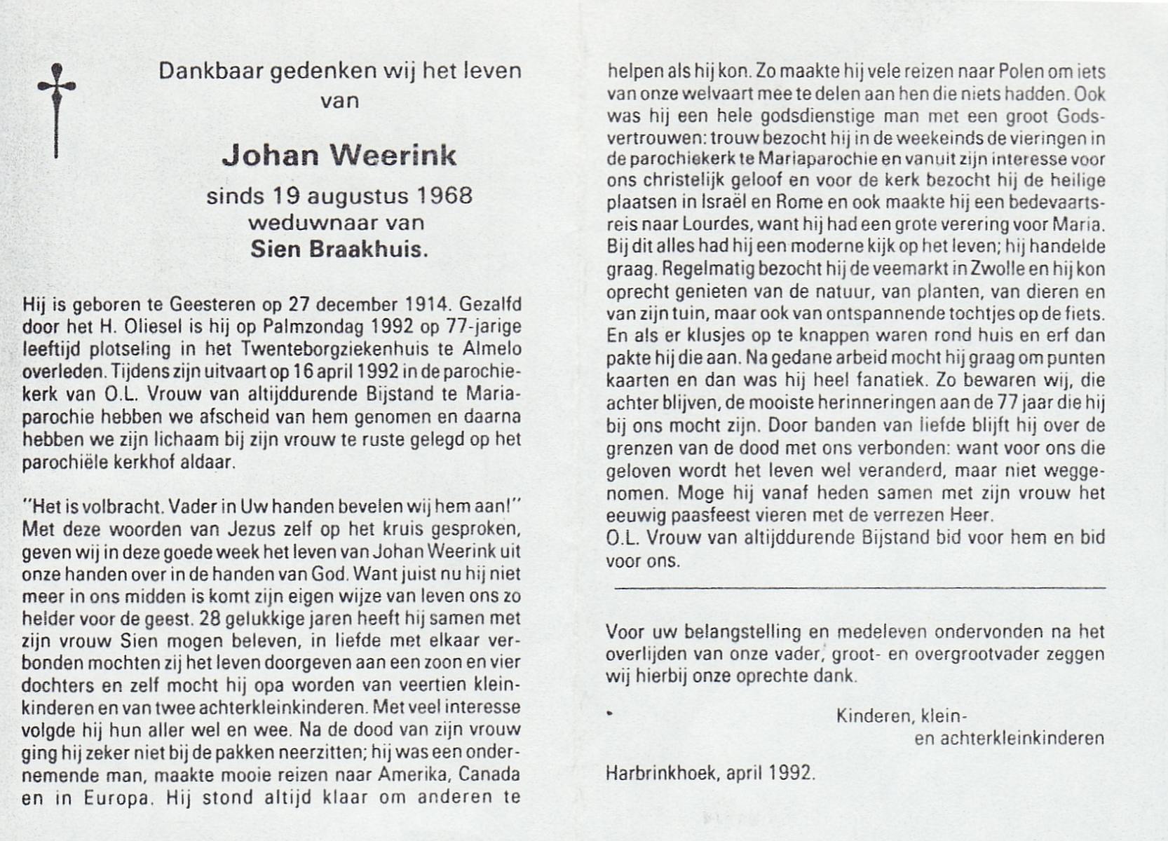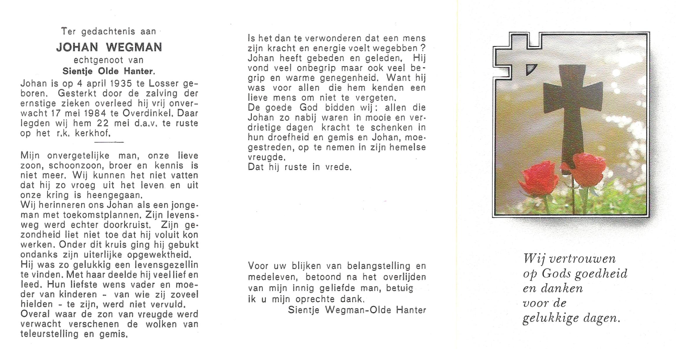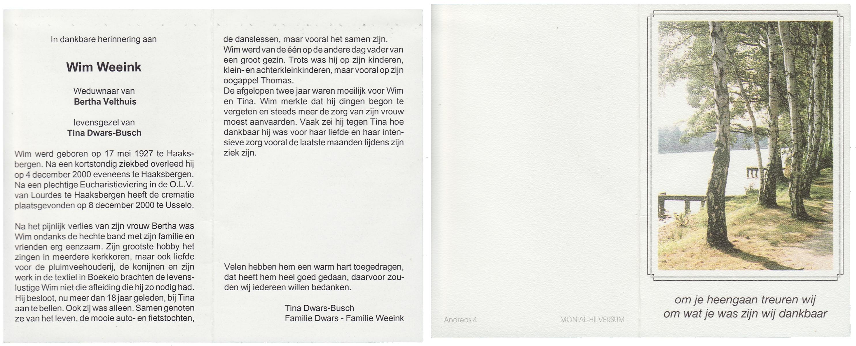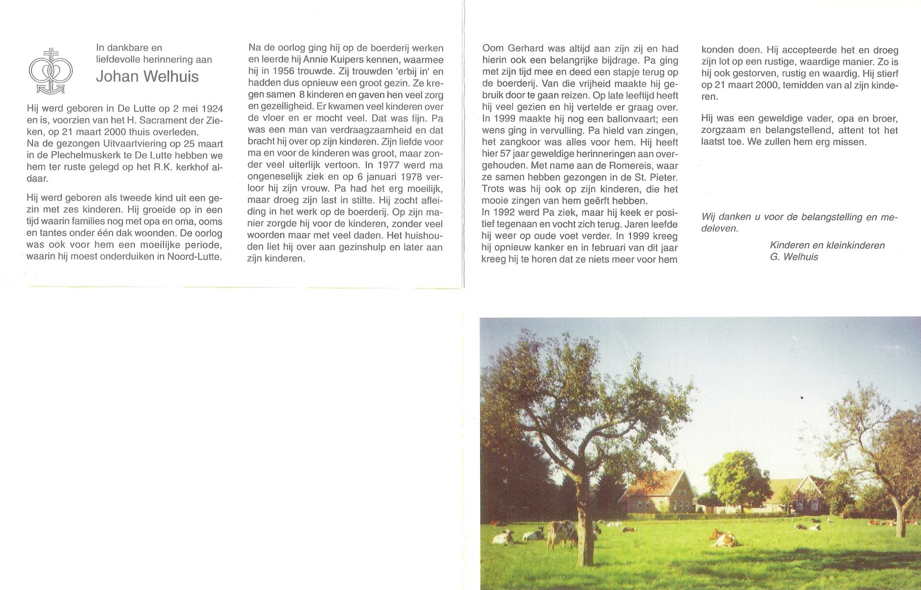 WELHUIS, Johan, geboren op 2-5-1924 te De Lutte, overleden op 21-3-2000 op 75-jarige leeftijd, begraven op 25-3-2000 te De Lutte.