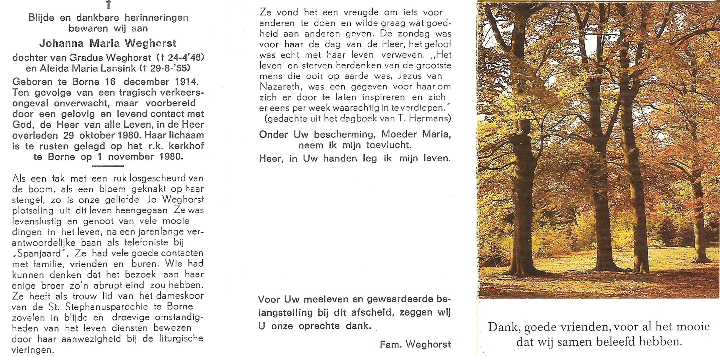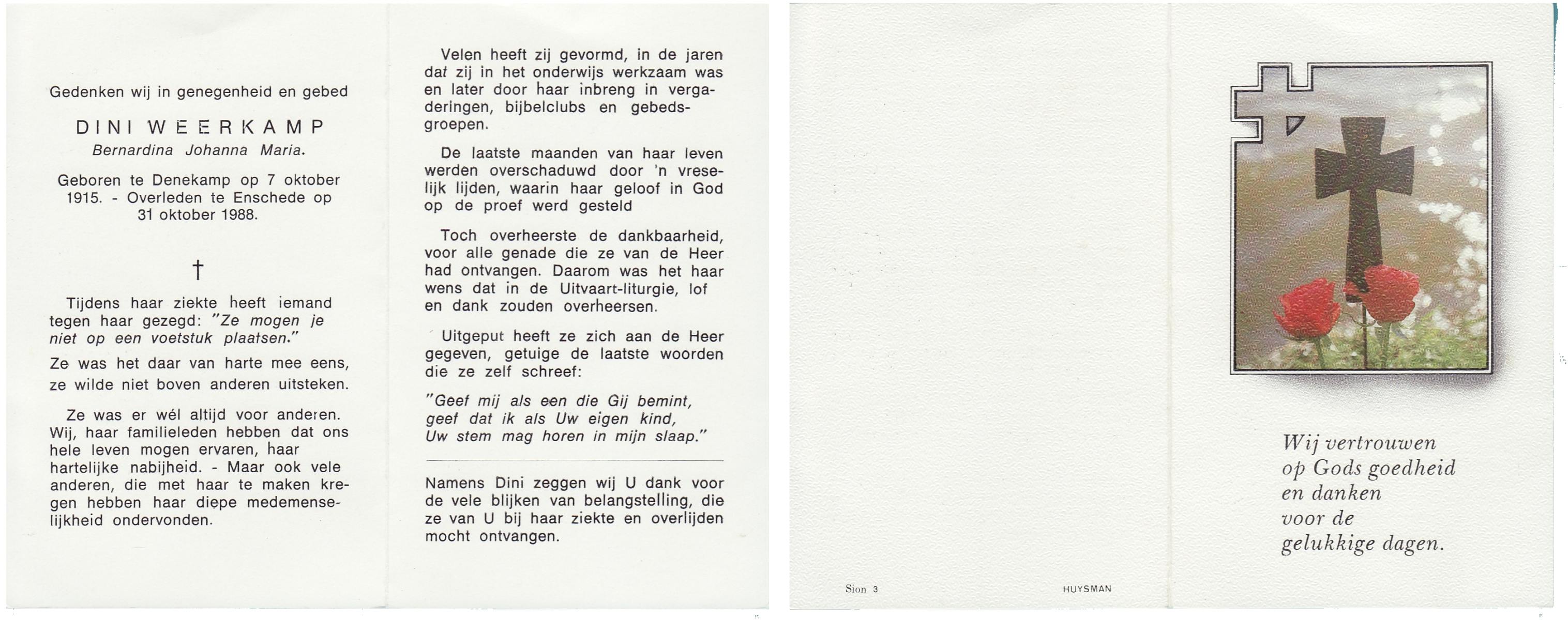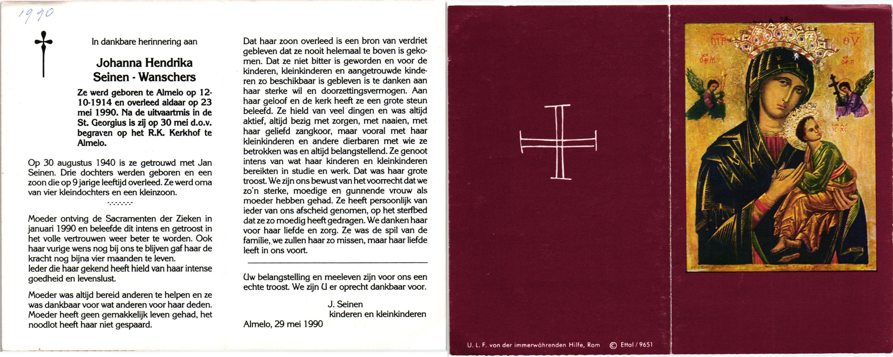 WELHUIS, Johanna Maria, geboren op 23-08-1894 te Losser, overleden op 8-4-1988 te Enschede op 93-jarige leeftijd, begraven op 13-4-1988 te Glanerbrug.