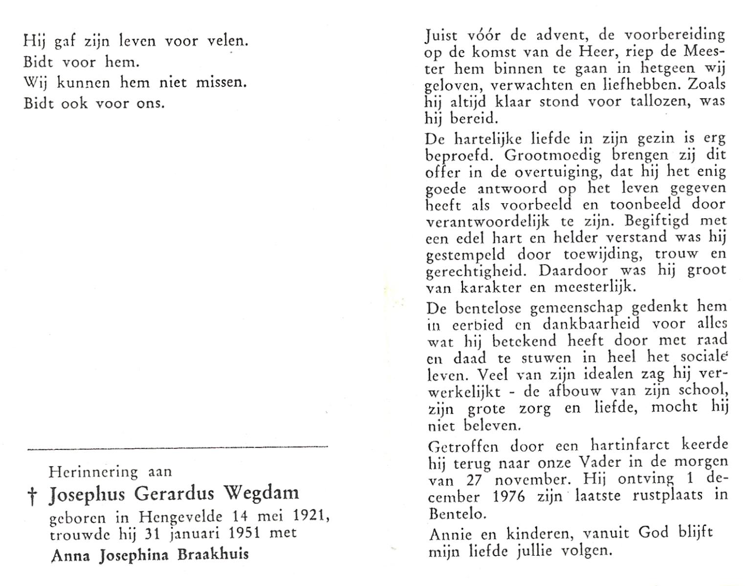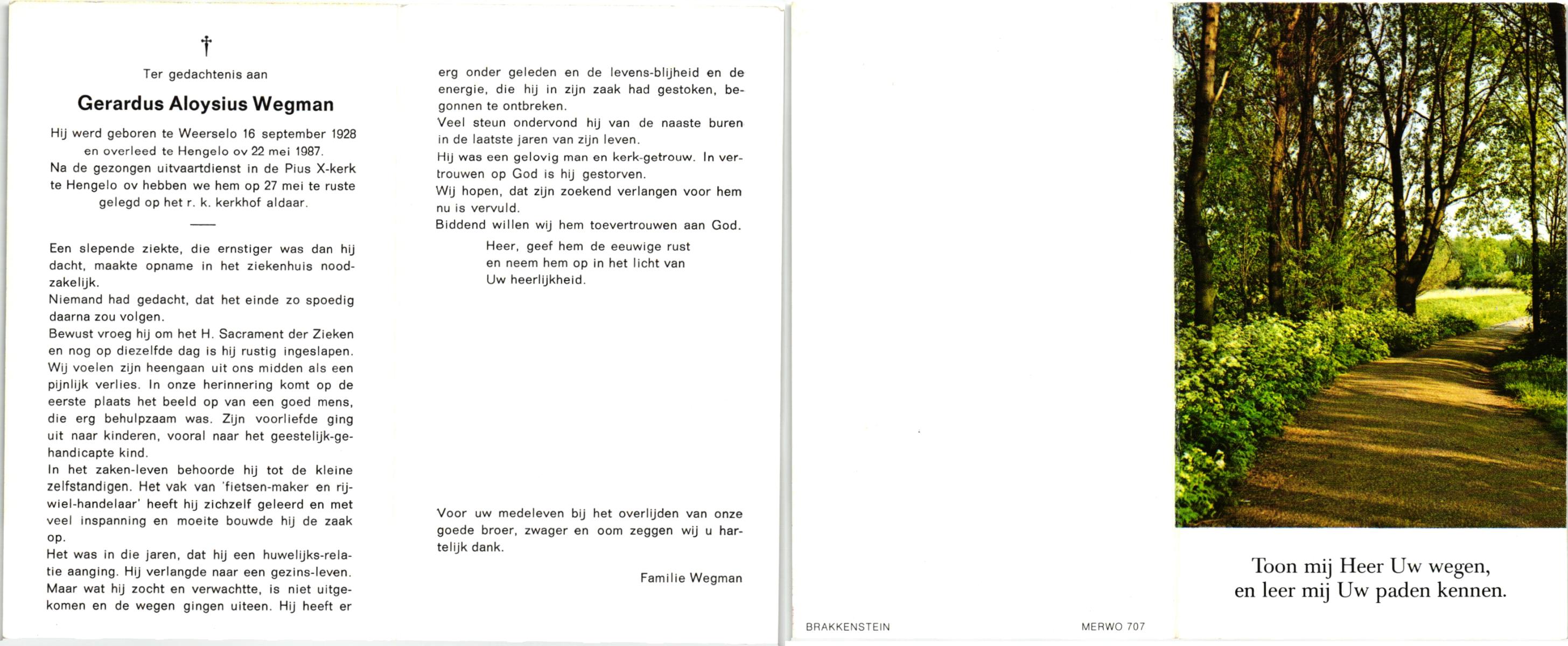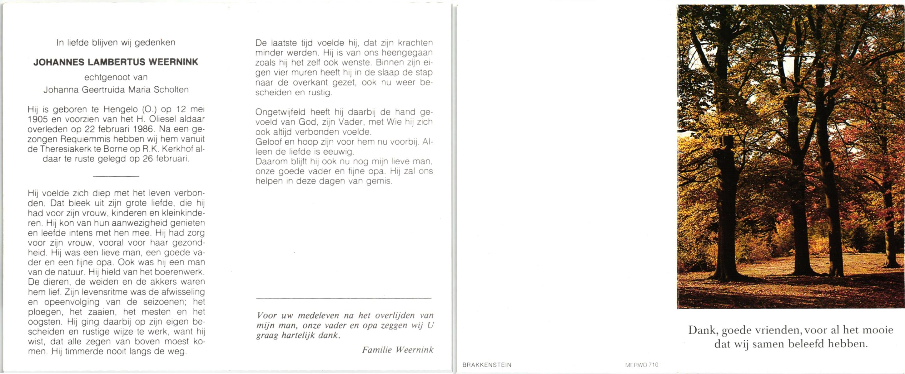 WELMAN, Johan Gerhardus, geboren op 16-5-1908 te Lonneker, overleden op 1-5-1976 op 67-jarige leeftijd, begraven op 5-5-1976 te Lonneker.