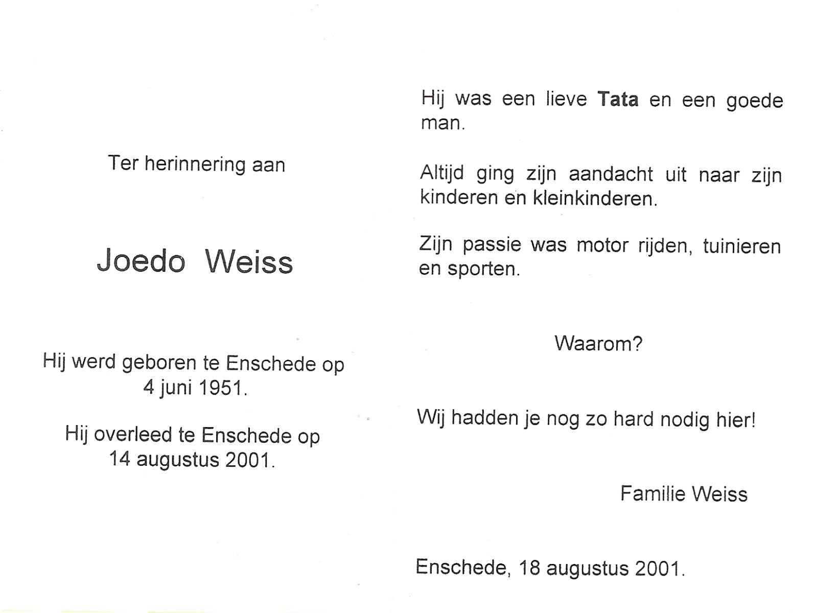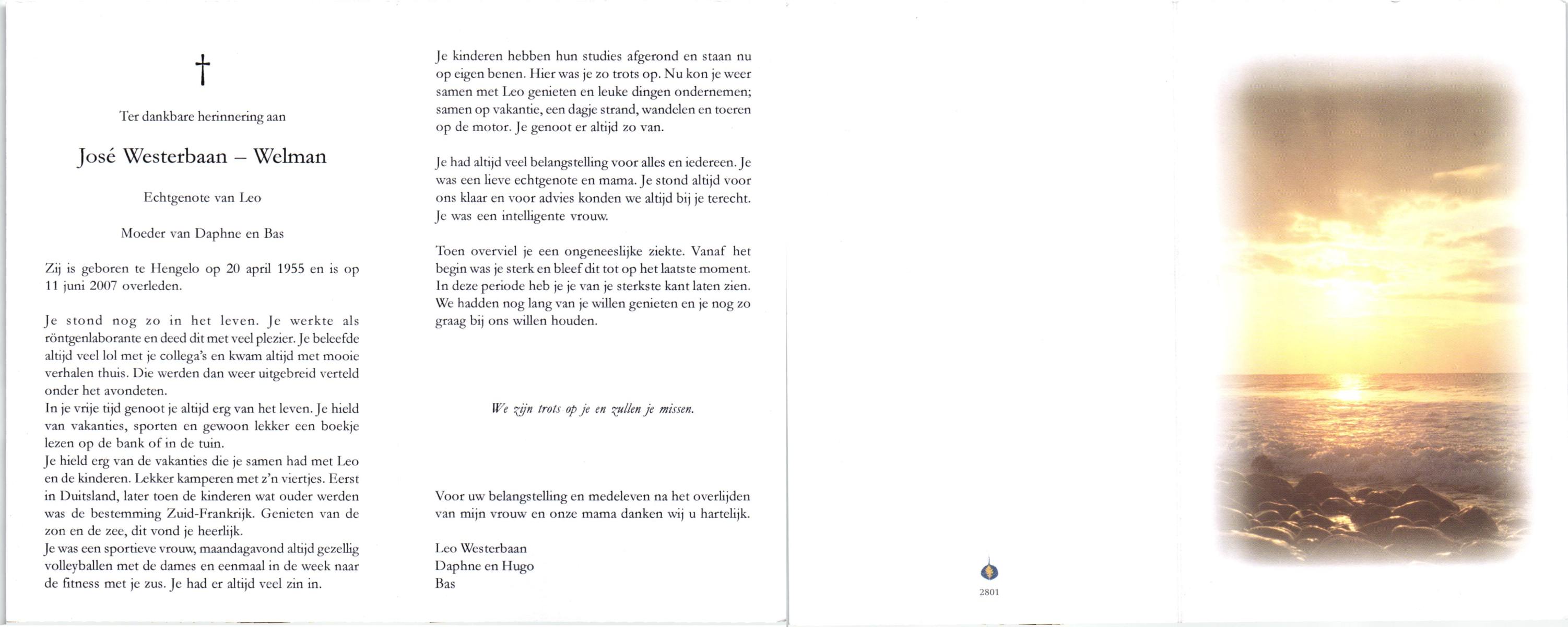 WELMAN, José, geboren op 20-4-1955 te Hengelo, overleden op 11-6-2007 op 52-jarige leeftijd.
