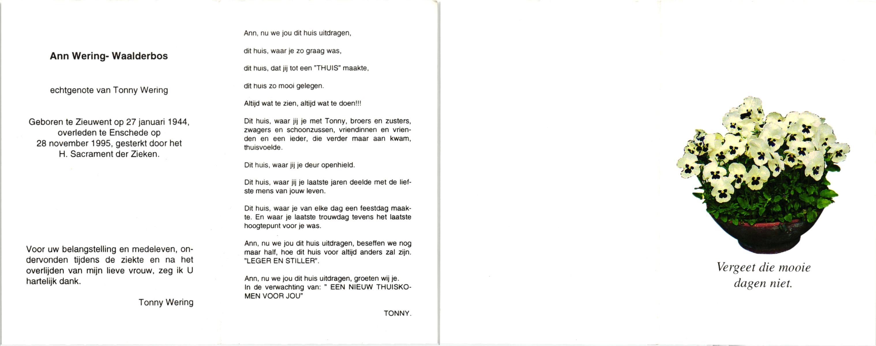 WAALDERBOS, , Ann, geboren op 27-1-1944 te Zieuwent, overleden op 28-11-1995 te Enschede op 51-jarige leeftijd.