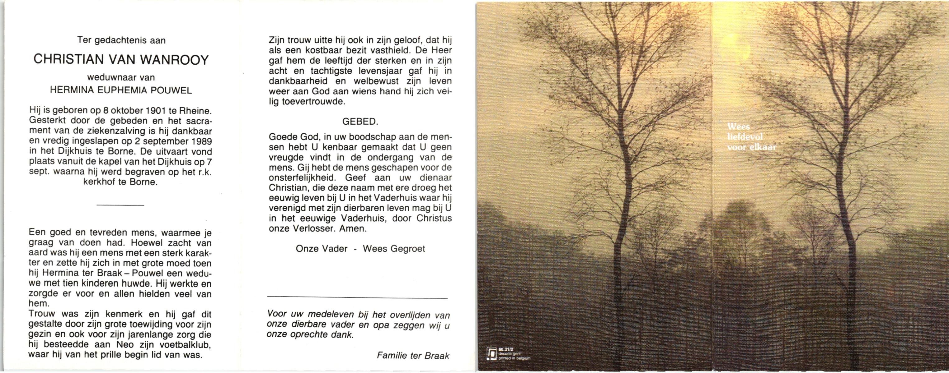 WAANDERS, Willem, geboren op 1-10-1932 te Haaksbergen, overleden op 12-9-1989 te Enschede op 56-jarige leeftijd, begraven op 16-9-1989 te Haaksbergen.
