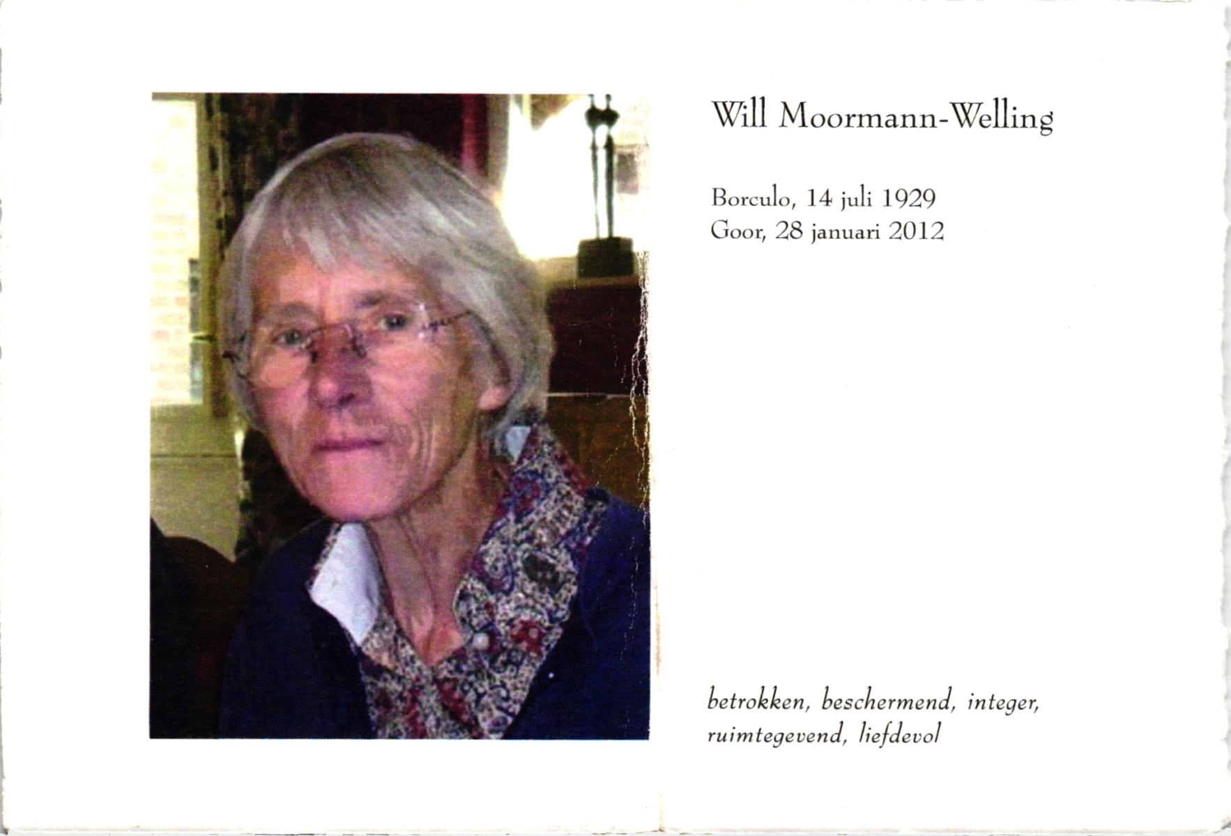 WELLING, , Will, geboren op 14-7-1929 te Borculo, overleden op 28-1-2012 te Goor op 82-jarige leeftijd.