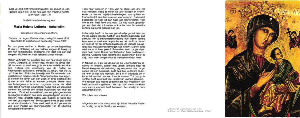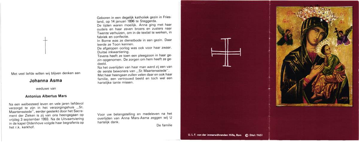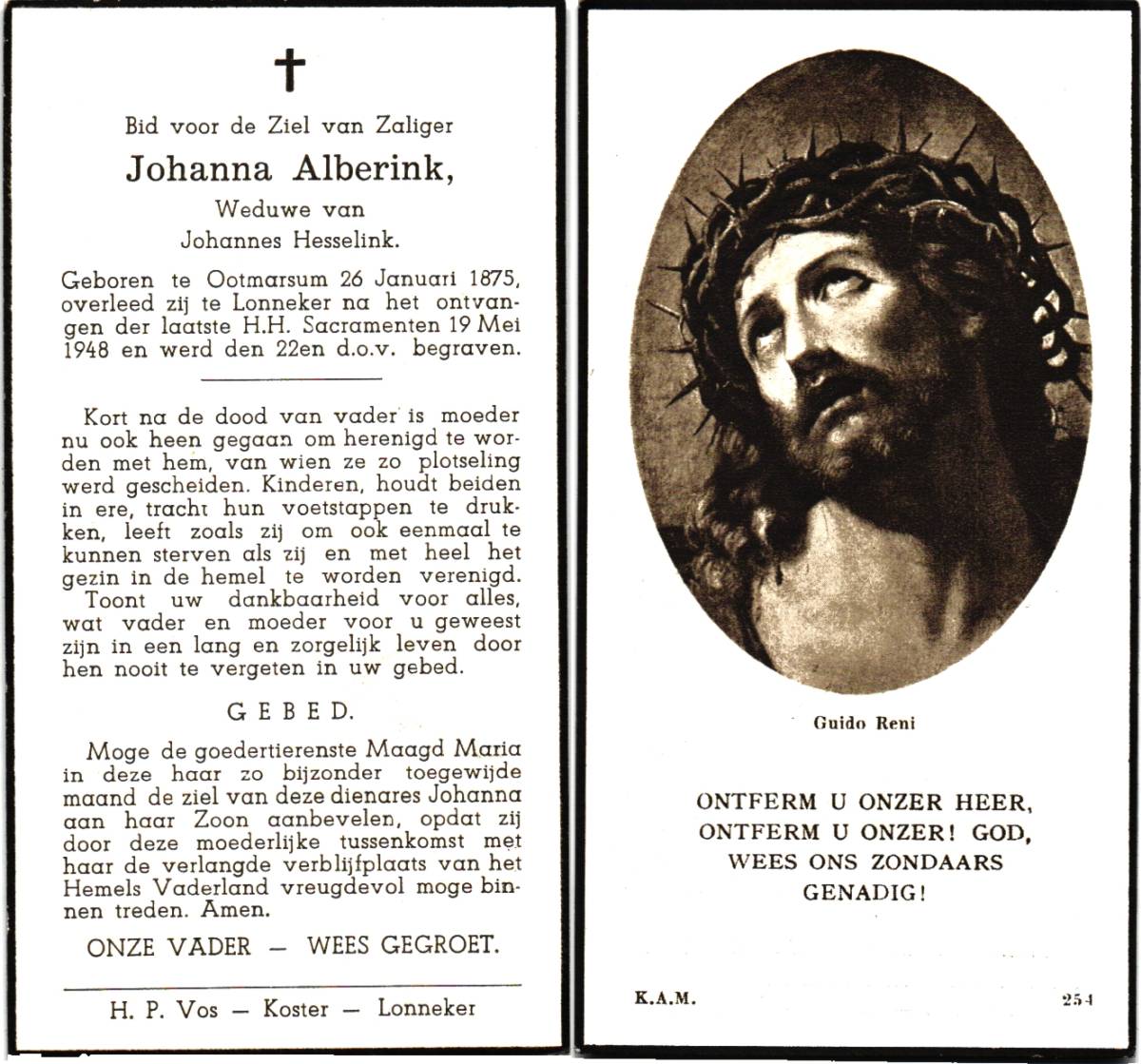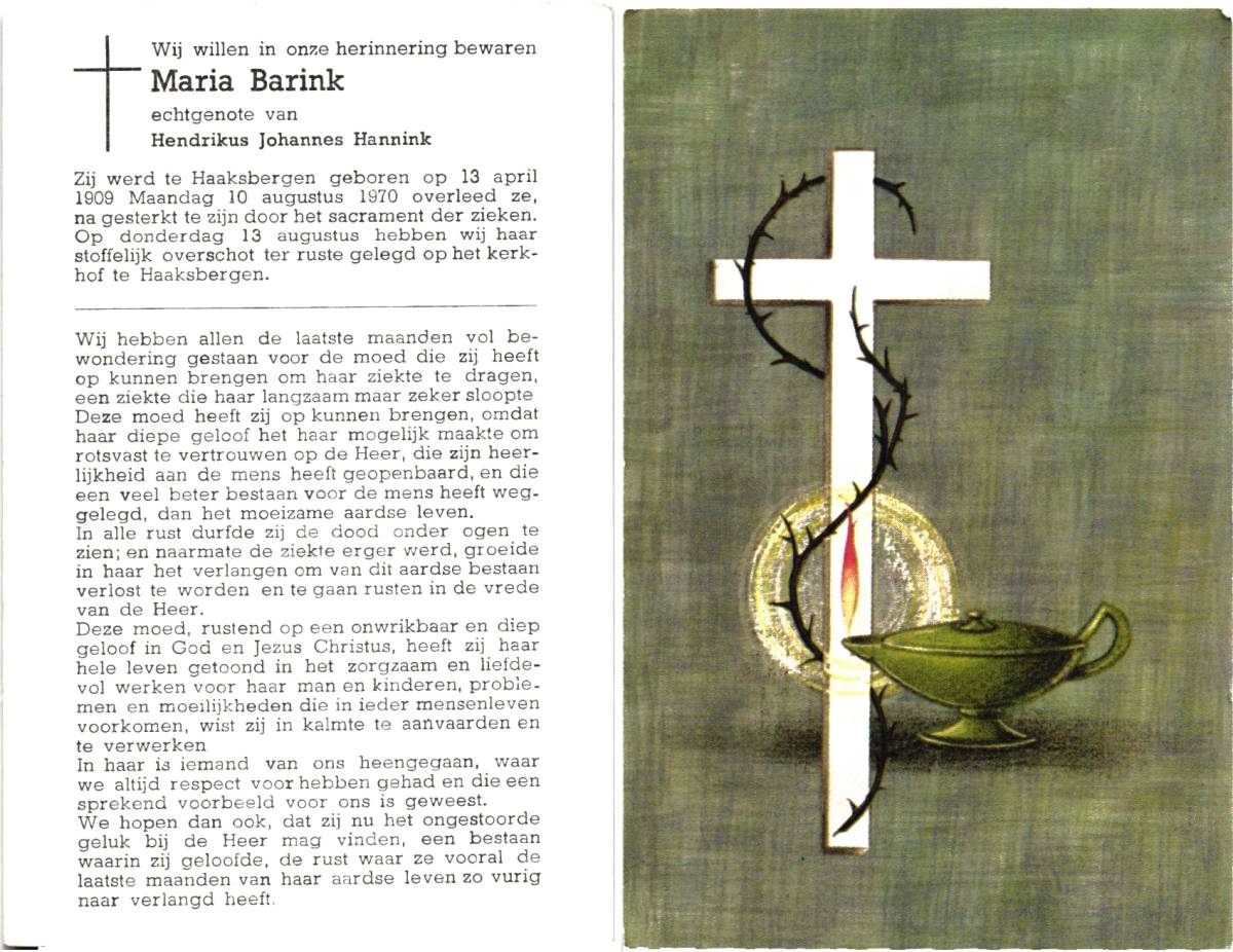 ALTHANNING, Johanna Helena Maria, geboren op 27-8-1913 te Oldenzaal, overleden op 30-5-1986 te Almelo op 72-jarige leeftijd, begraven op 3-6-1986 te Tubbergen.