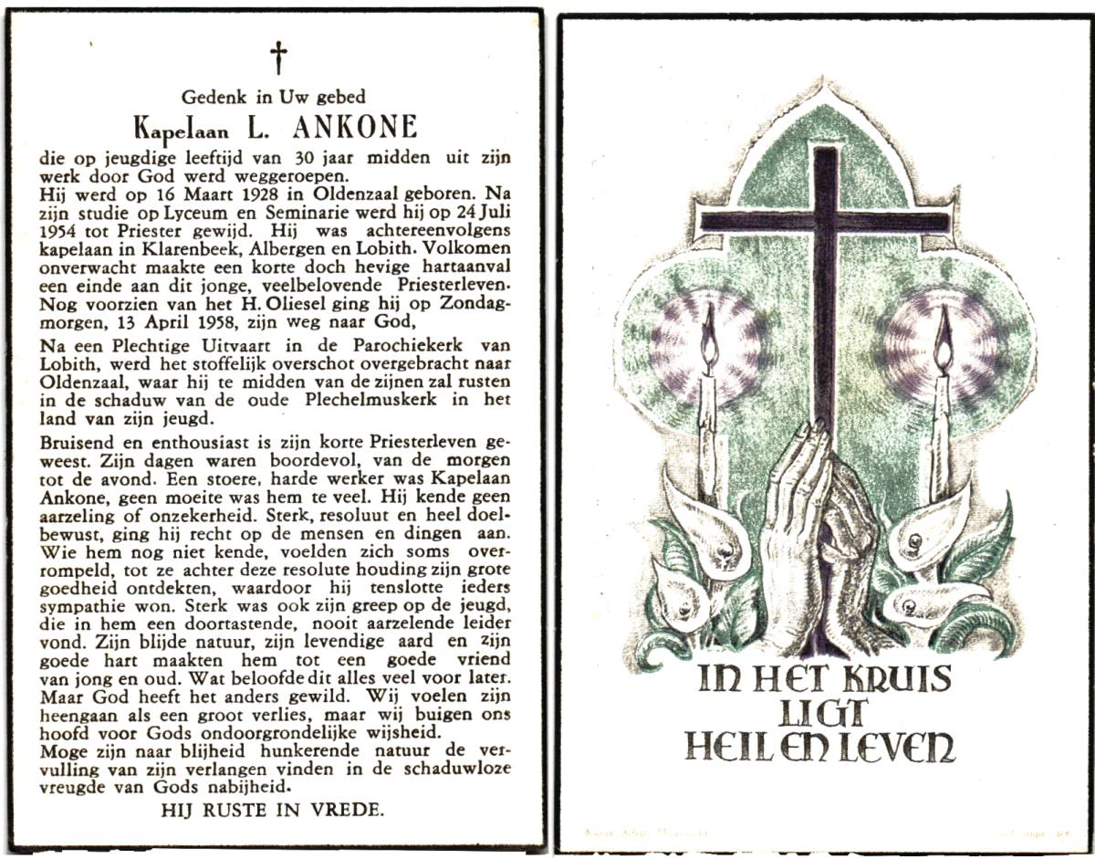 ALSTEDE, van, Johanna Antonia, geboren op 24-4-1940 te Enschede, overleden op 19-8-1953 te Enschede op 13-jarige leeftijd, begraven op 22-8-1953 te Enschede.