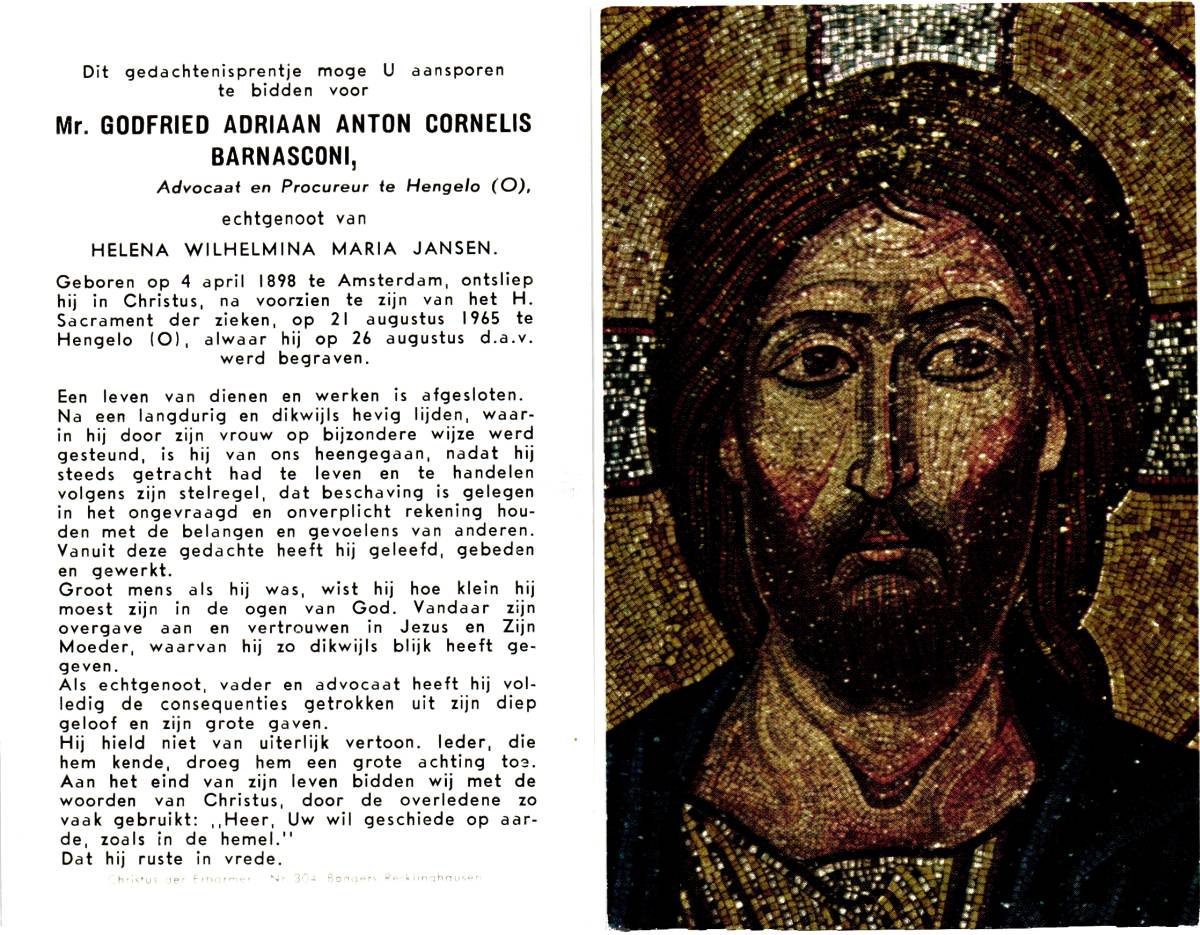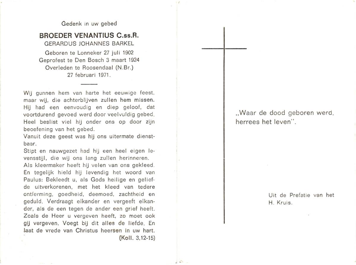 ARENDSEN, Antonius Hendrikus Gerrit, geboren op 6-12-1913 te Weerselo, overleden op 29-4-1971 te Oldenzaal op 57-jarige leeftijd, begraven op 3-5-1971 te Tilligte.