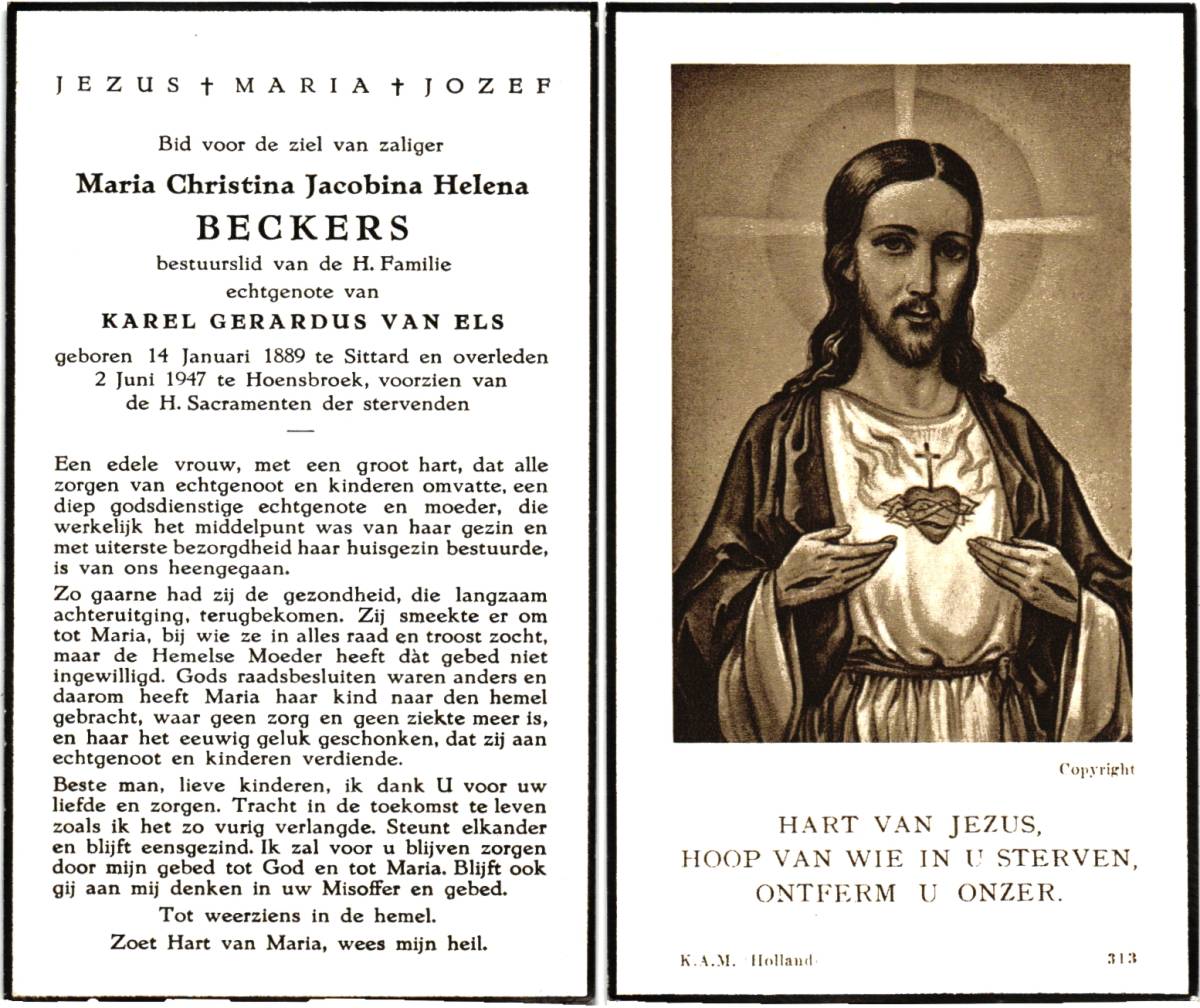 BECKERS, Bernadette, geboren op 19-1-1922 te Bredevoort, overleden op 29-4-1980 te Enschede op 58-jarige leeftijd.