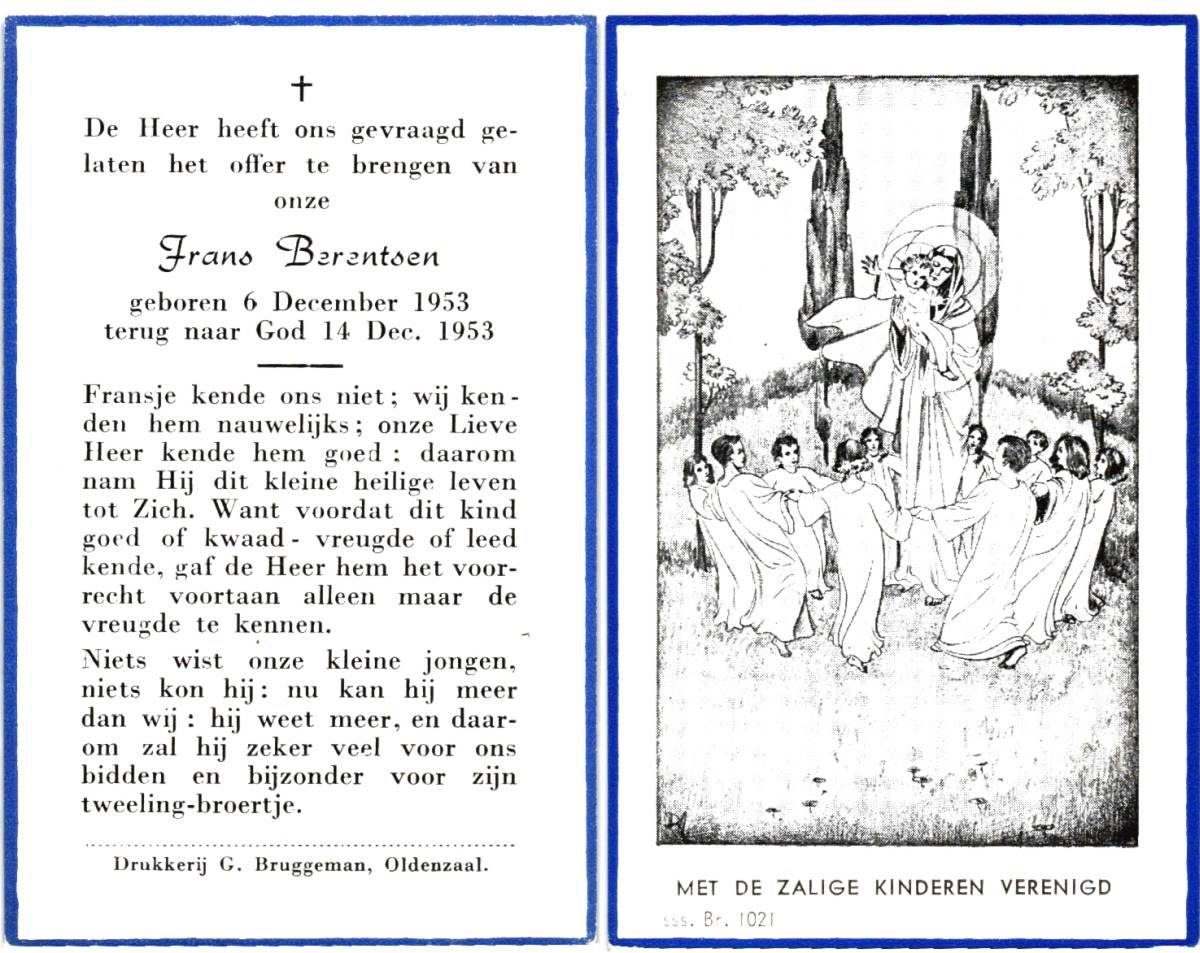 BERENTSEN, Frans, geboren op 6-12-1953, overleden op 14-12-1953 op 0-jarige leeftijd.