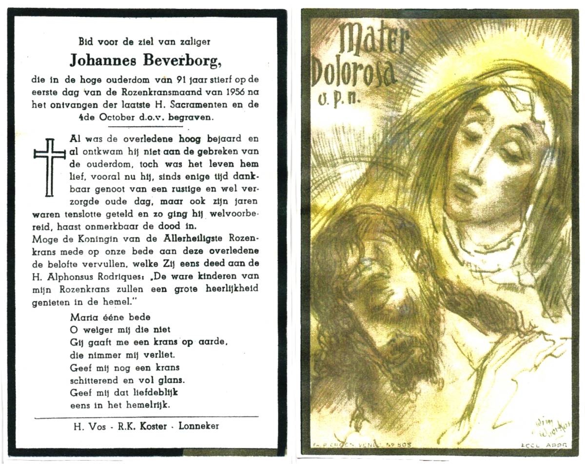 BEVERBORG, Johannes, overleden op 1-10-1956 op 91-jarige leeftijd, begraven op 4-10-1956 te Lonneker.