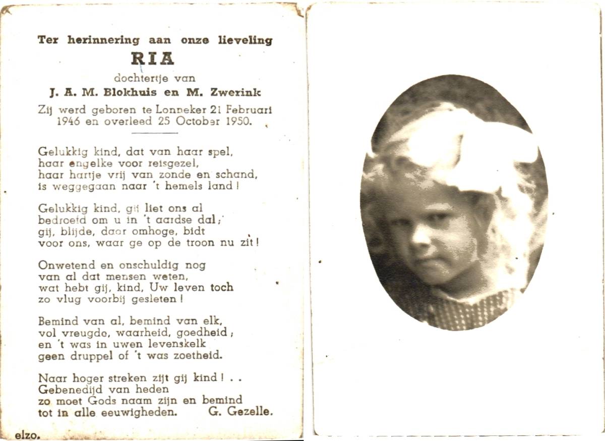 BLOEMEN, Gerardus Johannes Hendrikus, geboren op 22-12-1939 te Losser, overleden op 6-6-1942 te Enschede op 2-jarige leeftijd, begraven op 9-6-1942 te Losser.
