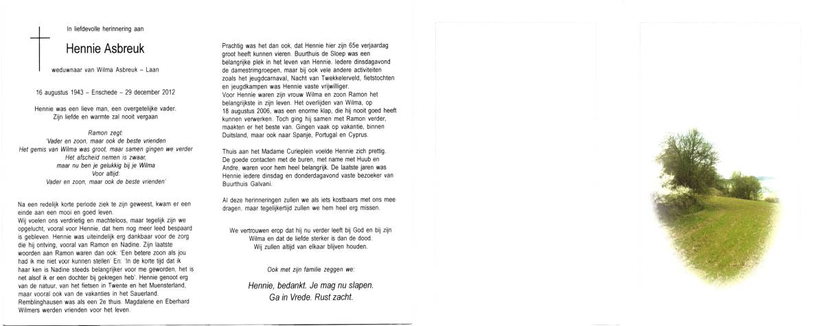 ASBROEK, Hermanus Hendrikus, geboren op 27-6-1935 te Boekelo, overleden op 16-4-1975 op 39-jarige leeftijd, begraven op 19-4-1975 te Boekelo.