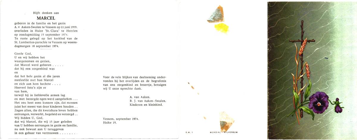 BIESSEN, van der, Johannes, geboren op 7-7-1945 te Helmond, overleden op 29-10-1960 te Helmond op 15-jarige leeftijd, begraven op 2-11-1960 te Helmond.